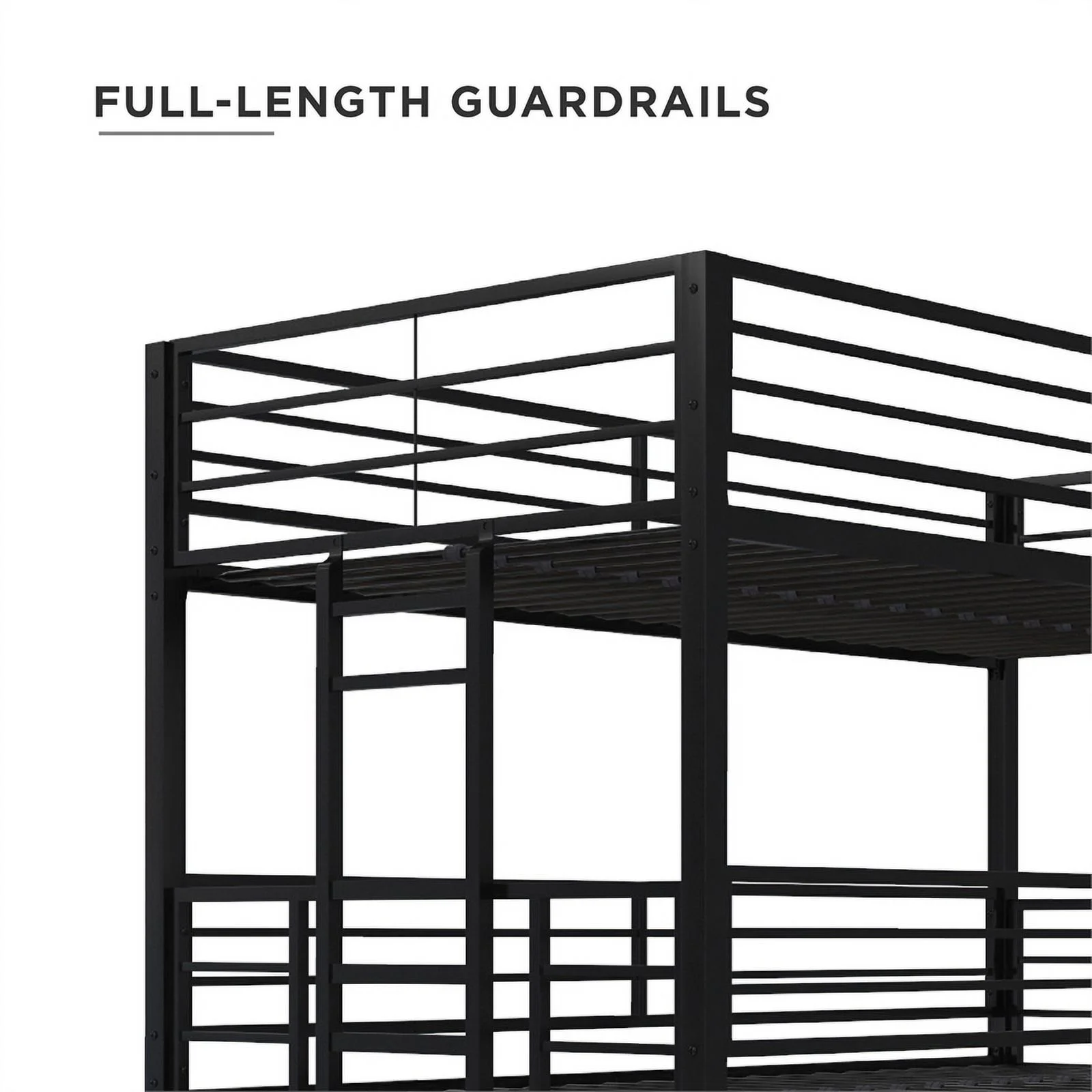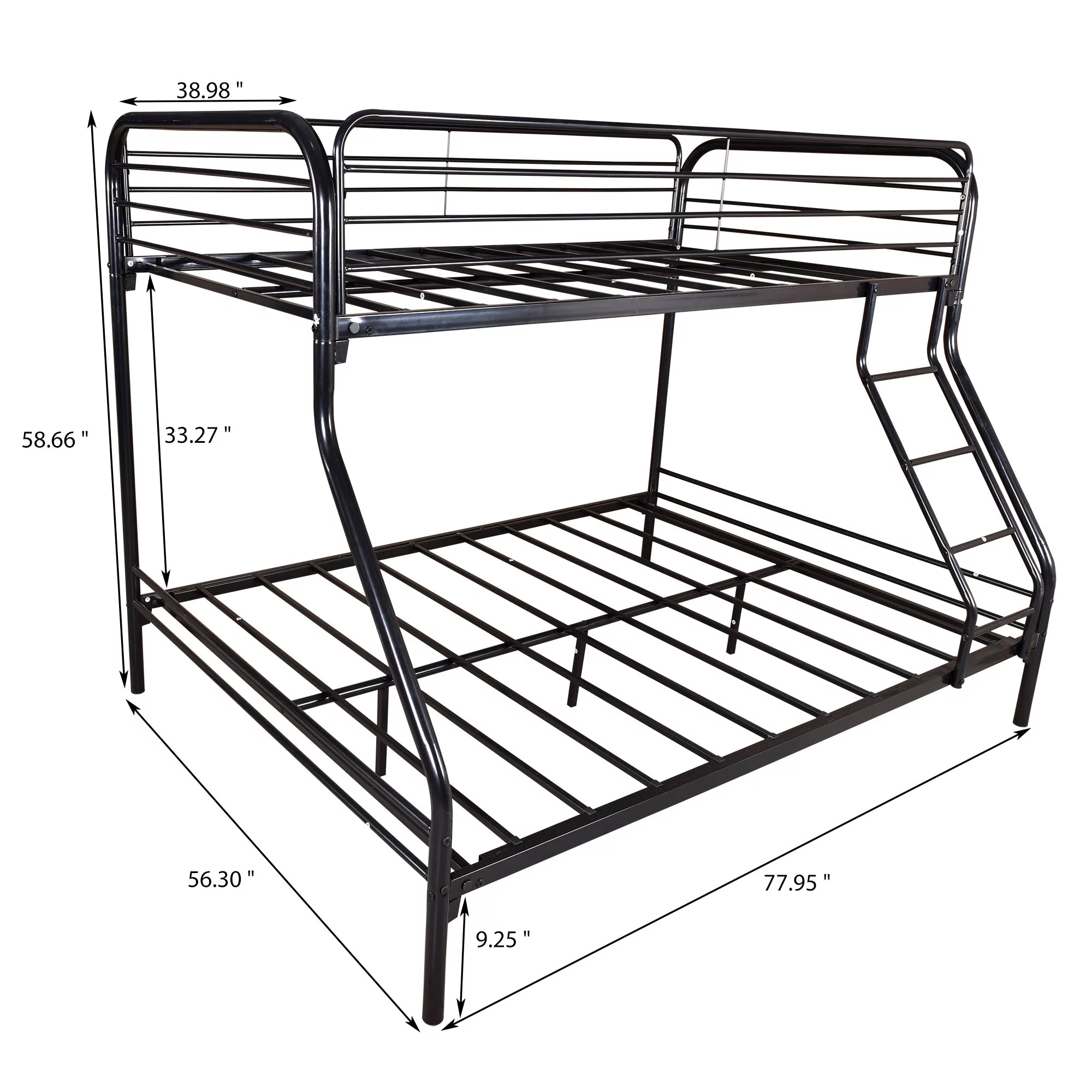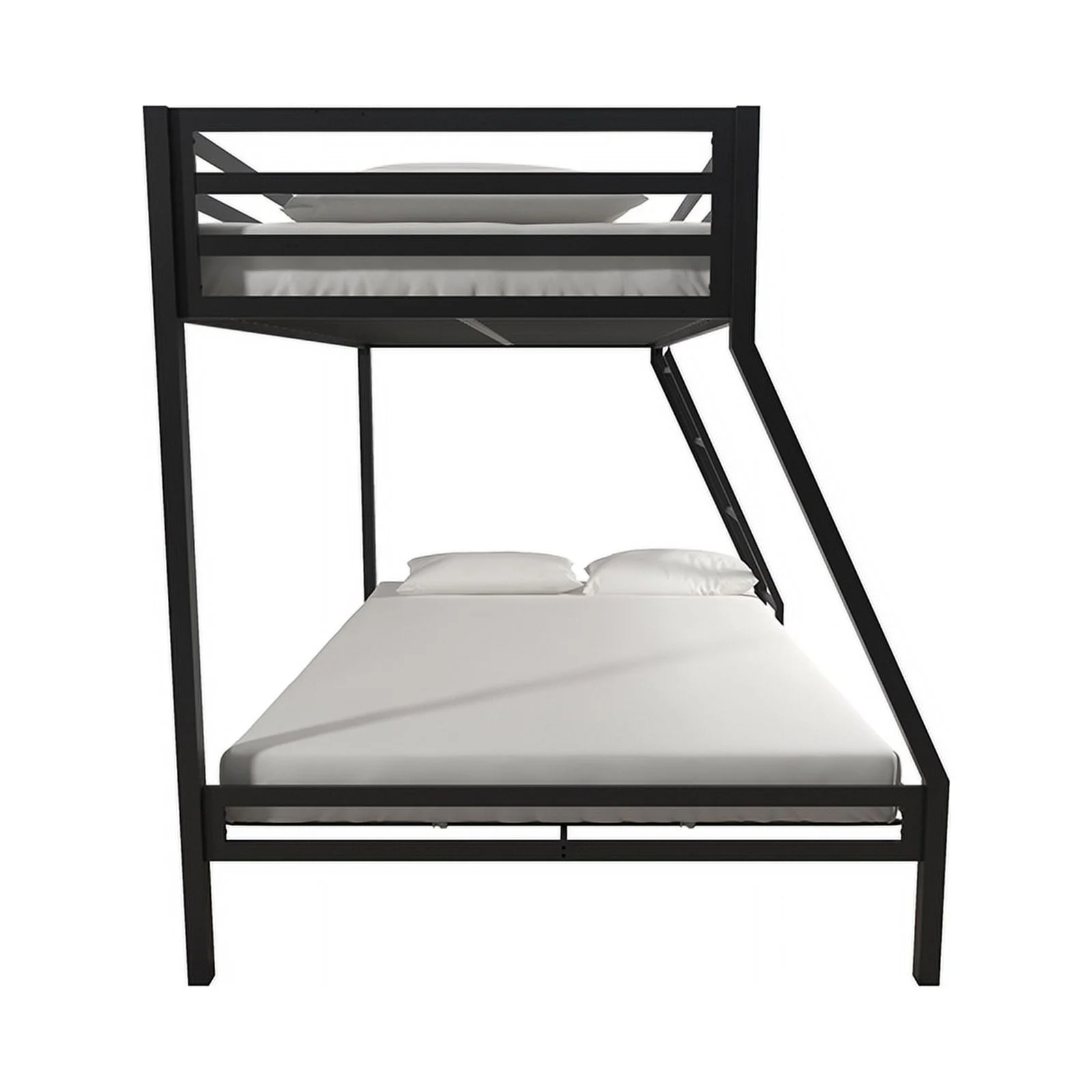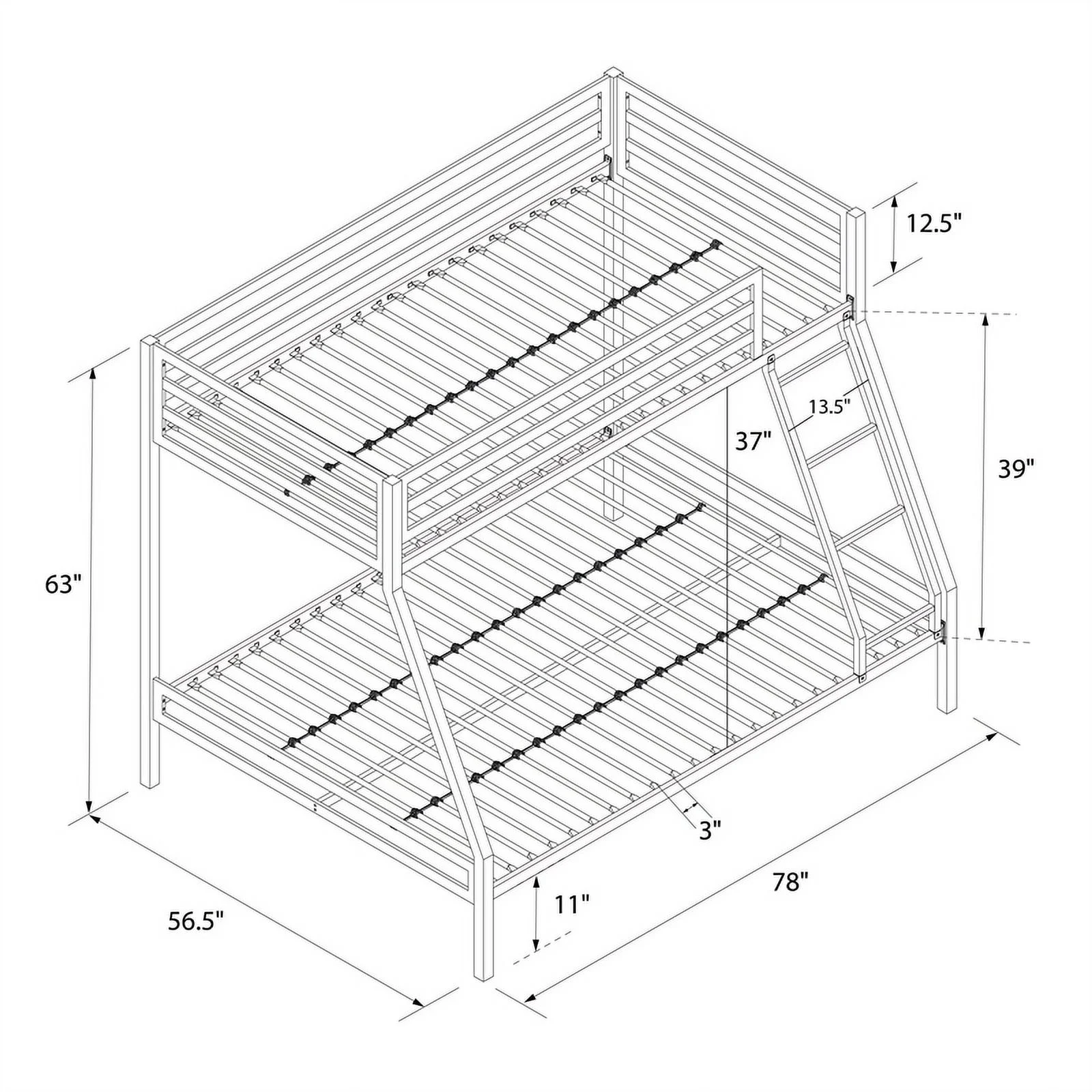 Metal Bunk Bed, Twin Over Full Size Beds with Sturdy Guard Rail & Removable Ladder, Space-Saving/Noise-Free/Matte Black
