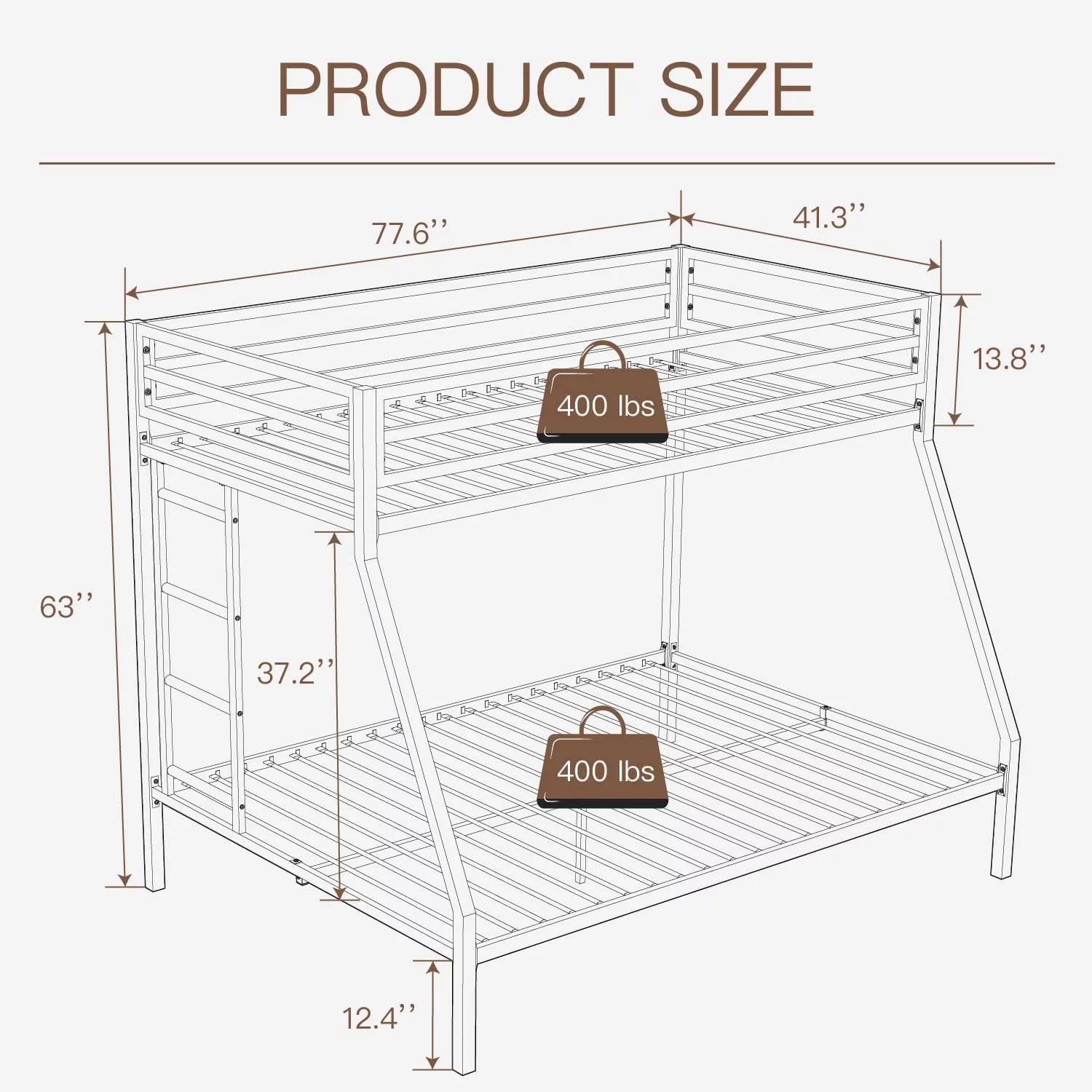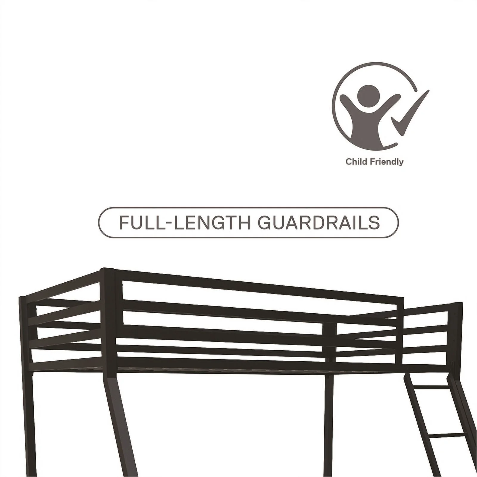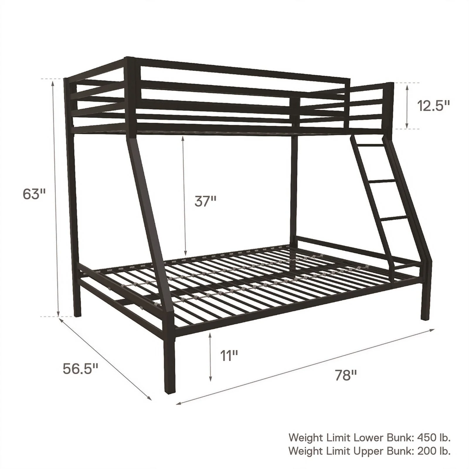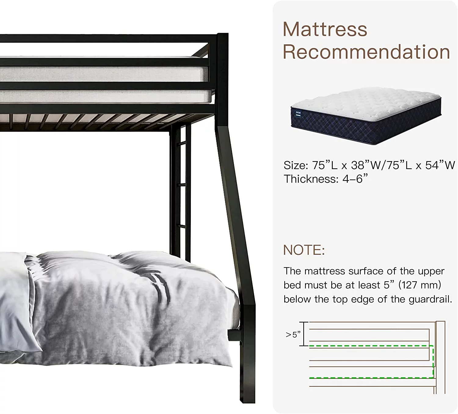 Metal Bunk Bed, Twin Over Full Size Beds with Sturdy Guard Rail & Removable Ladder, Space-Saving/Noise-Free/Matte Black