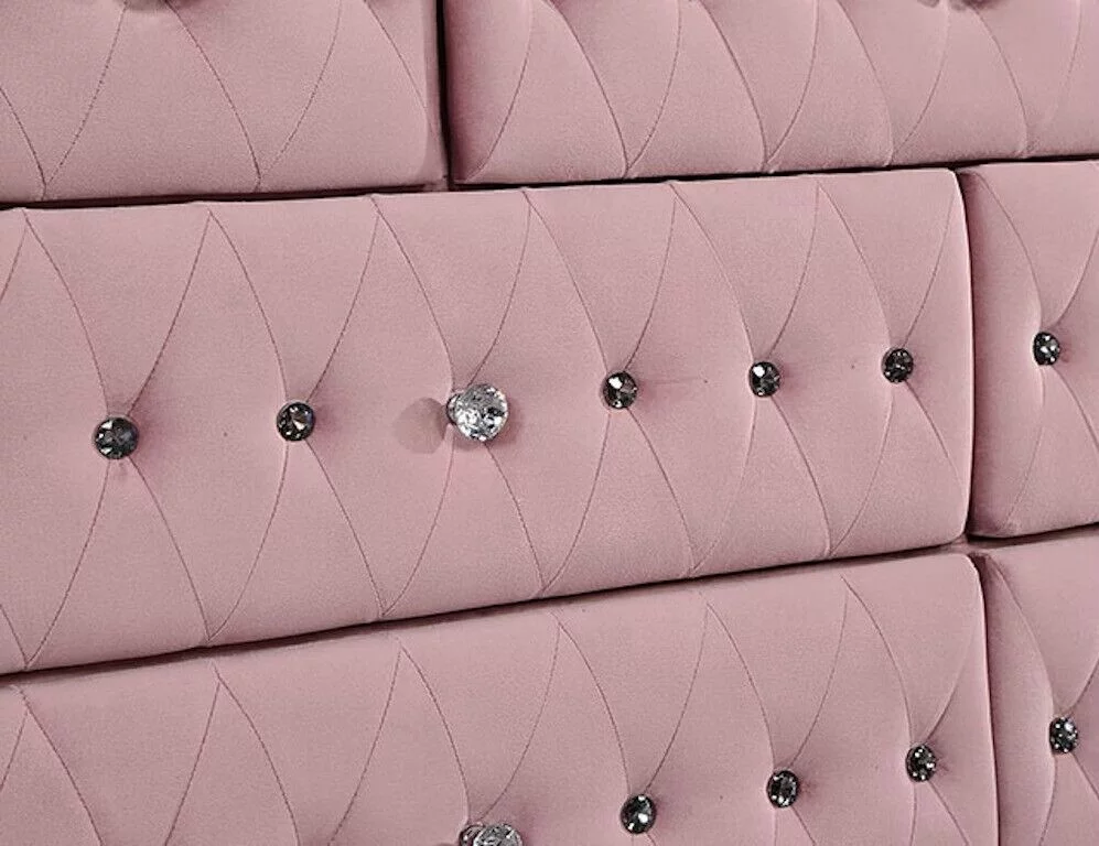 Glam Pink Upholstered Tufted Velvet Like Fabric 4pc Twin Size Bed Set Dresser Mirror Nightstand Bedroom Furniture