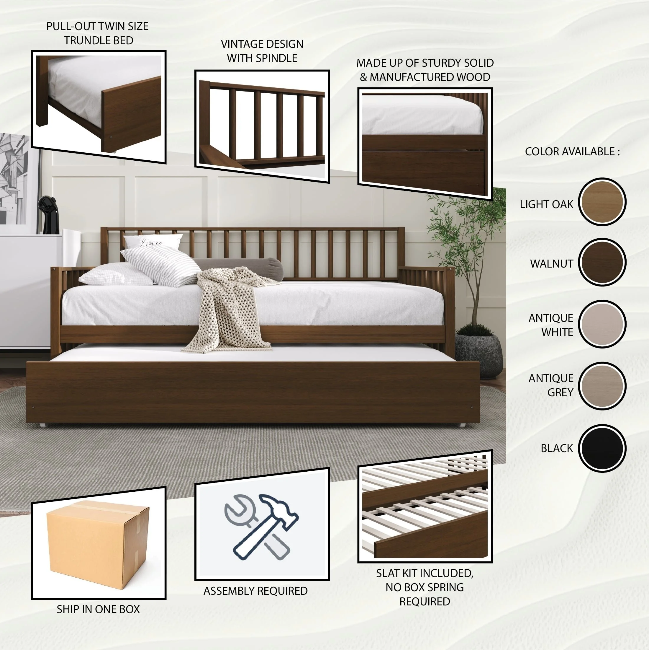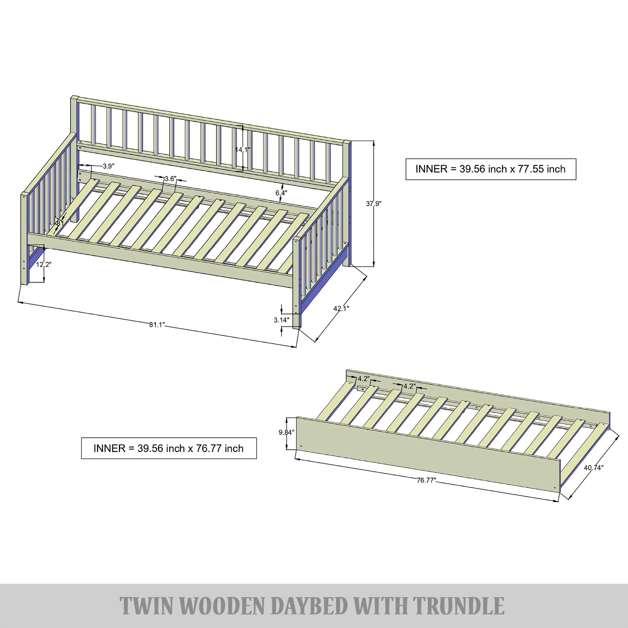 Castle Place Vintage Style Twin Size Wooden Daybed With Trundle, White
