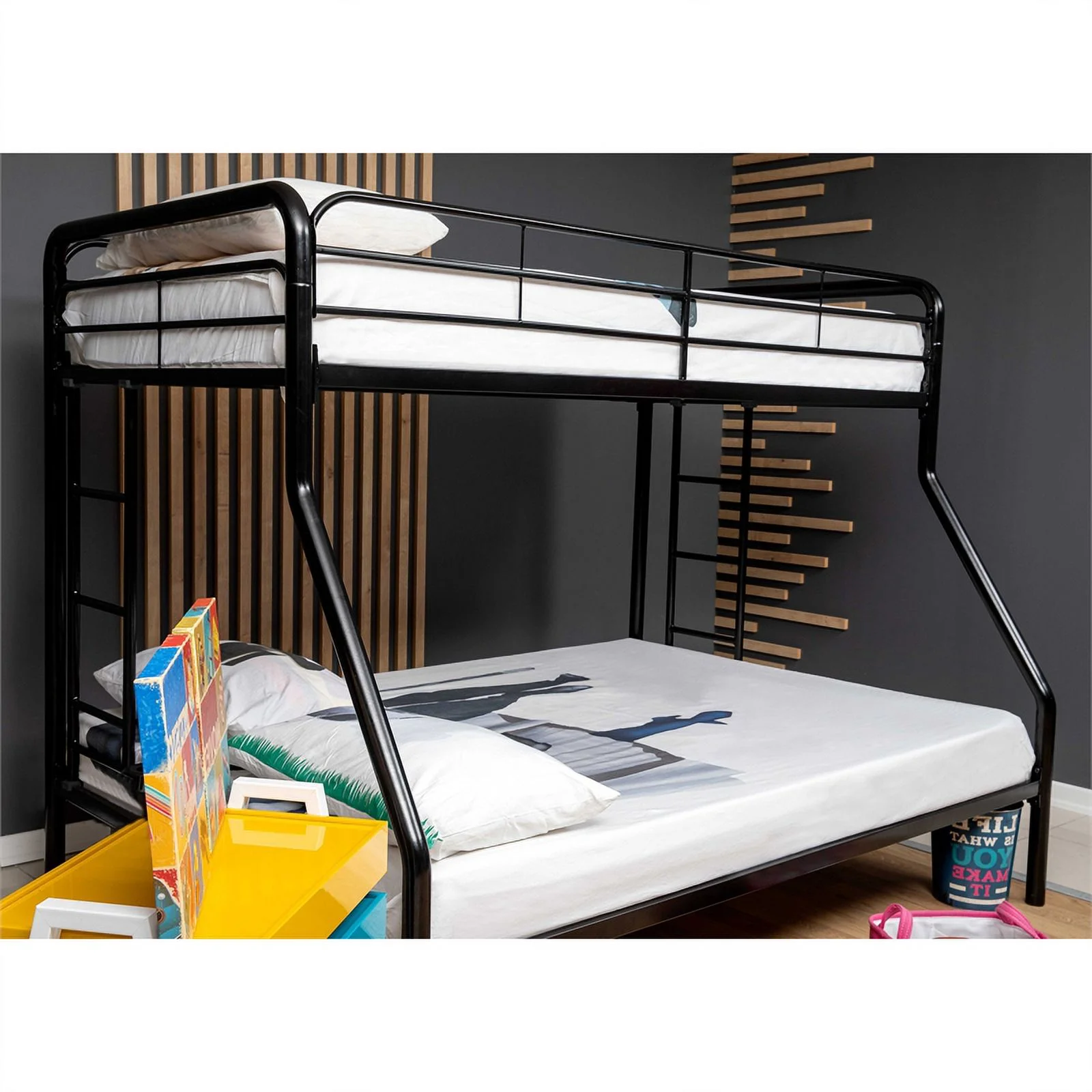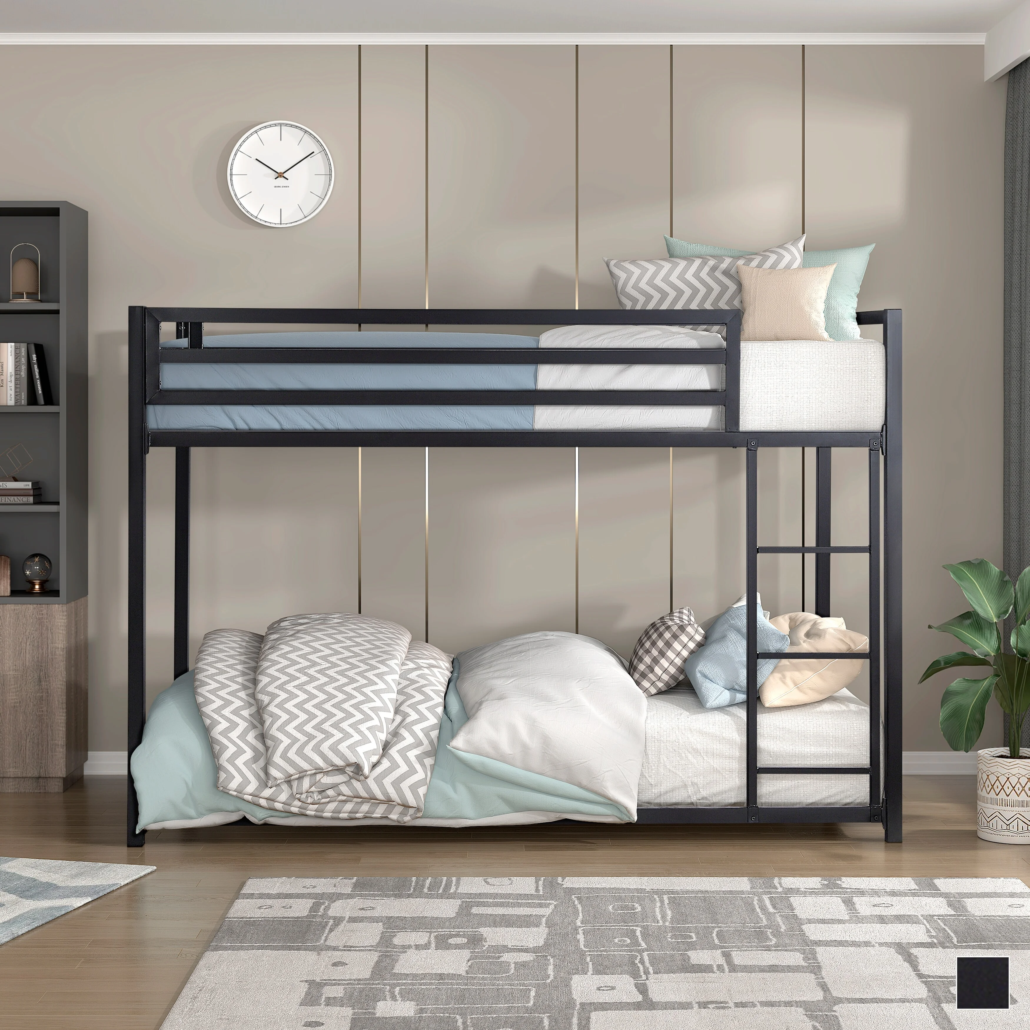 Ashley Furniture Dinsmore Metal Twin over Full Bunk Bed in Black and Gray