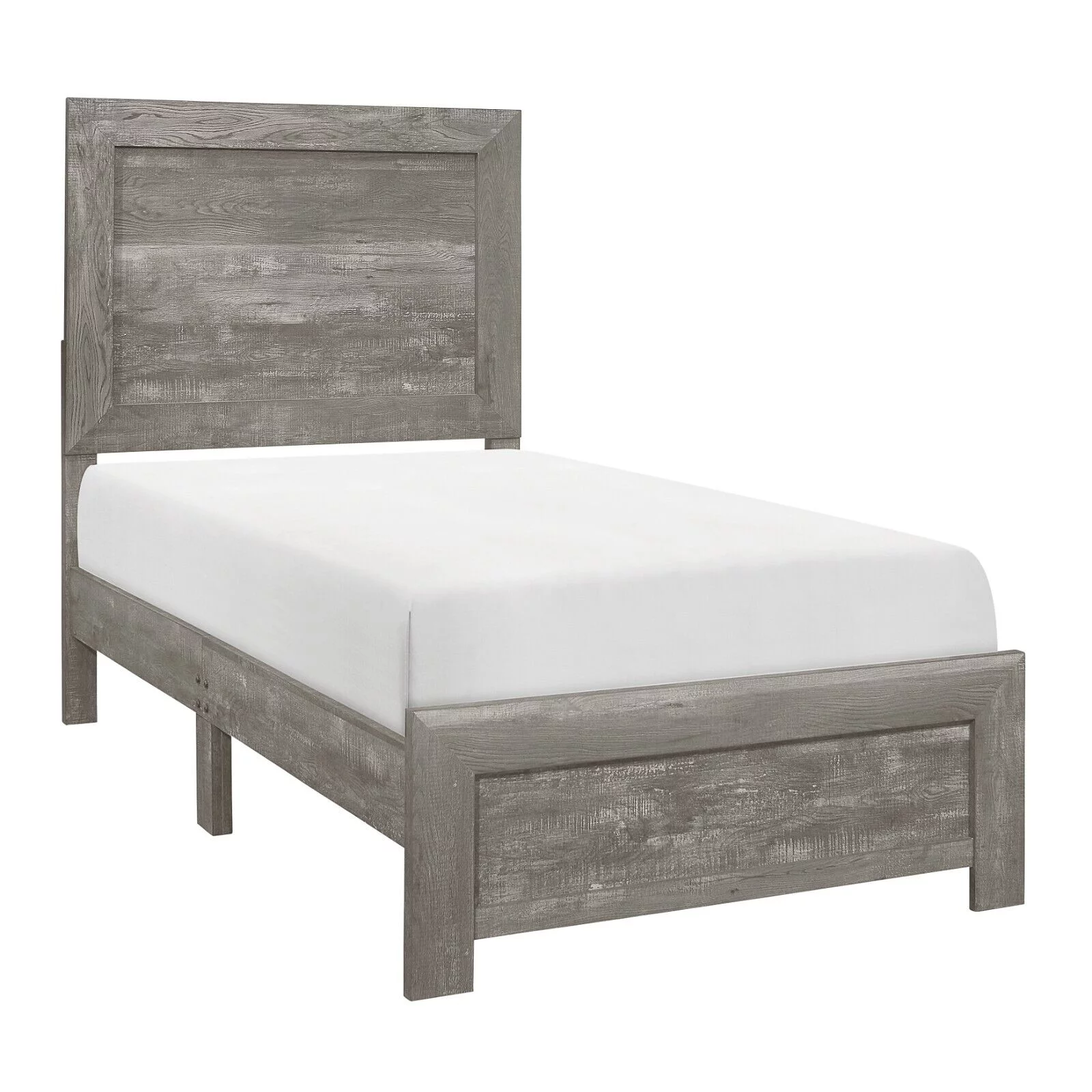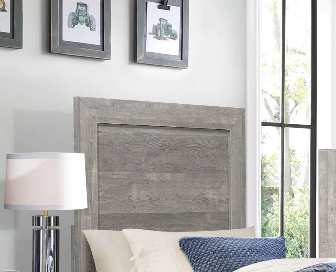 Modern Rustic Style Gray Finish Twin Size Bed and 2x Nightstands Bedroom Furniture 3pc Set