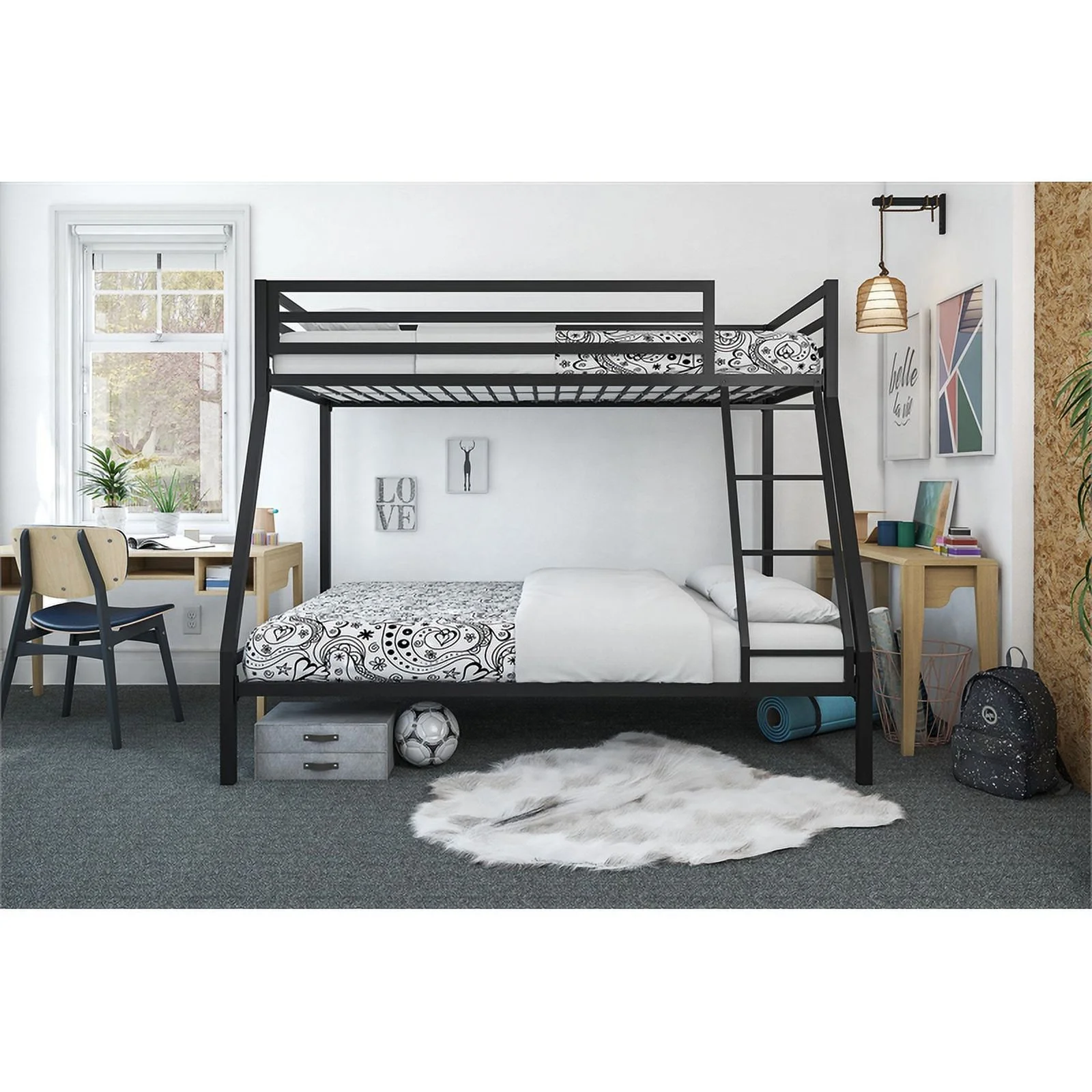 Furniture of America Kandice Metal Twin over Workstation Bunk Bed in Black
