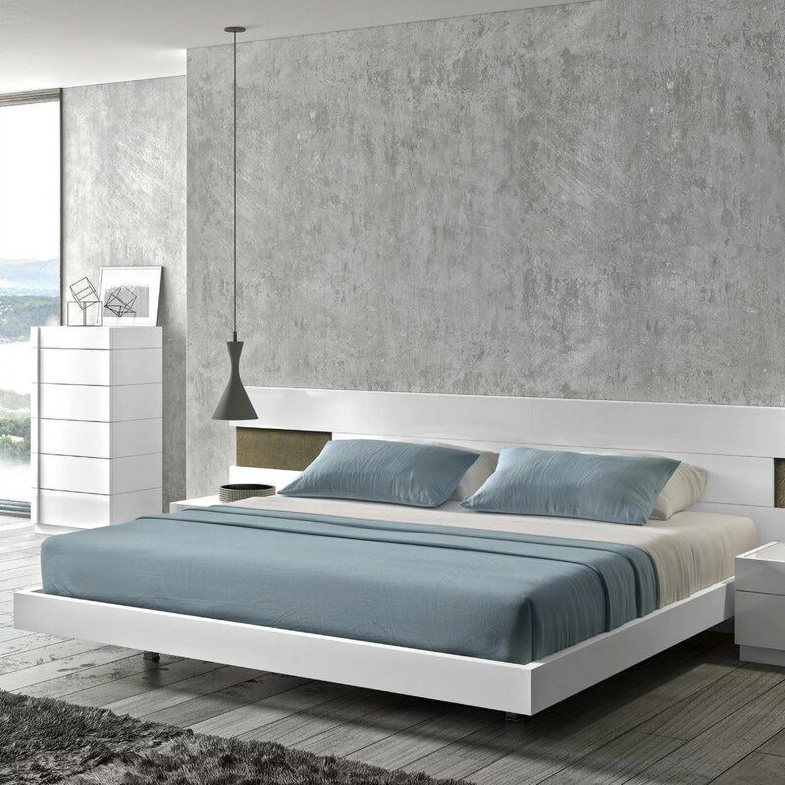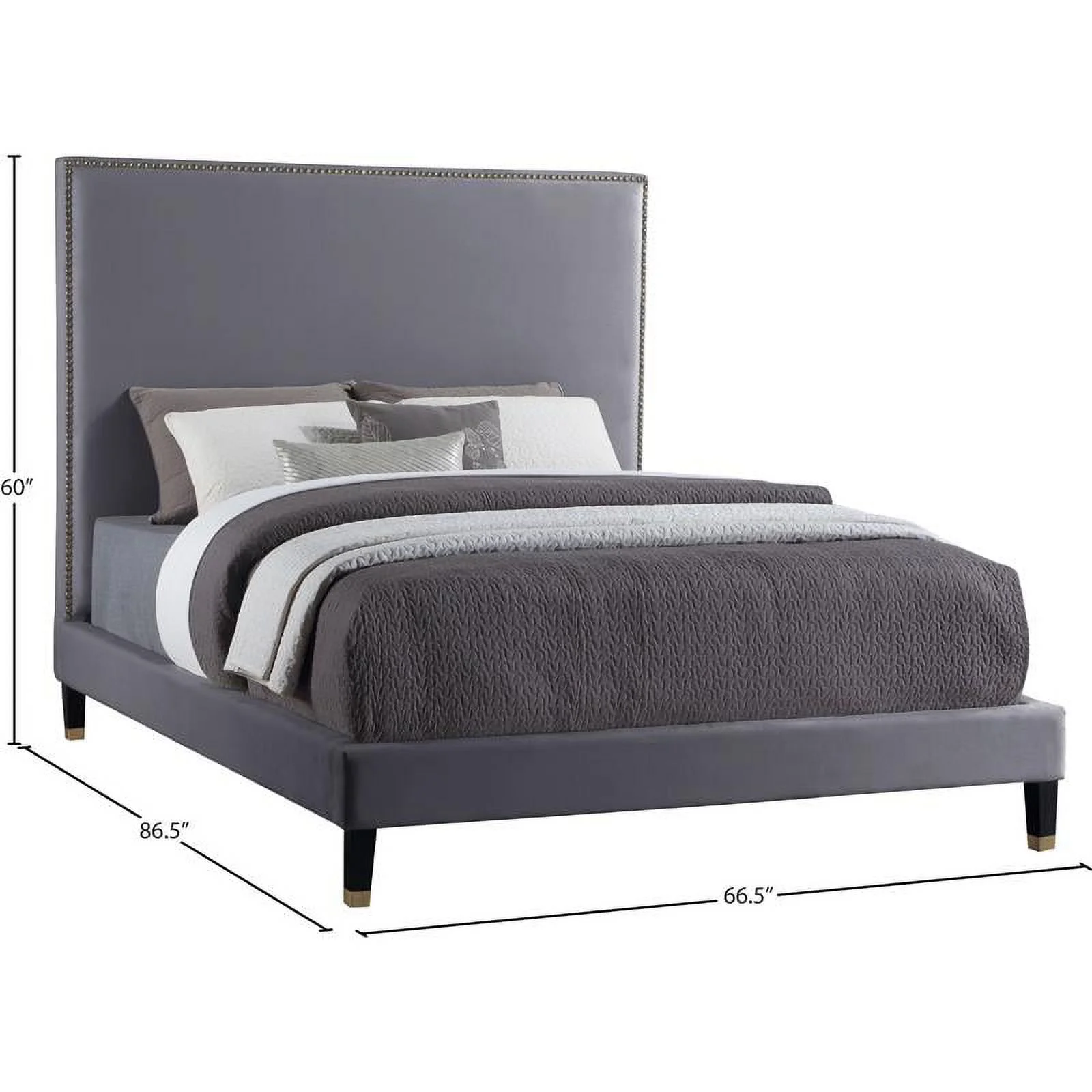 Milan Edinburgh Contemporary Wood and Faux Leather Queen-size Bed in Gray
