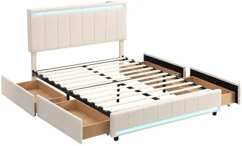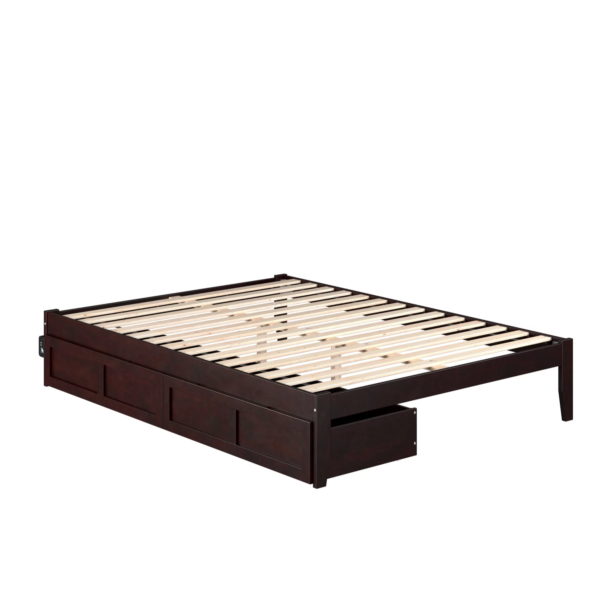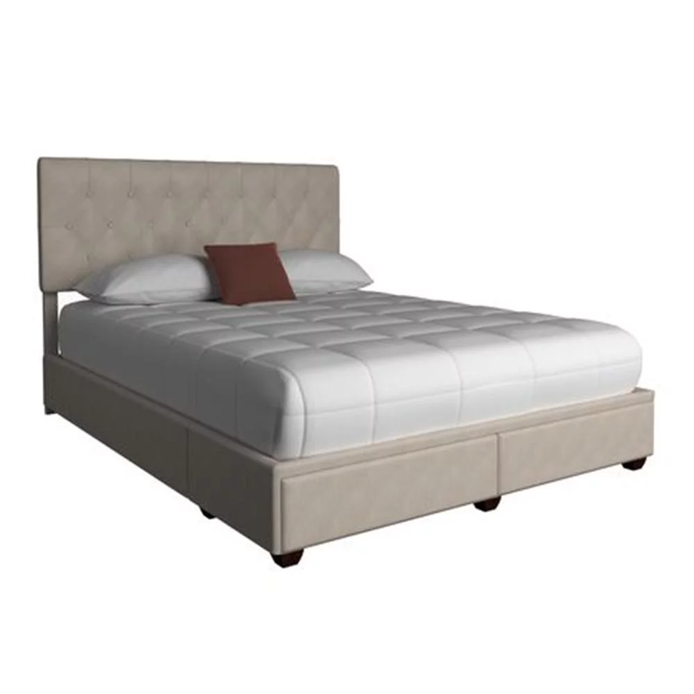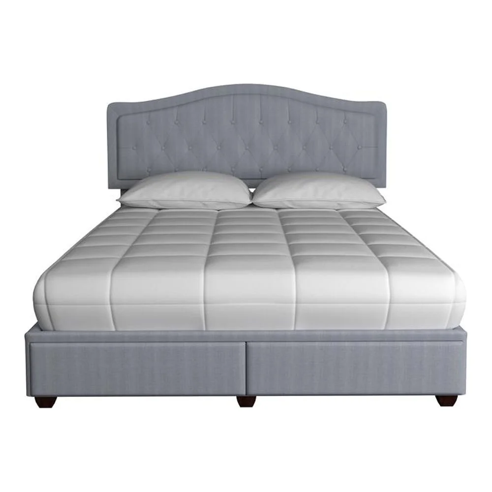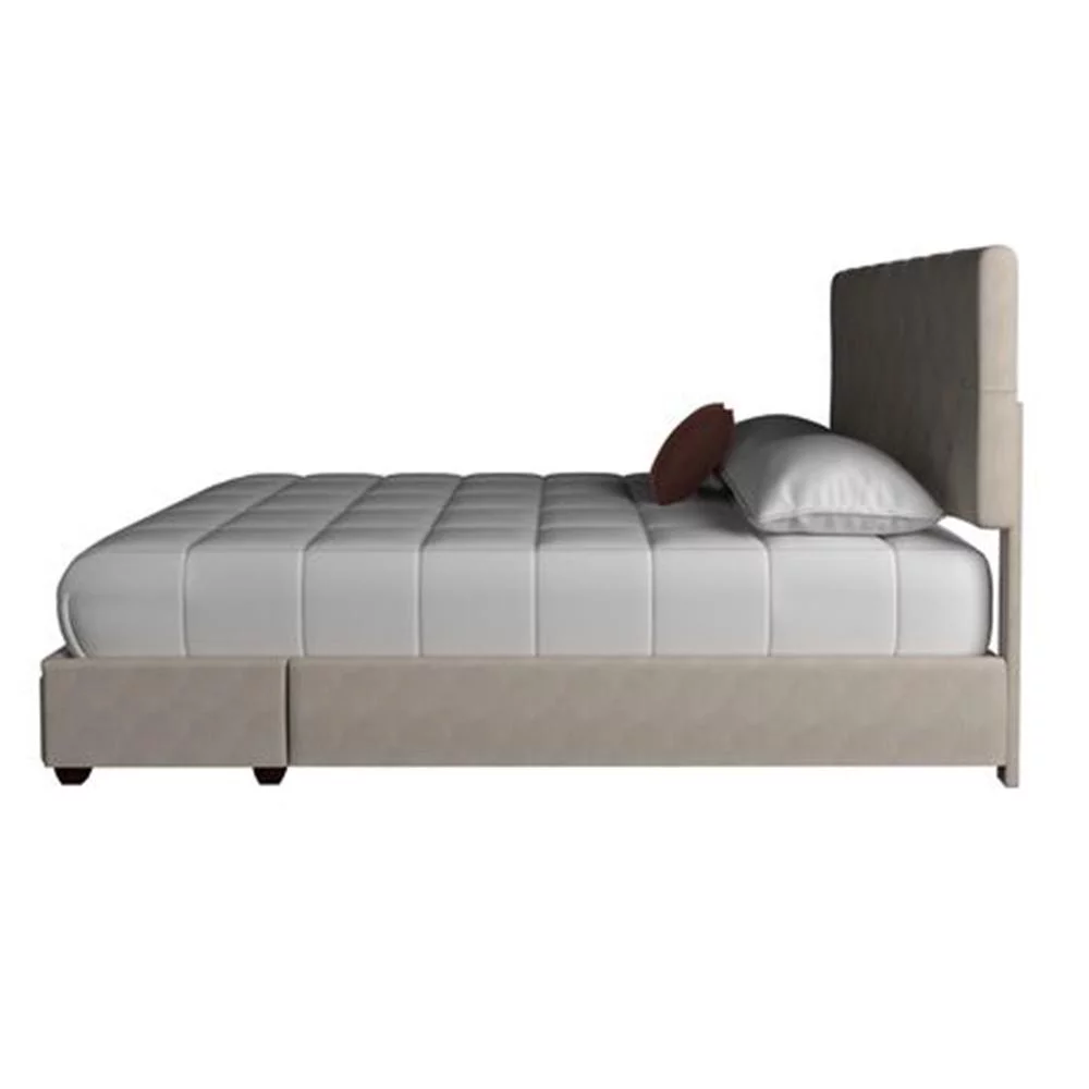 Passion Furniture Burlington Upholstered Panel Bed with Two Storage Drawers, Cherry - Queen Size