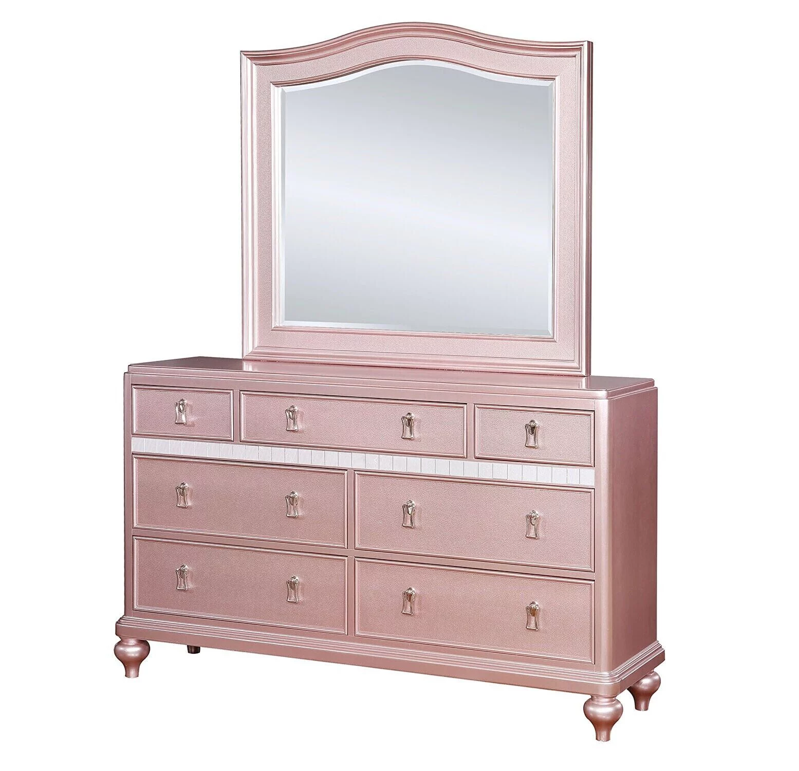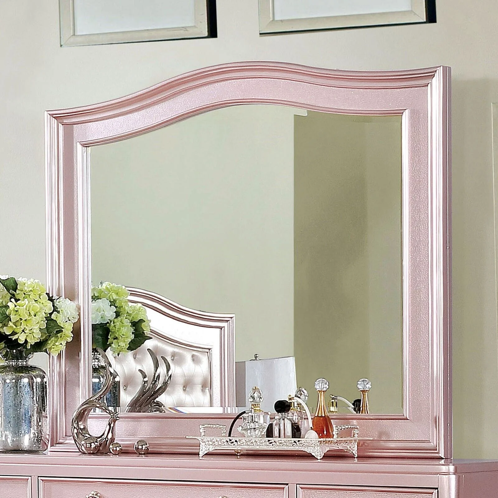 Contemporary Rose Gold Twin Size Bed Dresser Mirror Nightstand 4pc Set Padded Headboard Tufted Bedroom Furniture Solid wood