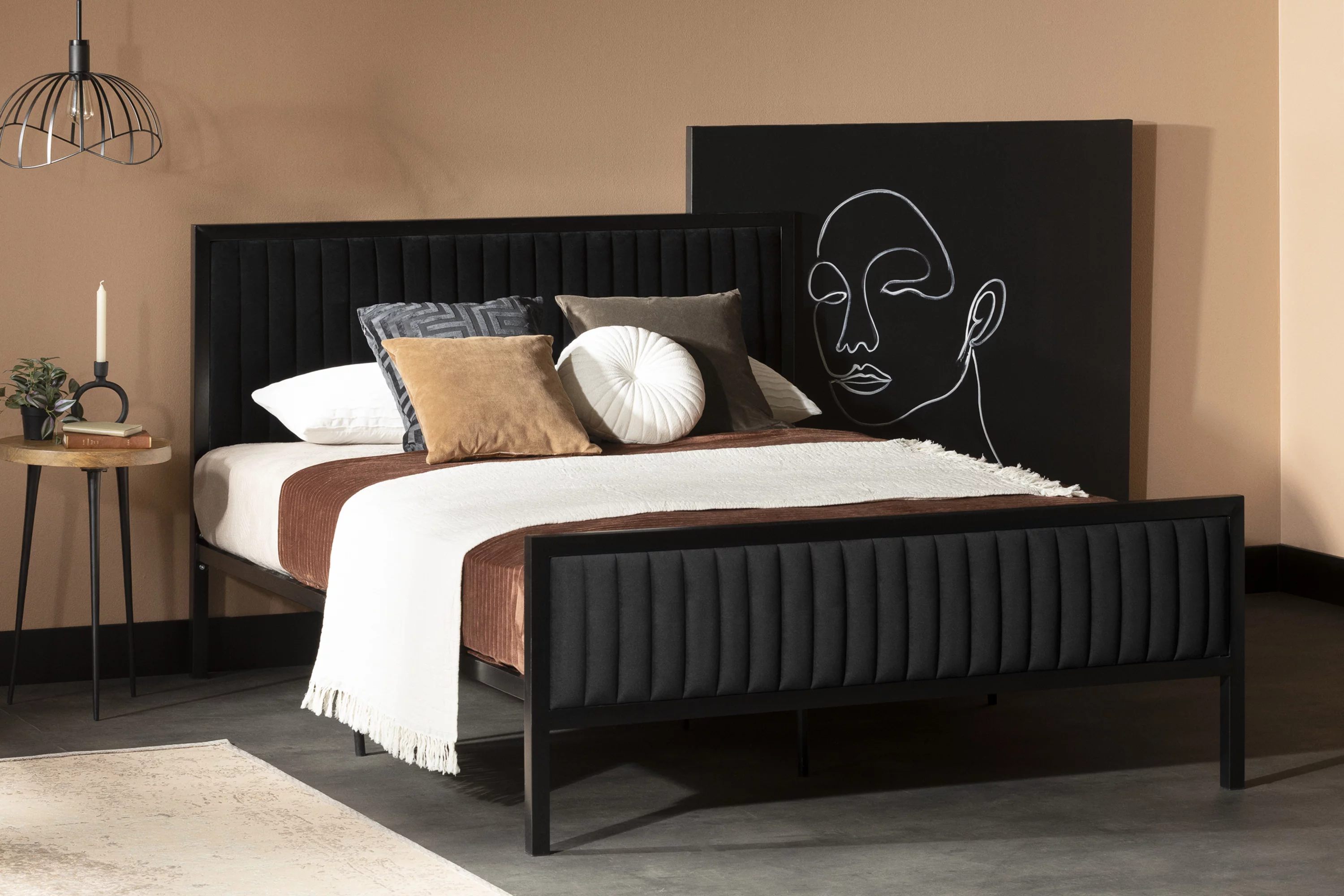 90 x 68 x 72 in. Varian Bed, Black Velvet & Mirrored - Queen Size - Case of 3