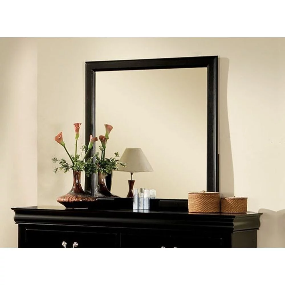 Classic Louis Philippe Style Bedroom 4pc Set Twin Bed Nightstand Dresser Mirror Traditional Black Finish Furniture