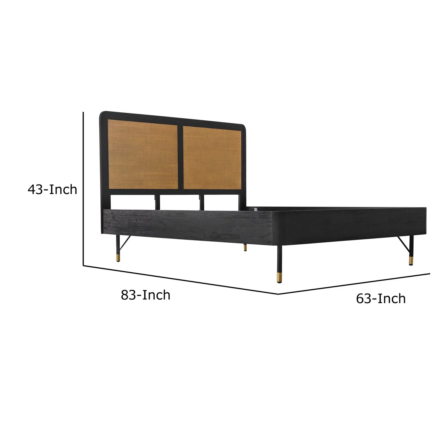 Benjara Theo Acacia Wood Platform Queen Bed with Rattan Headboard, Footboard, Black