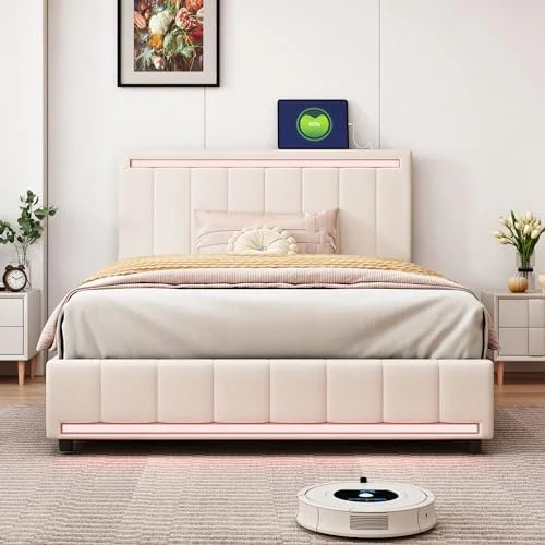 CoSoTower 3-Pieces Bedroom Sets Full Size Bear-Shape Platform Bed with Nightstand and Storage Dresser,Cream+Walnut