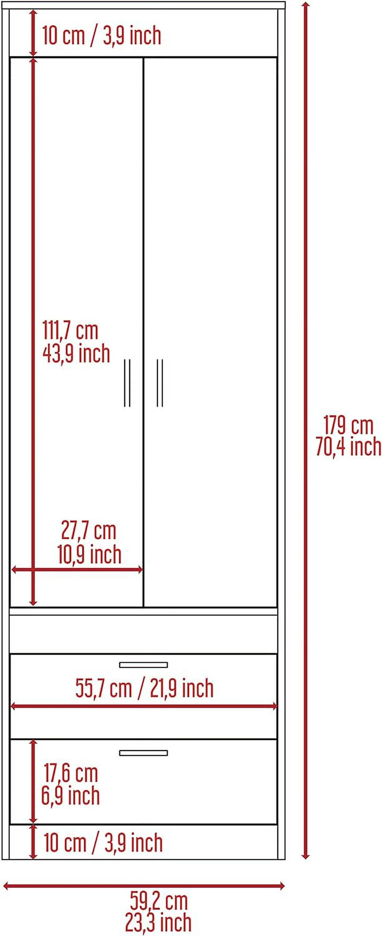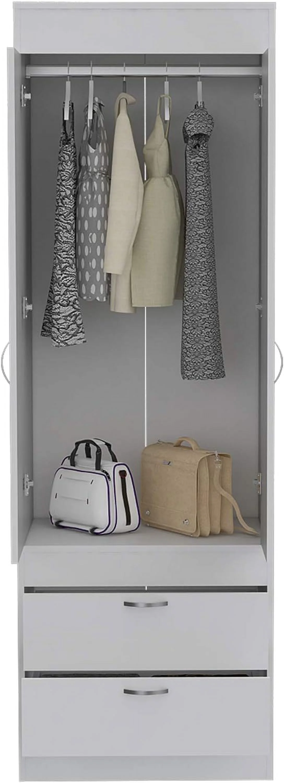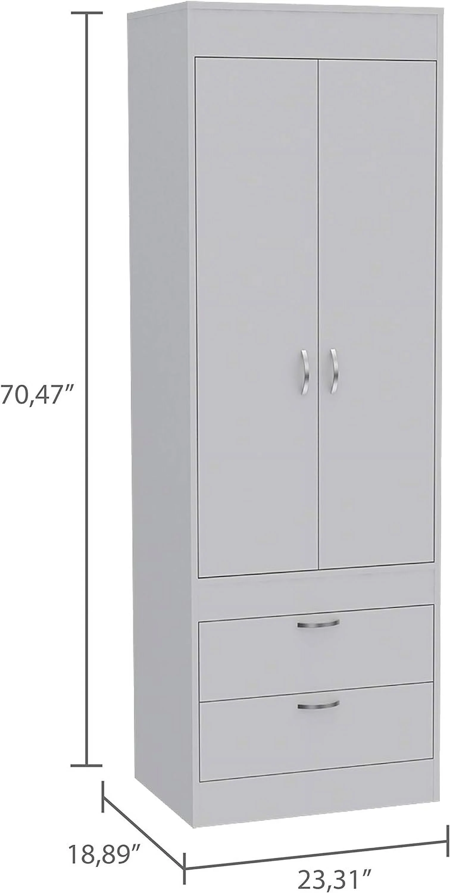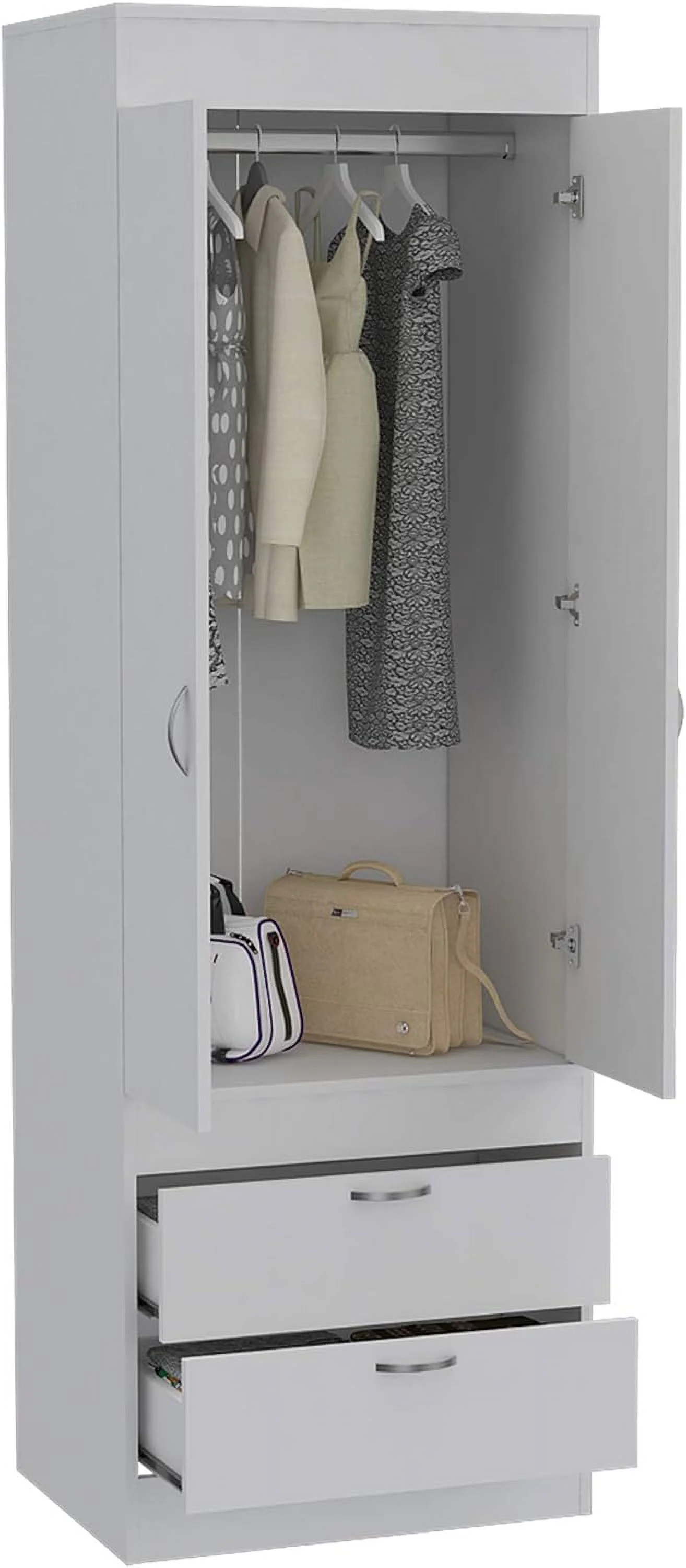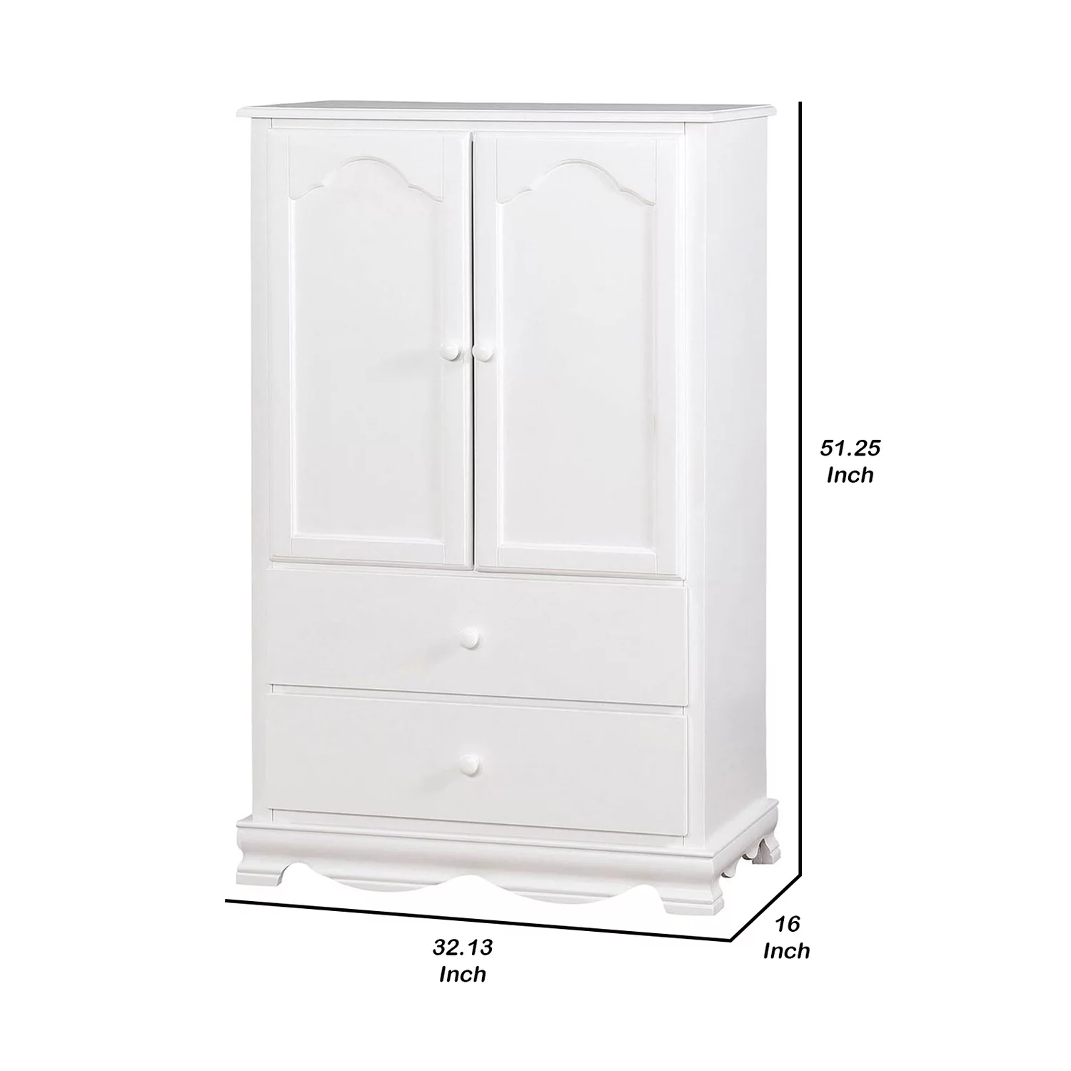 Pemberly Row Engineered Wood Armoire with 2-Drawers & 2-Doors in White