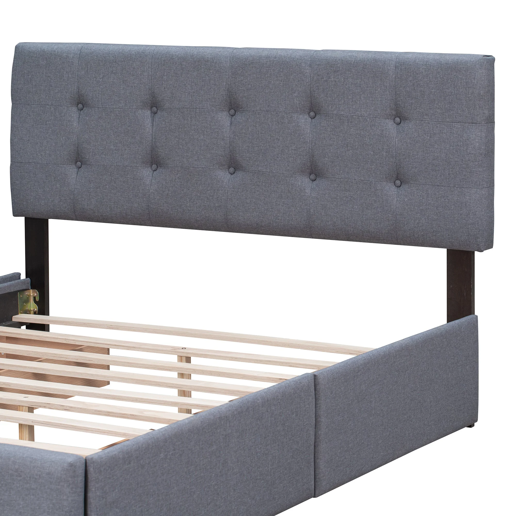69 x 67 x 90 in. Leonora Queen Size Bed, Fabric & Vintage Platinum