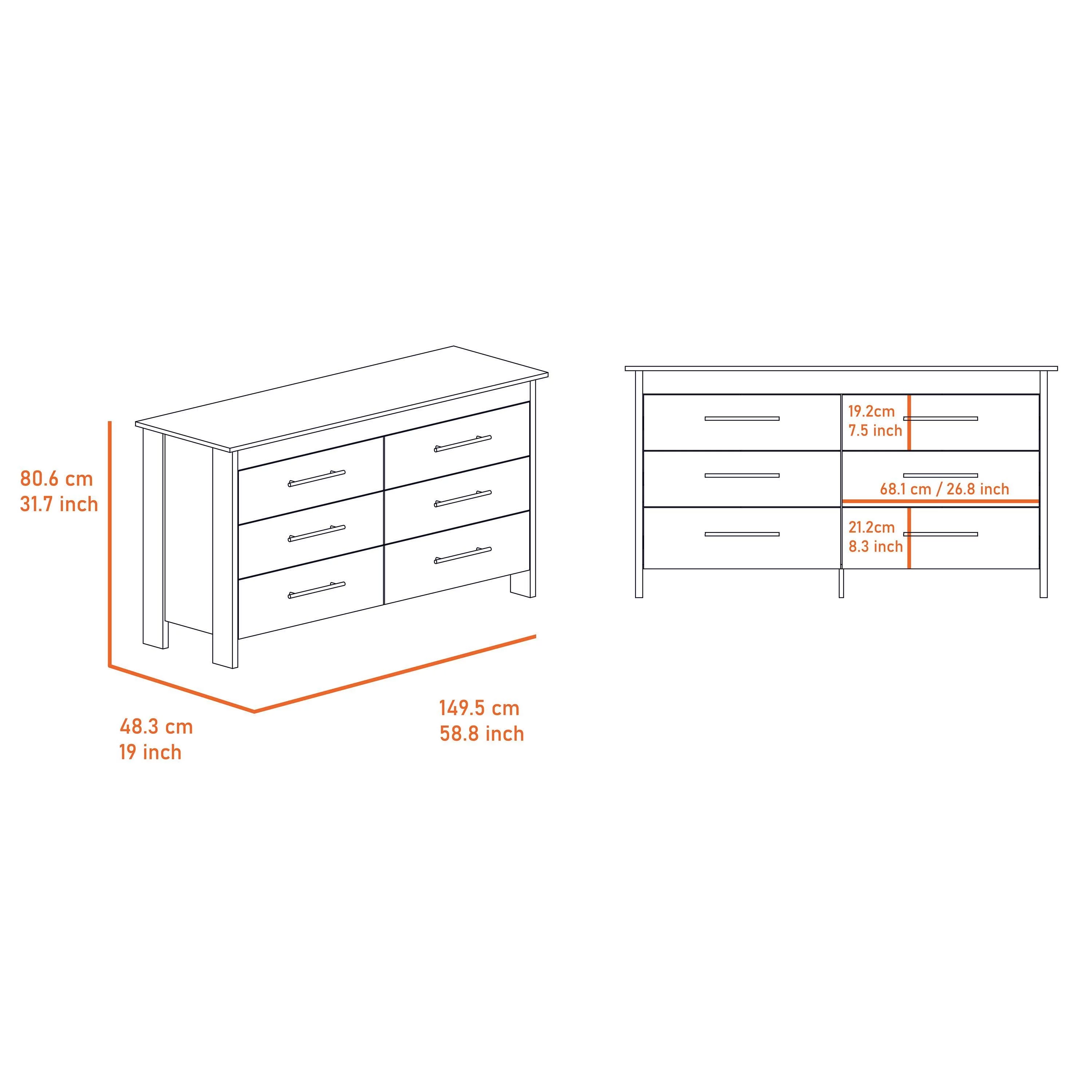 FM Furniture Canaan 2-Piece Bedroom Set with Armoire and 6-Drawer Dresser, White