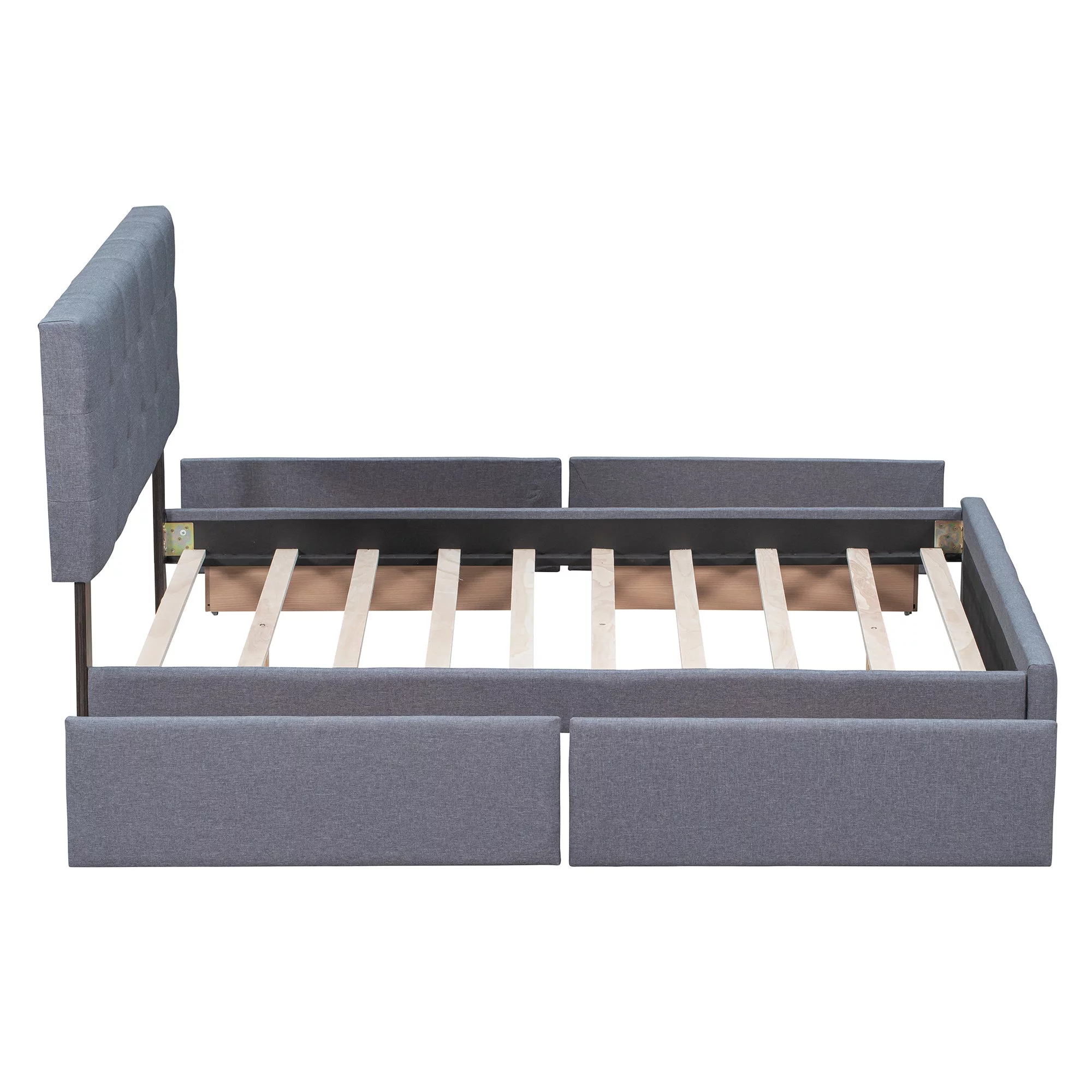 85 x 62 x 42 in. Valdemar Bed, Brown Fabric & Weatheted Gray - Queen Size