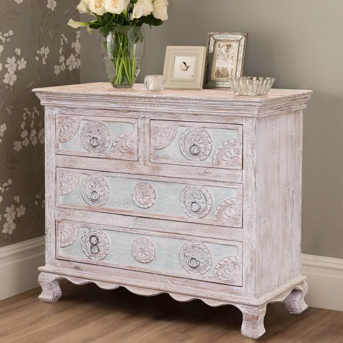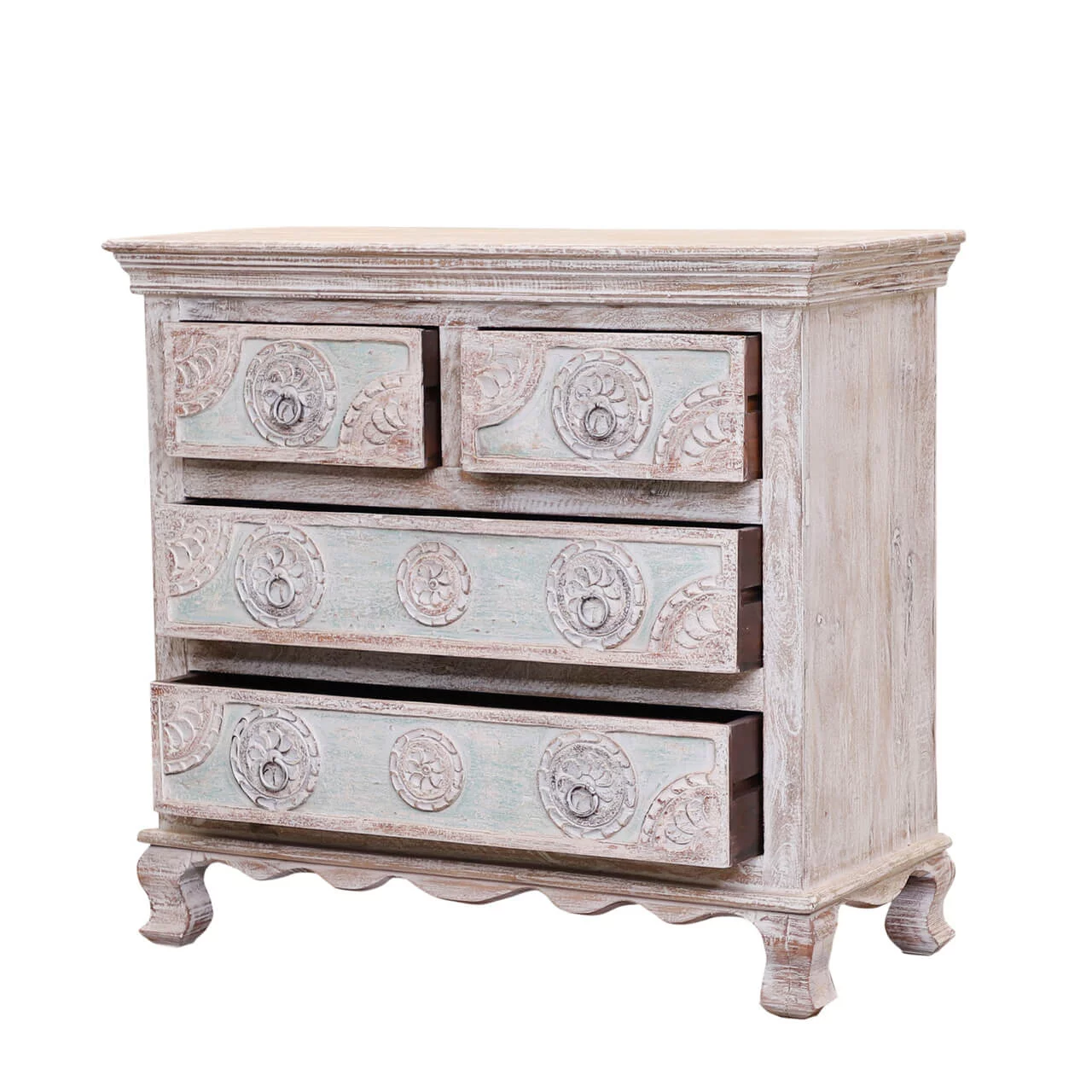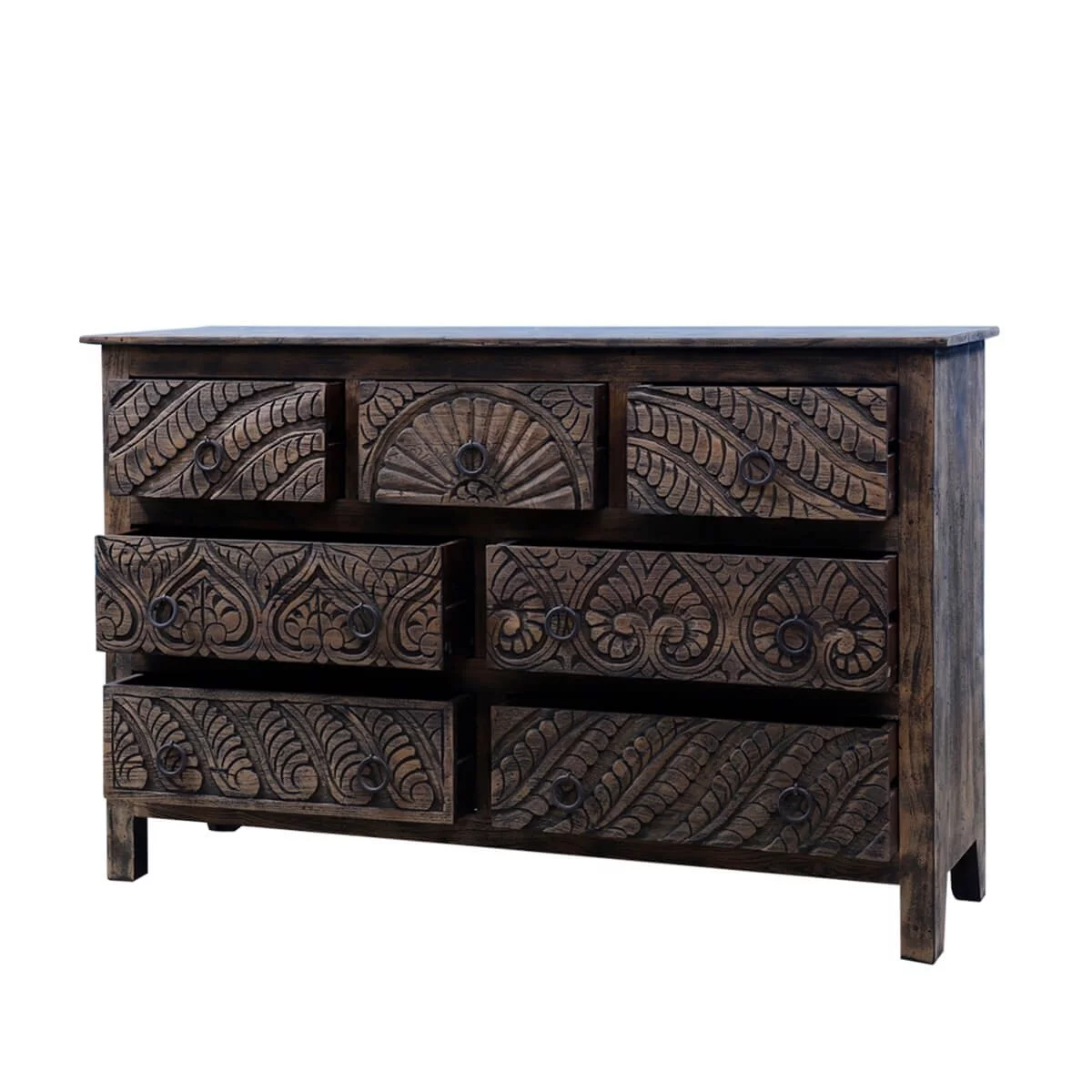Mughal Garden Indian Hand Carved Reclaimed Wood 7 Drawer Rustic Dresser