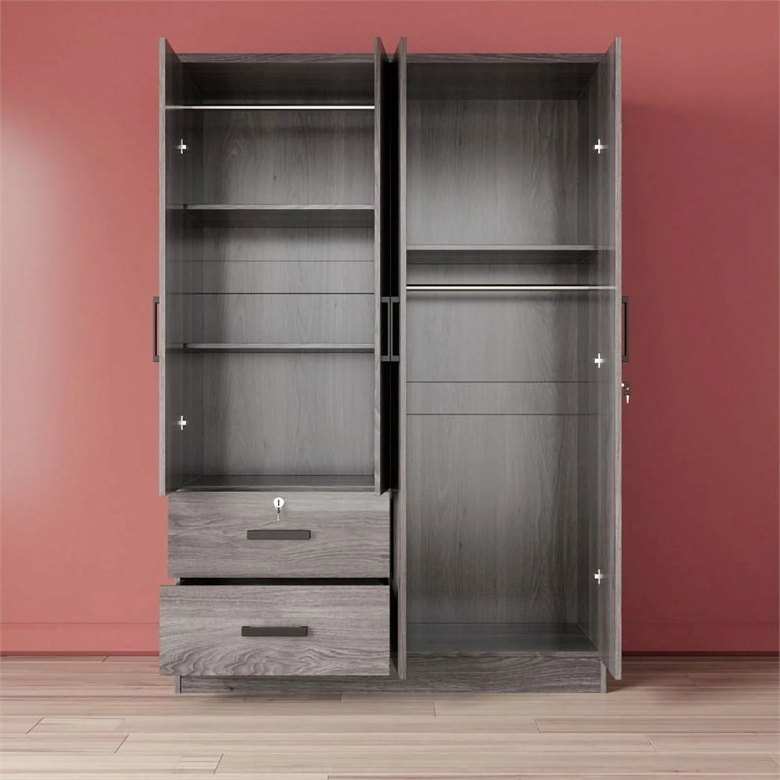 Pemberly Row 4 Doors & 2 Drawers Modern Engineered Wood Armoire in Gray