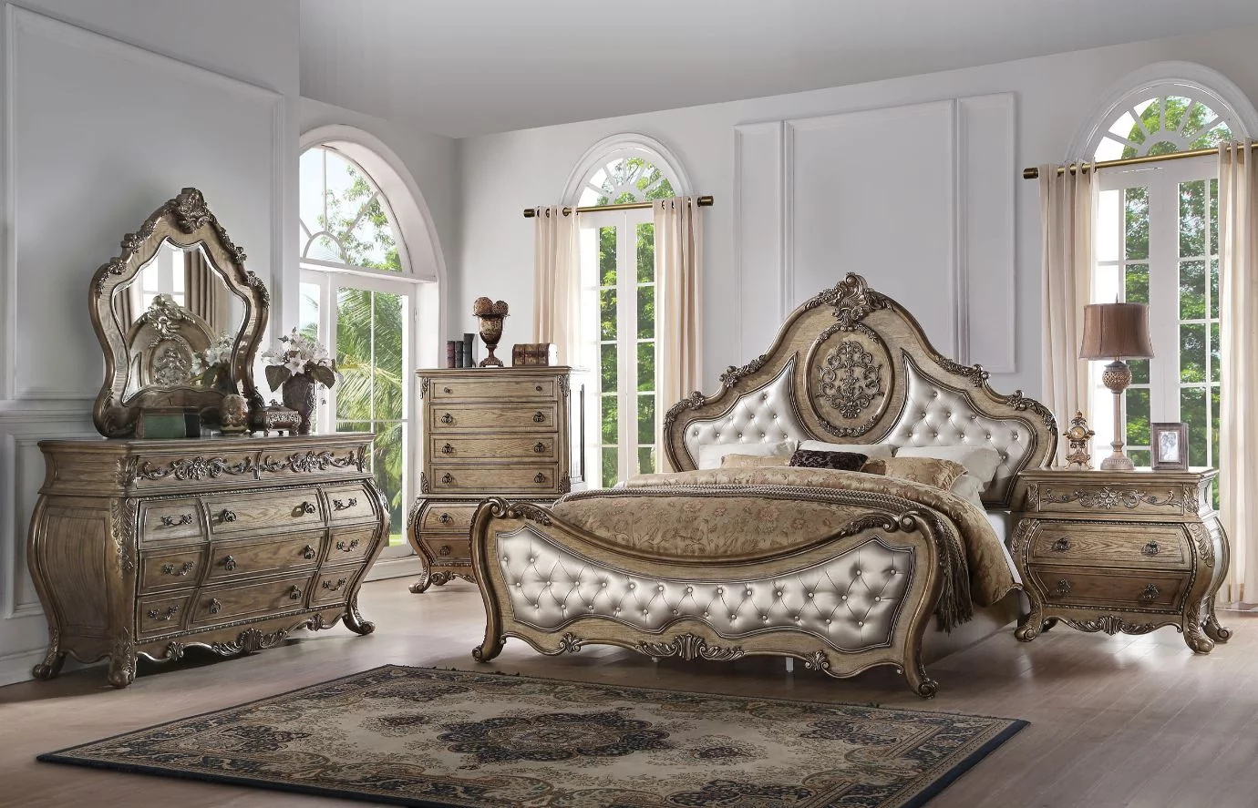 Transitional Style Cream Queen Size Bed 4pc Set Dresser Mirror Nightstand Bedroom Furniture Wooden Home