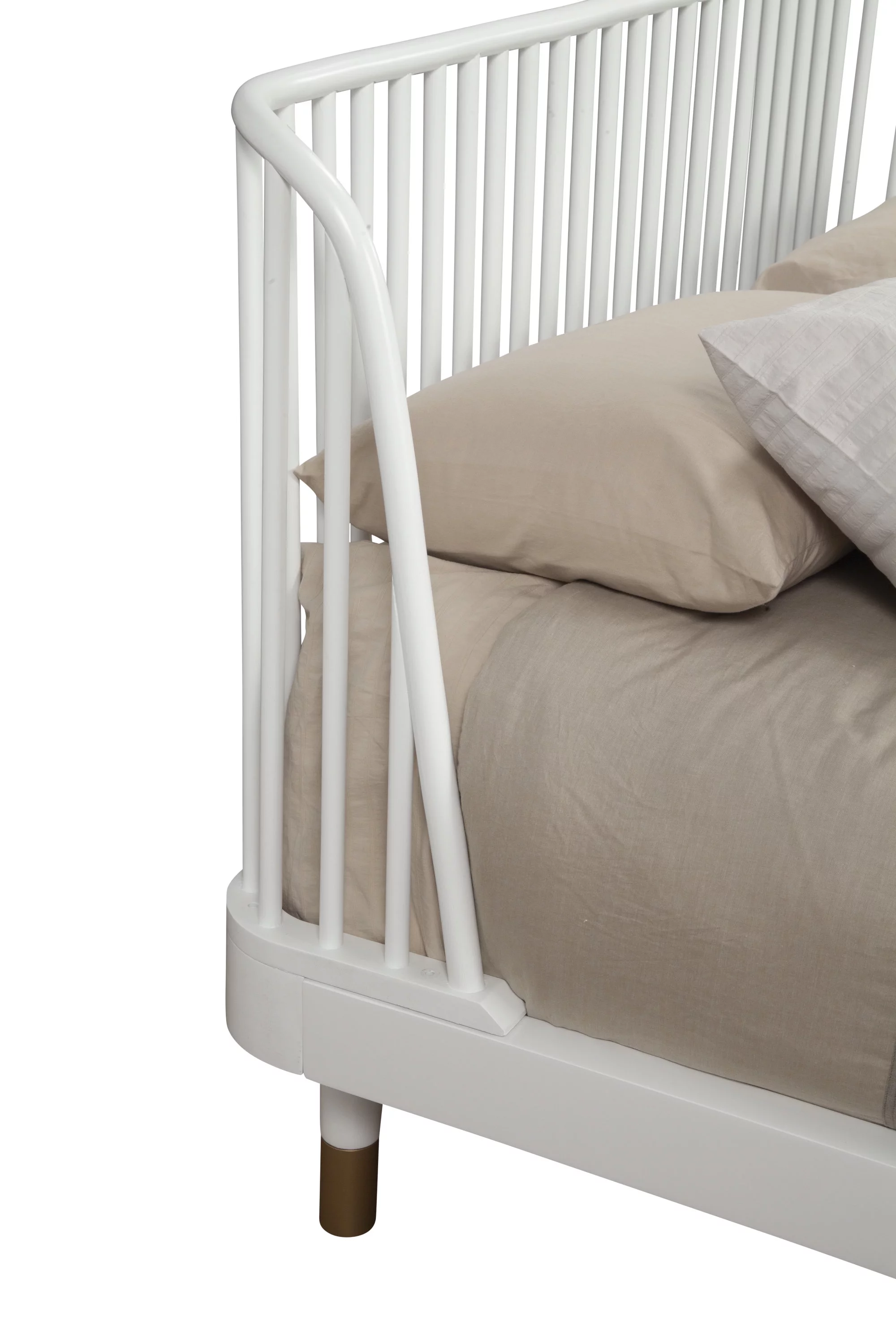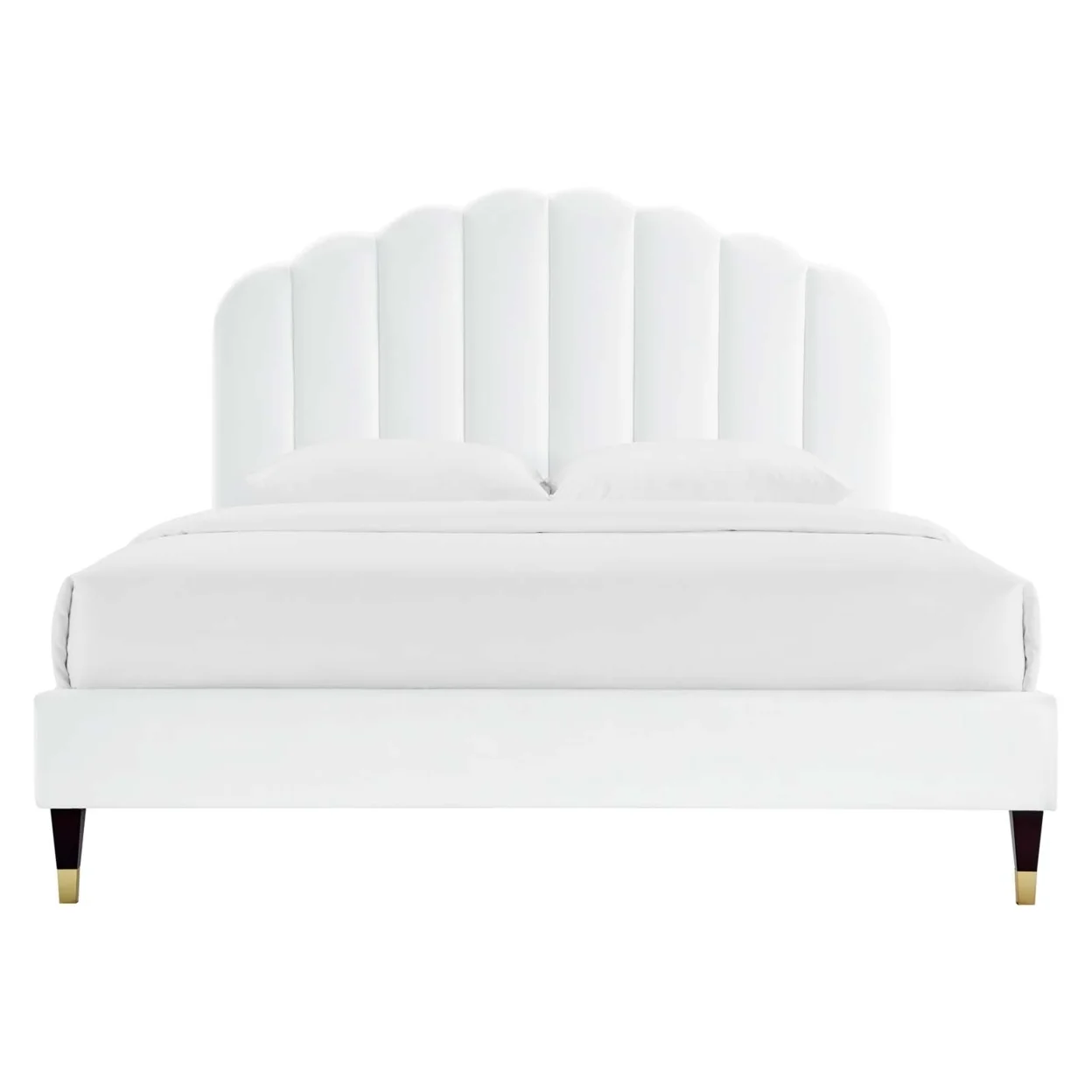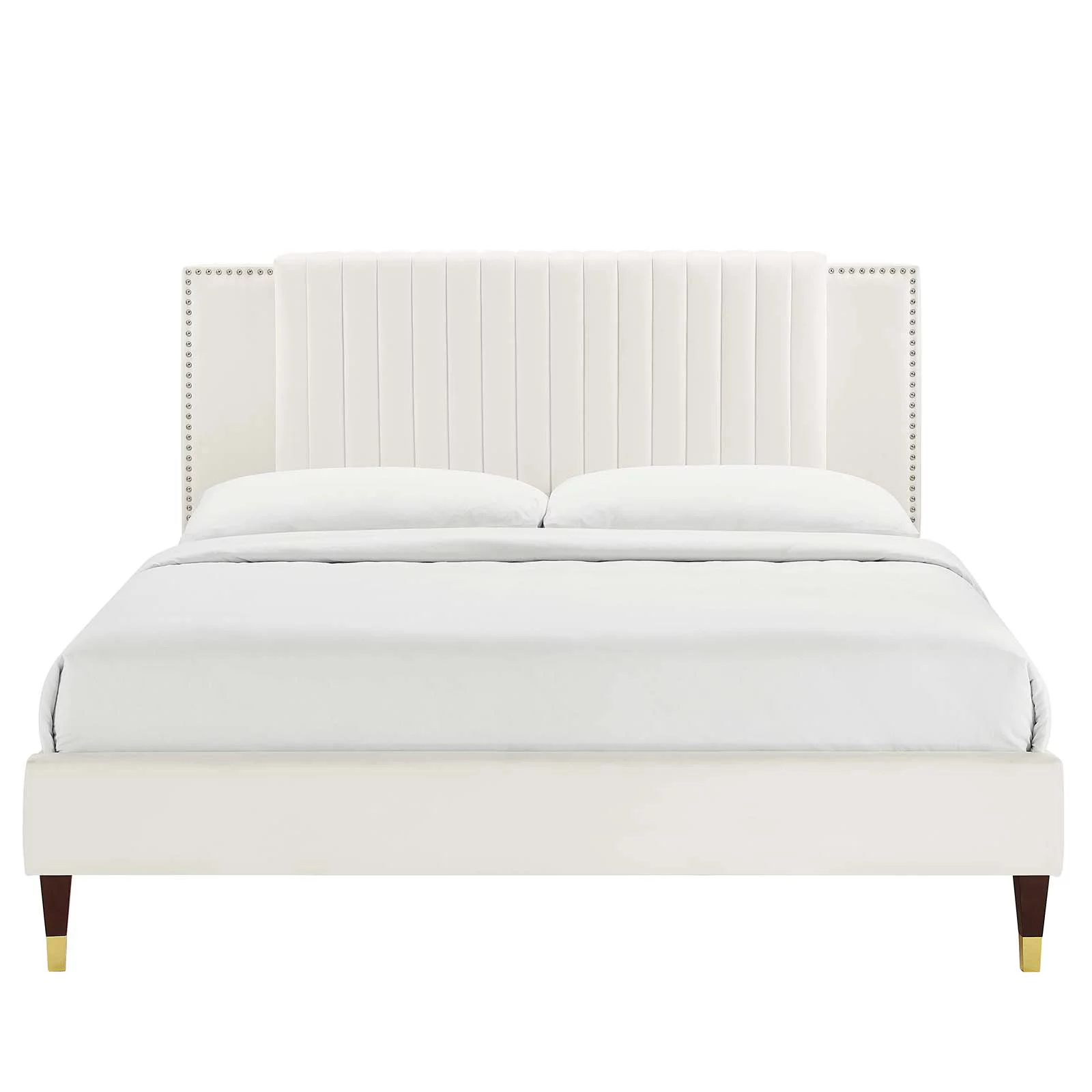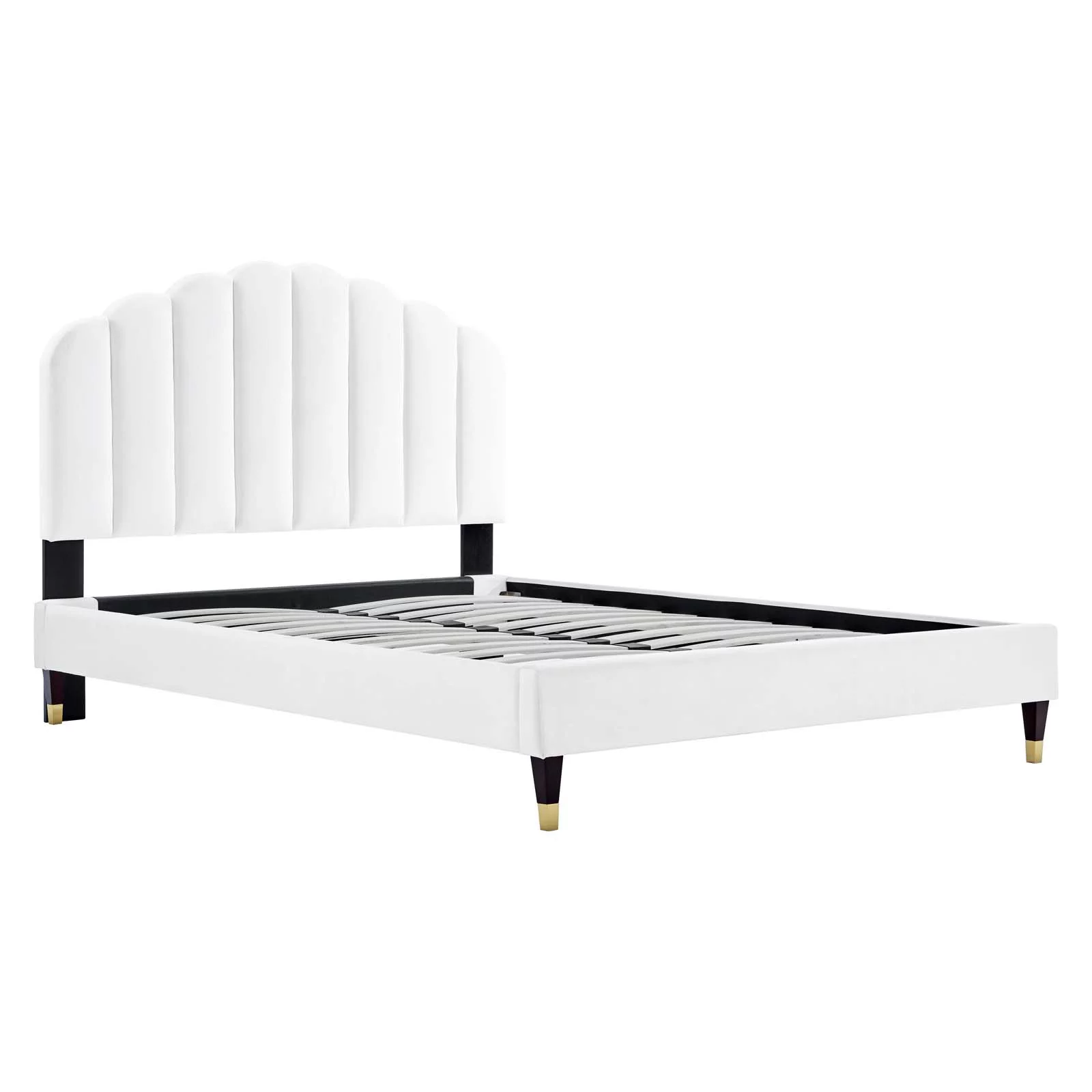Channel Tufted Queen Bed with Gold Sleeve Wood Leg White Saltoro Sherpi