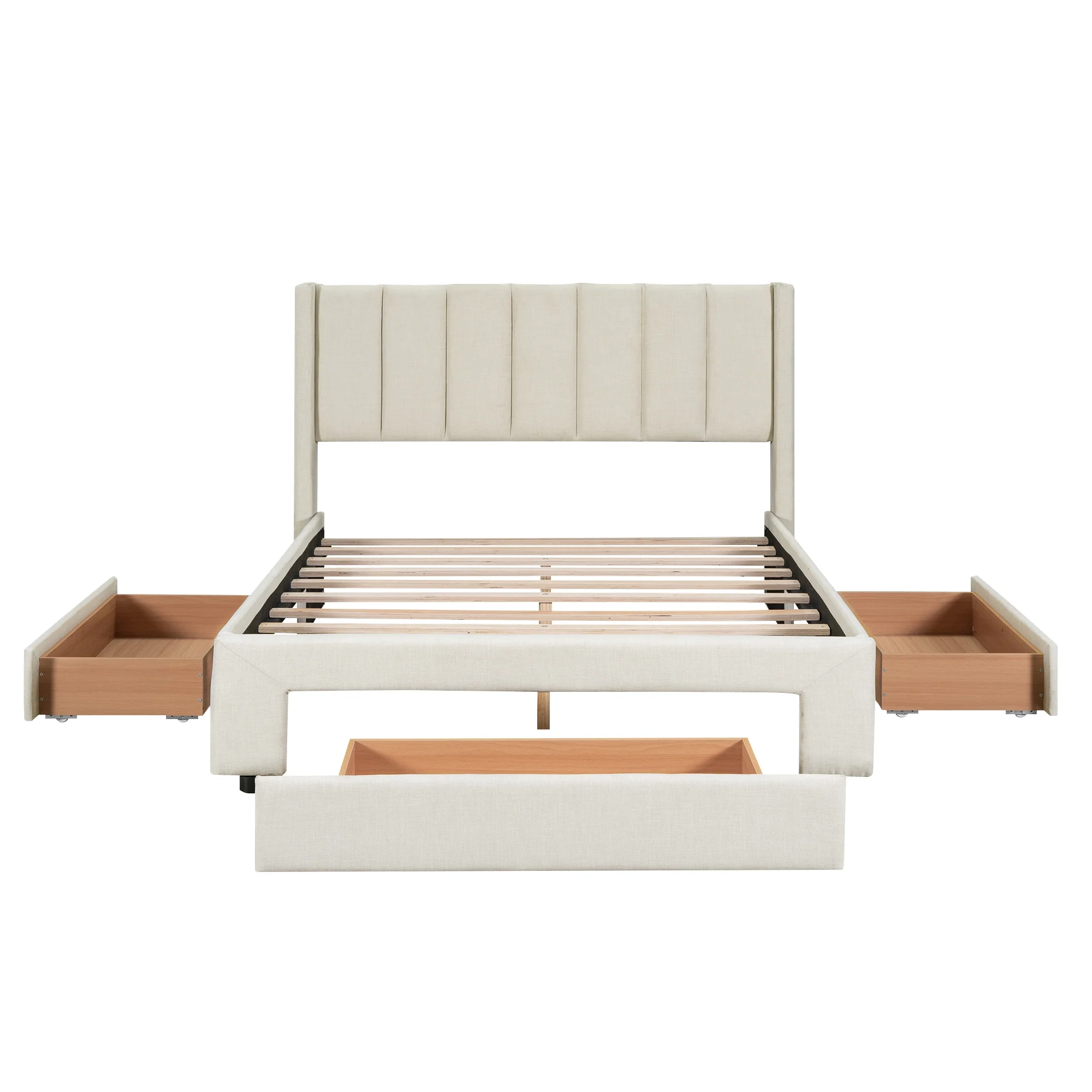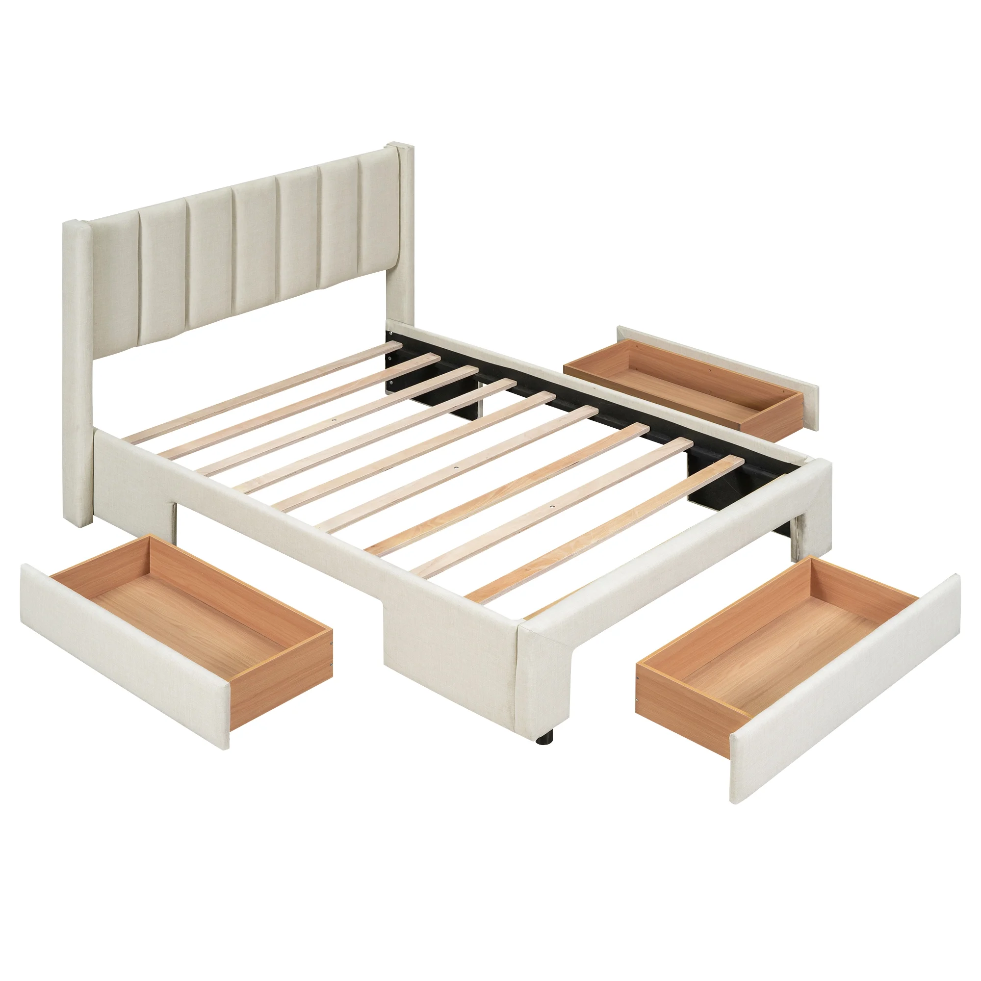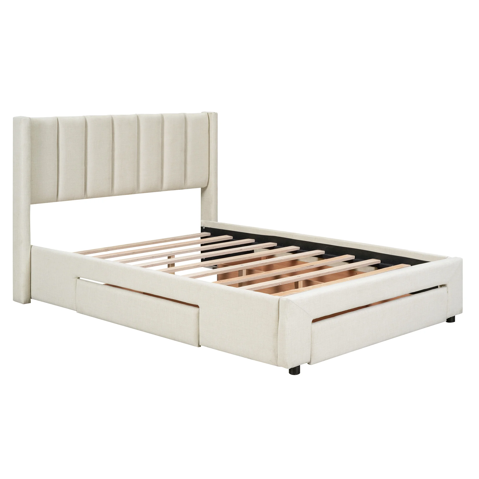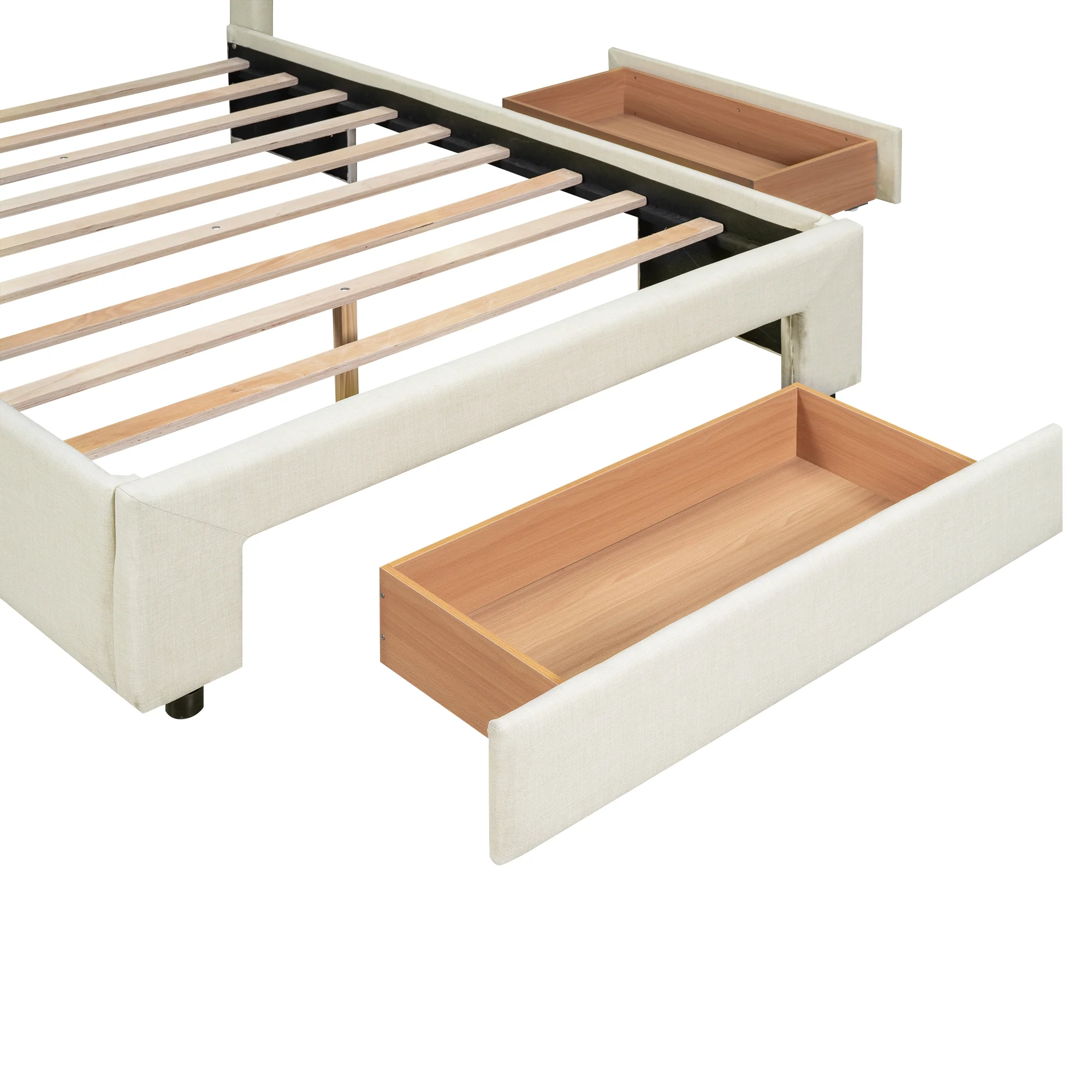 EUROCO Full Size Upholstery Platform Bed with Three Storage Drawers for Bedroom, Beige
