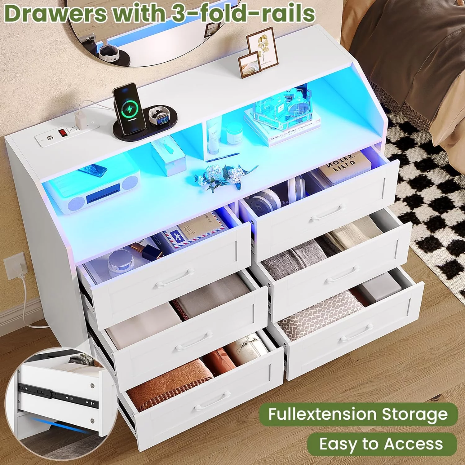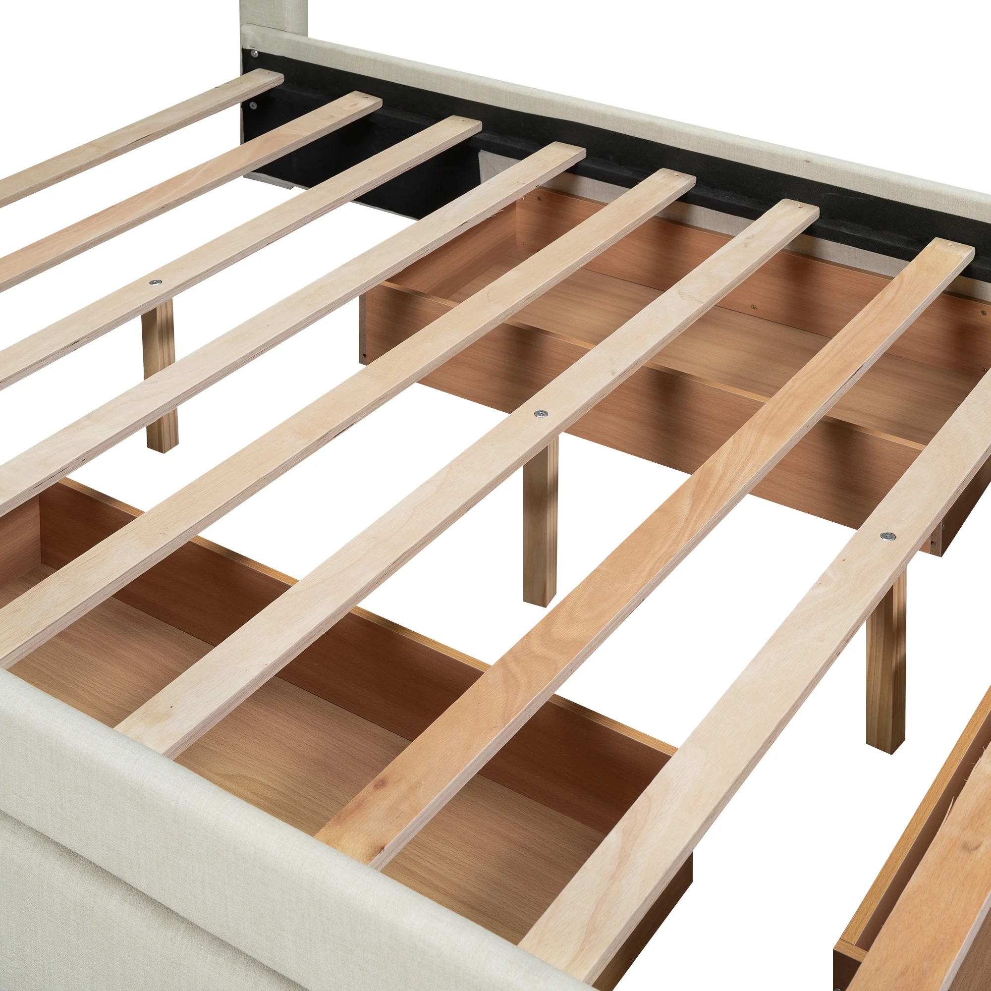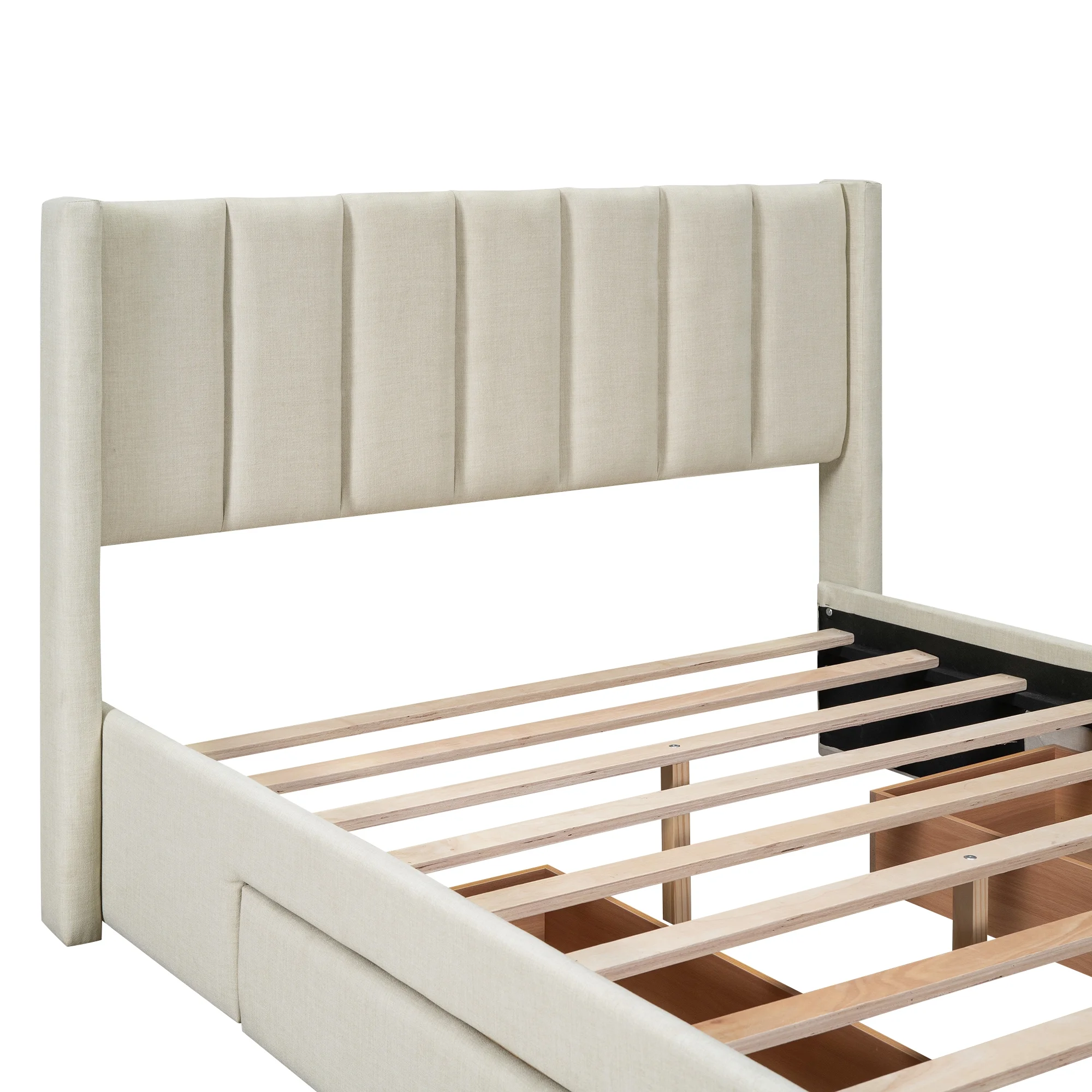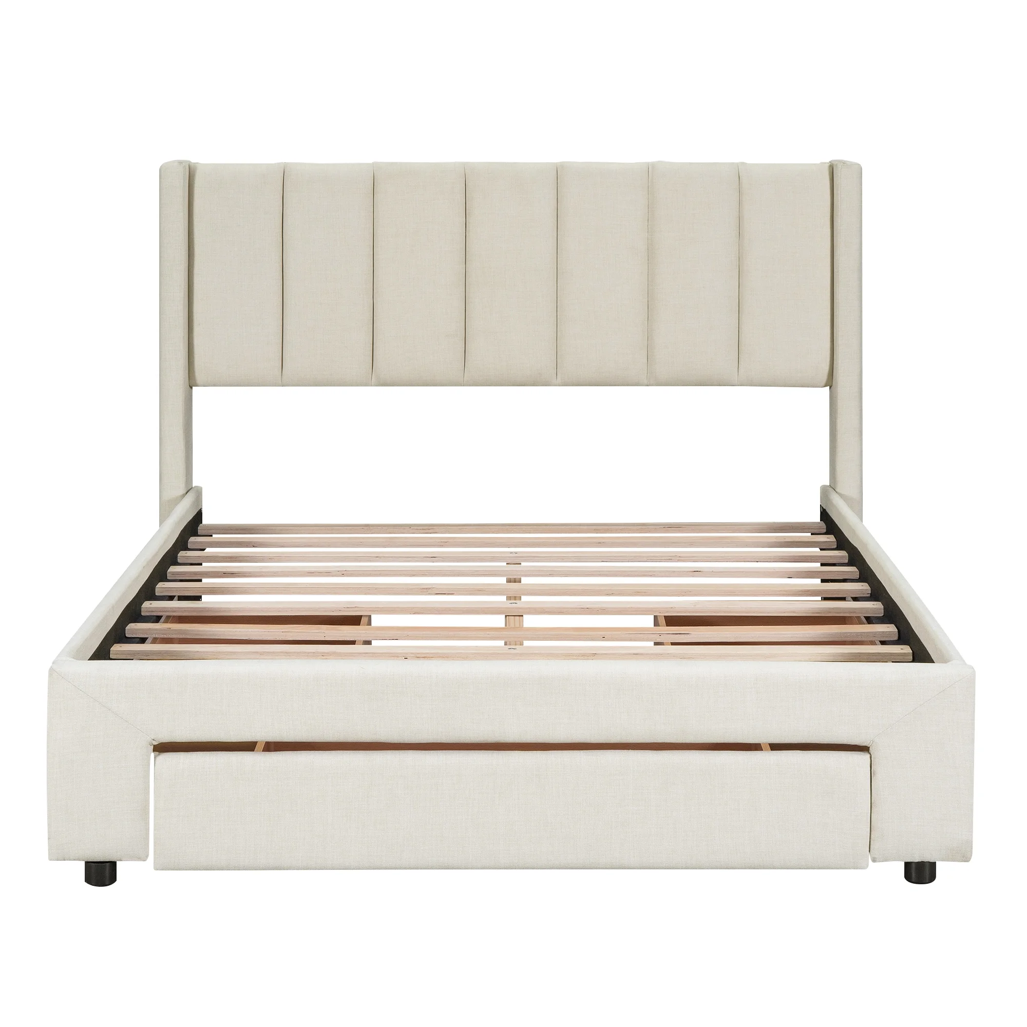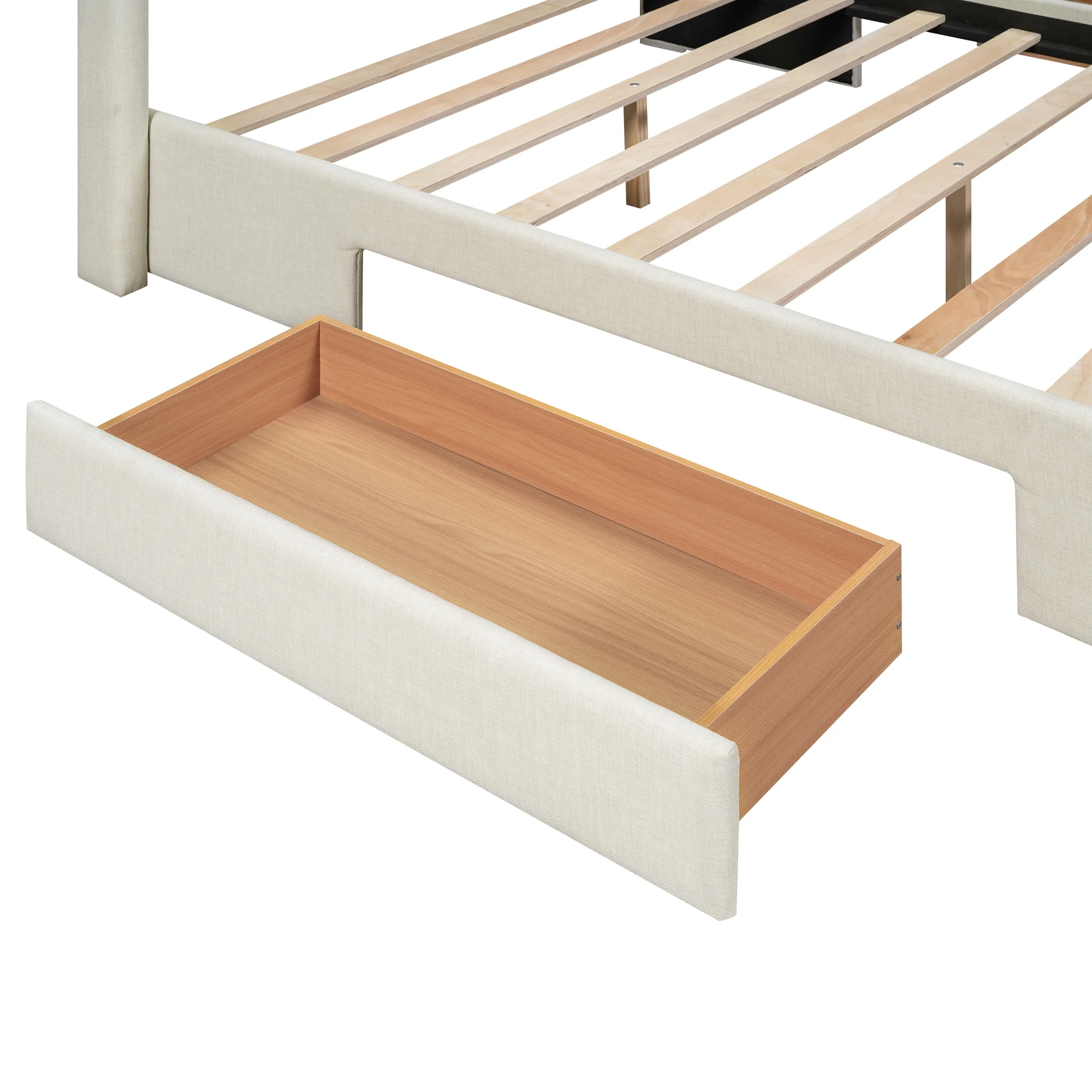 EUROCO Full Size Upholstery Platform Bed with Three Storage Drawers for Bedroom, Beige