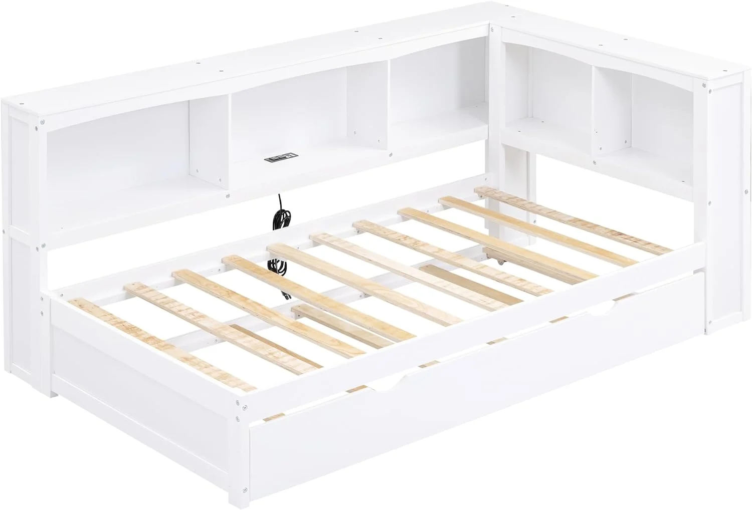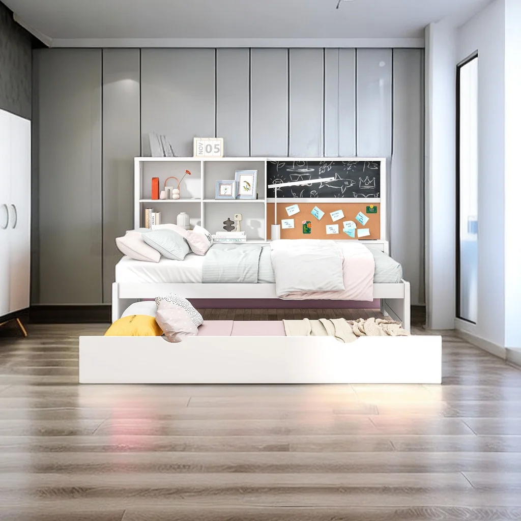 DHP Dakota Upholstered Bed with Signature Sleep Tranquil 8-Inch Pocket Spring Mattress, Twin, White