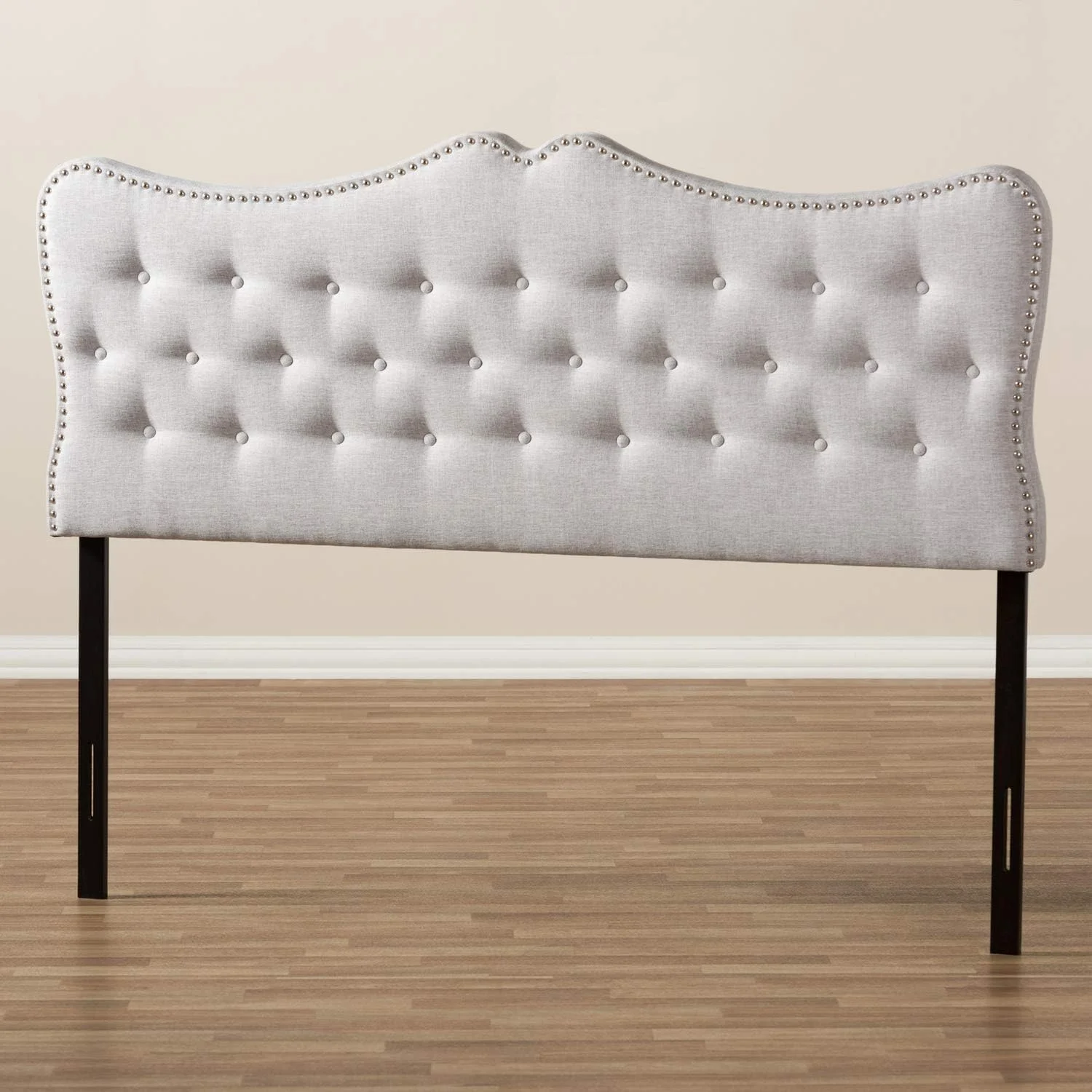 Emma Modern And Contemporary Greyish Beige Fabric Queen Size Headboard