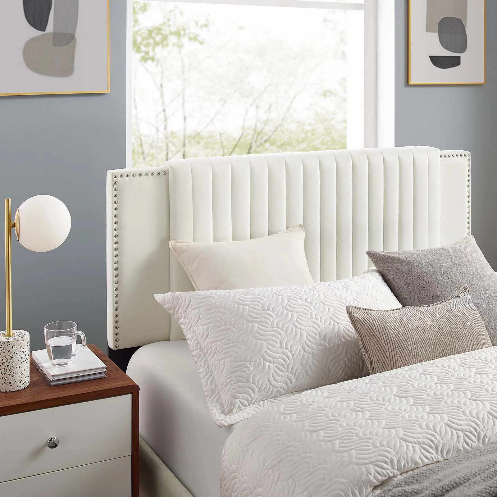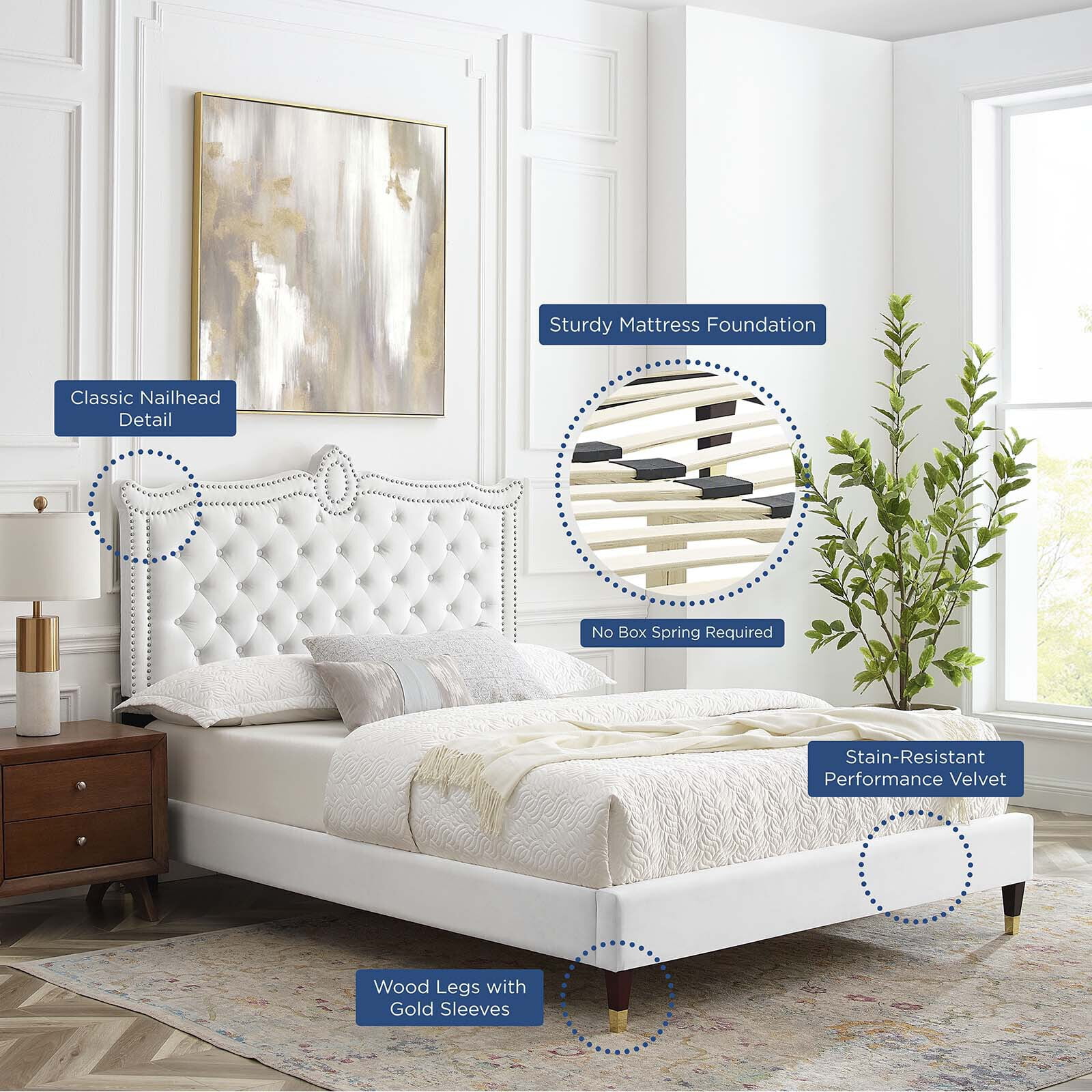 Modway Gwyneth Tufted Performance Velvet Queen Platform Bed in White