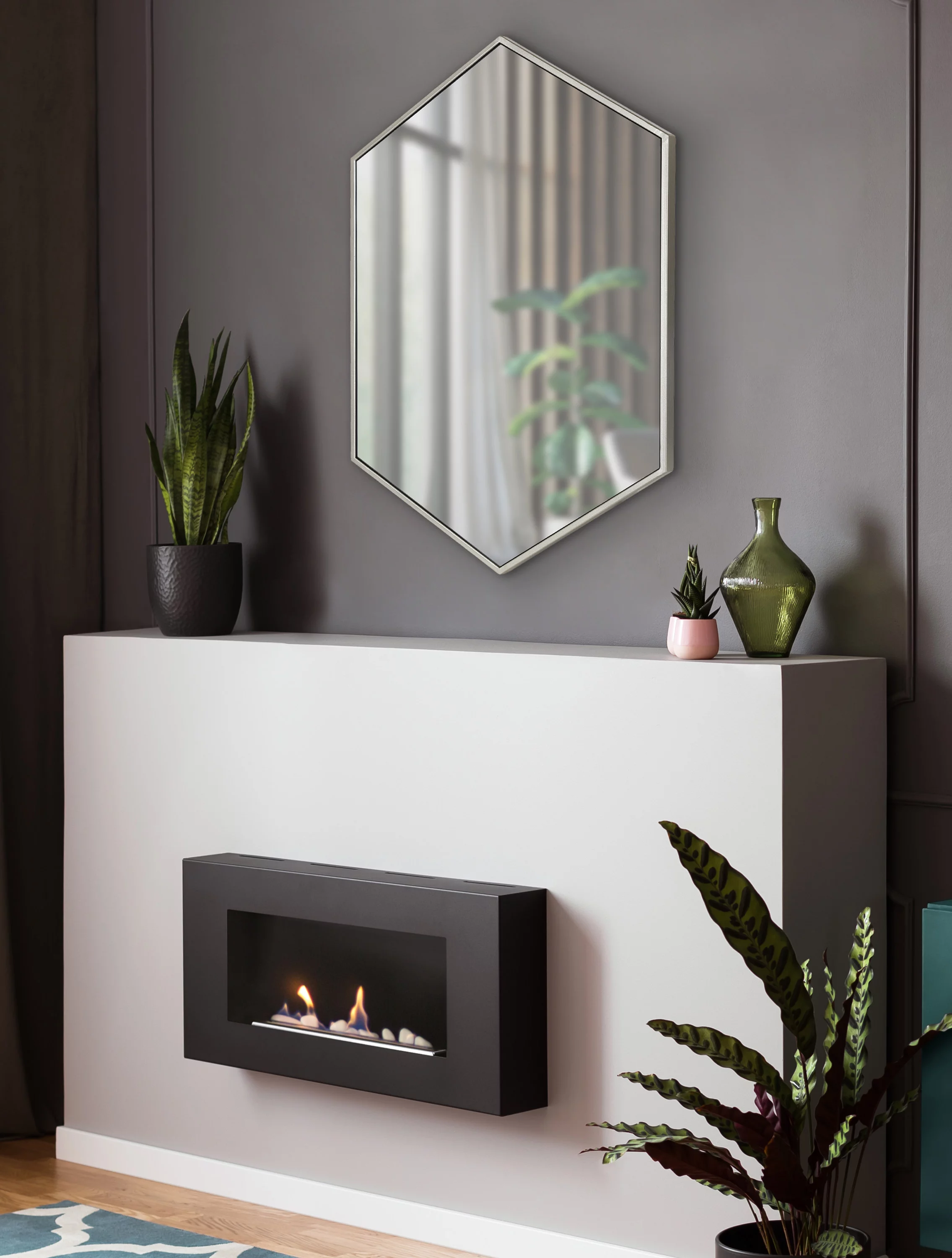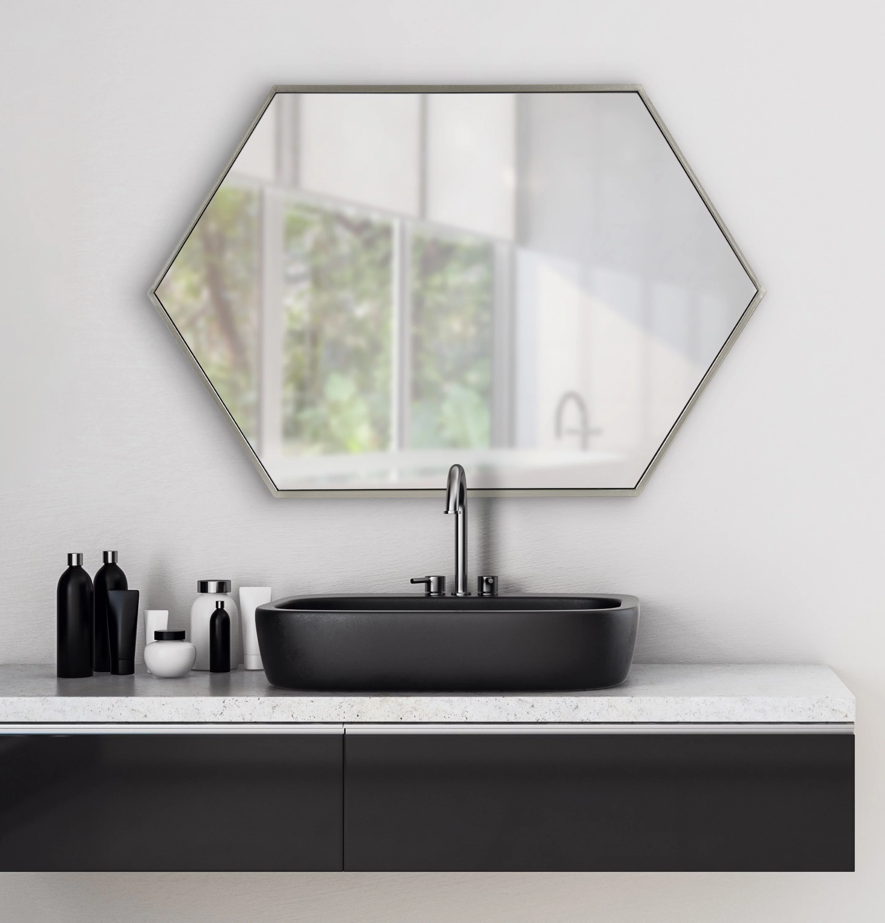 Kate and Laurel McNeer Modern Wall Mirror, 31 x 22, Silver, Geometric Hexagon Mirror for Wall