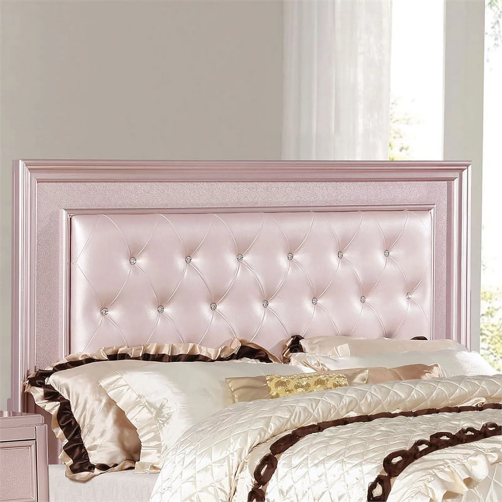 Furniture of America Appell Solid Wood Tufted Queen Panel Bed in Rose Gold