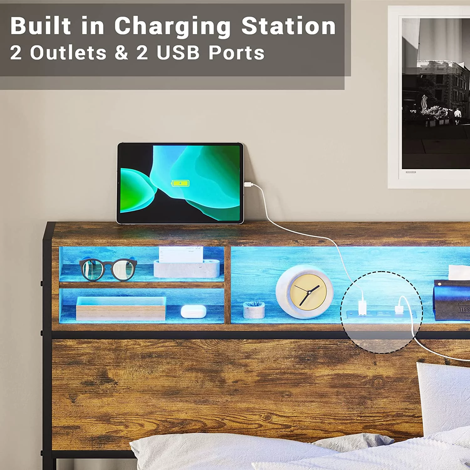 Baxton Studio Akemi Contemporary/Modern Slat Back Support Engineered Wood Headboard, Full, Ash Walnut