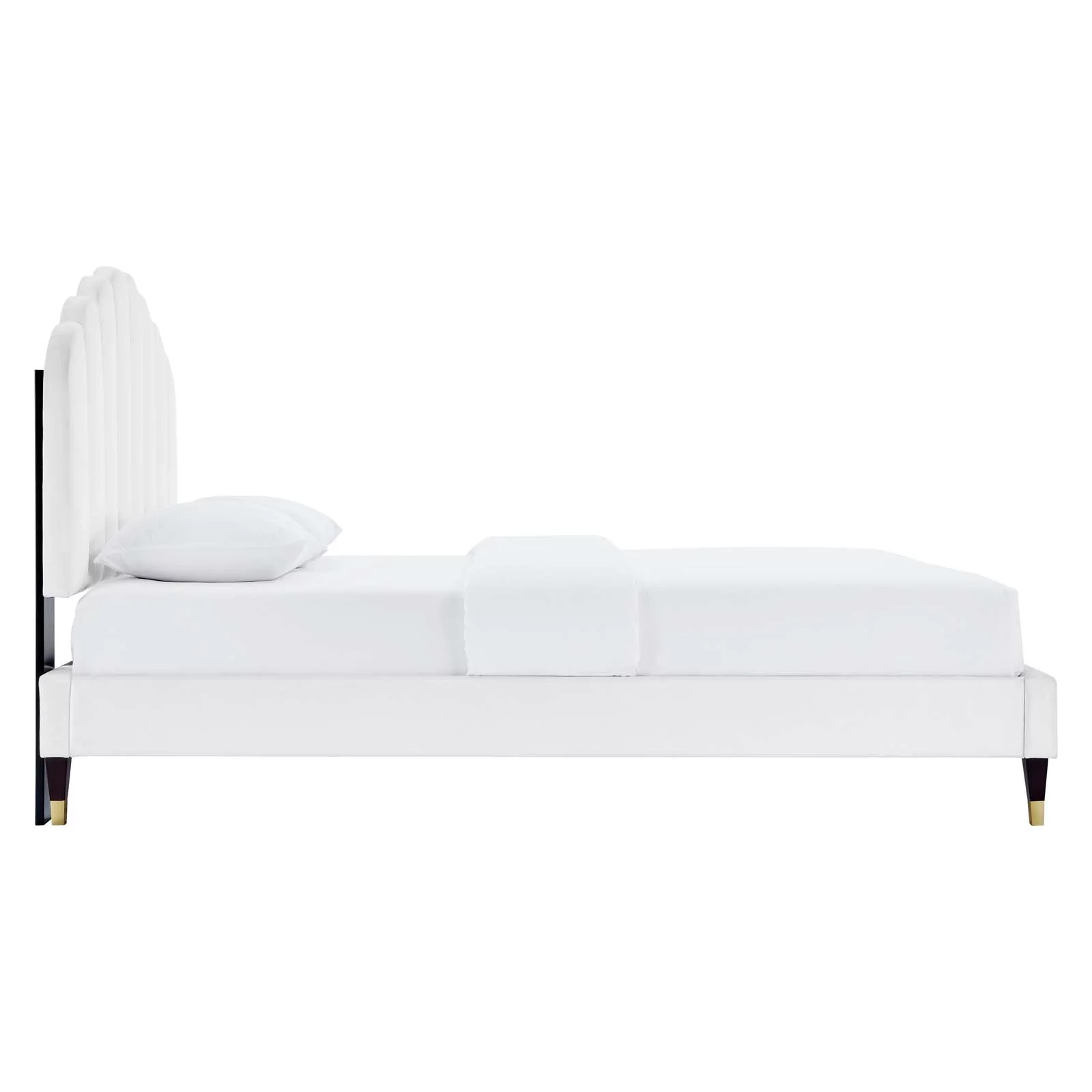 Modway Yasmine Channel Tufted Performance Velvet Queen Platform Bed in White
