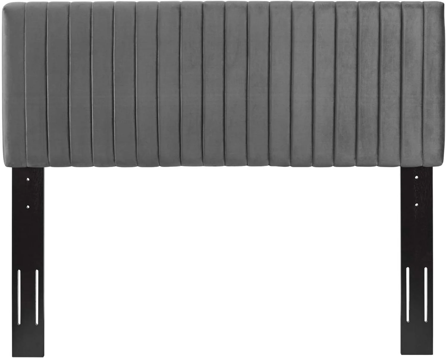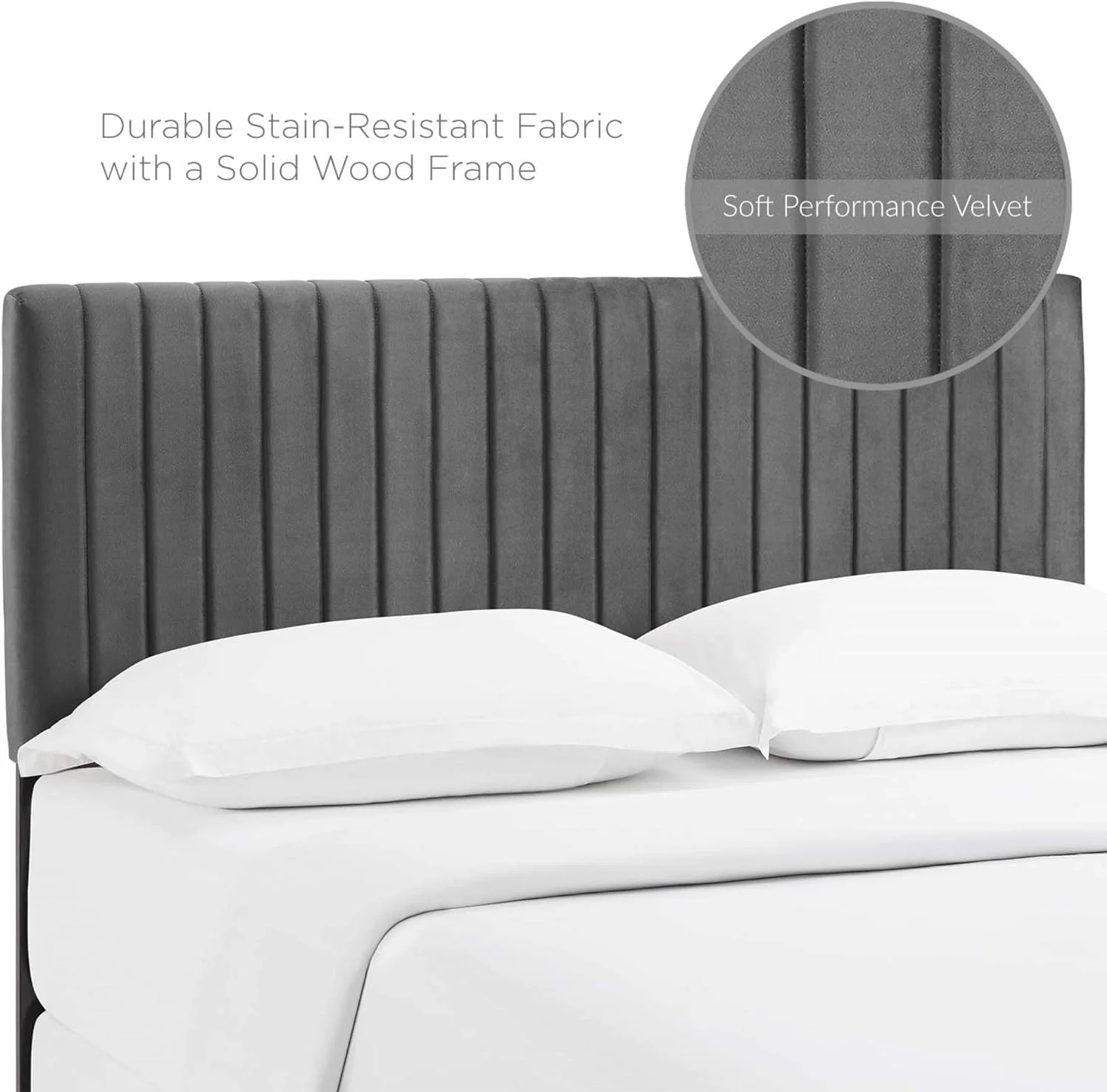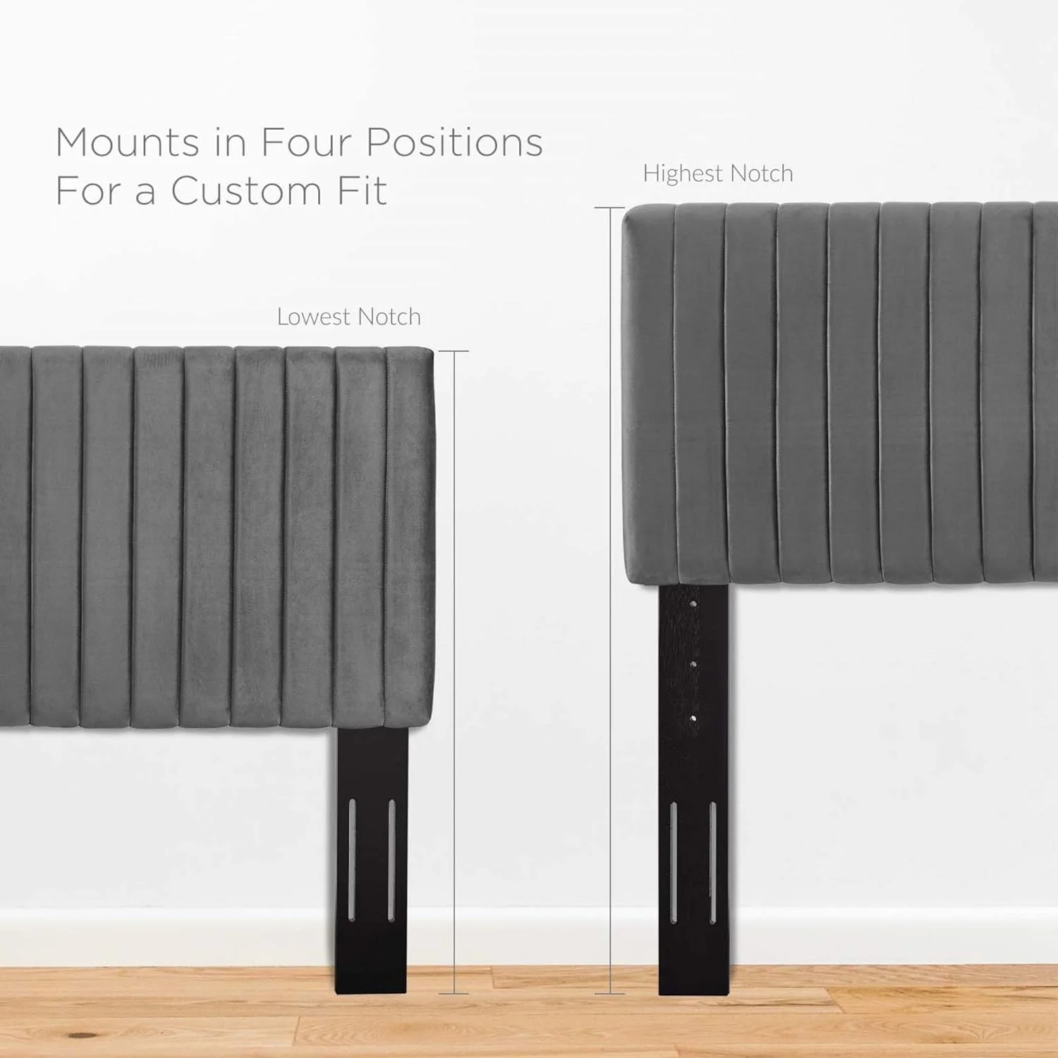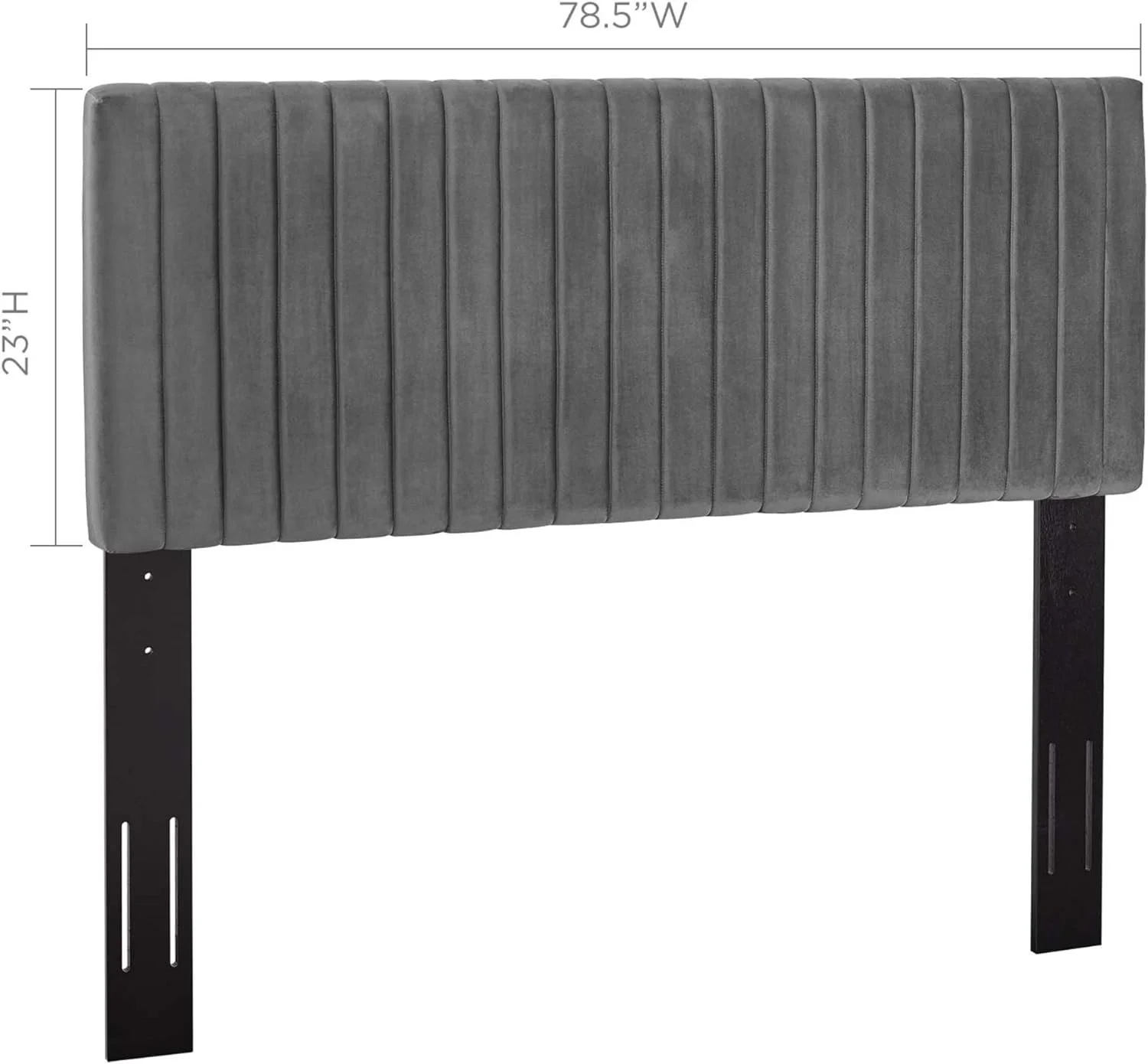 Keira King/California King Velvet Headboard - Channel Tufted Design, Stain-Resistant, Solid Wood Frame - Gray