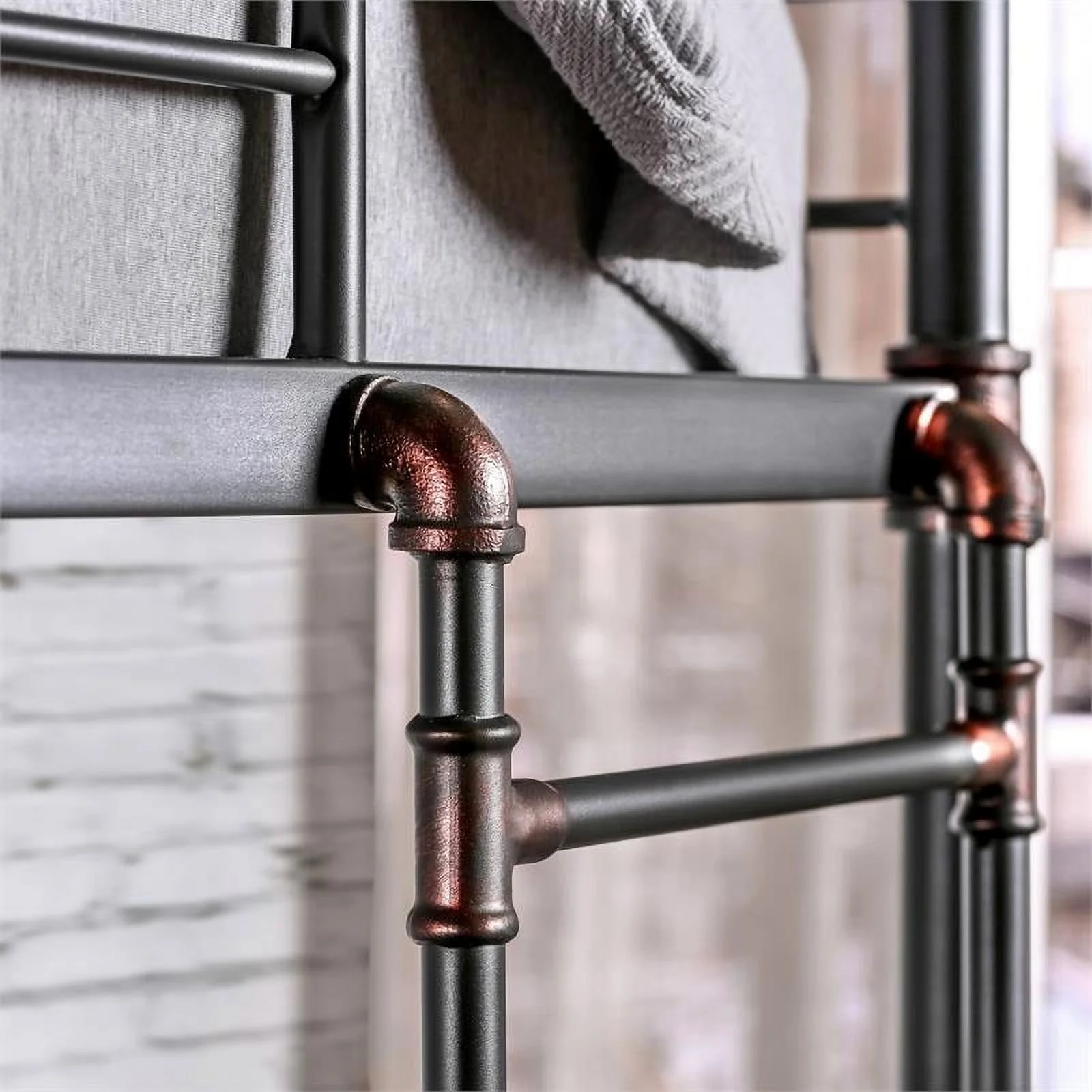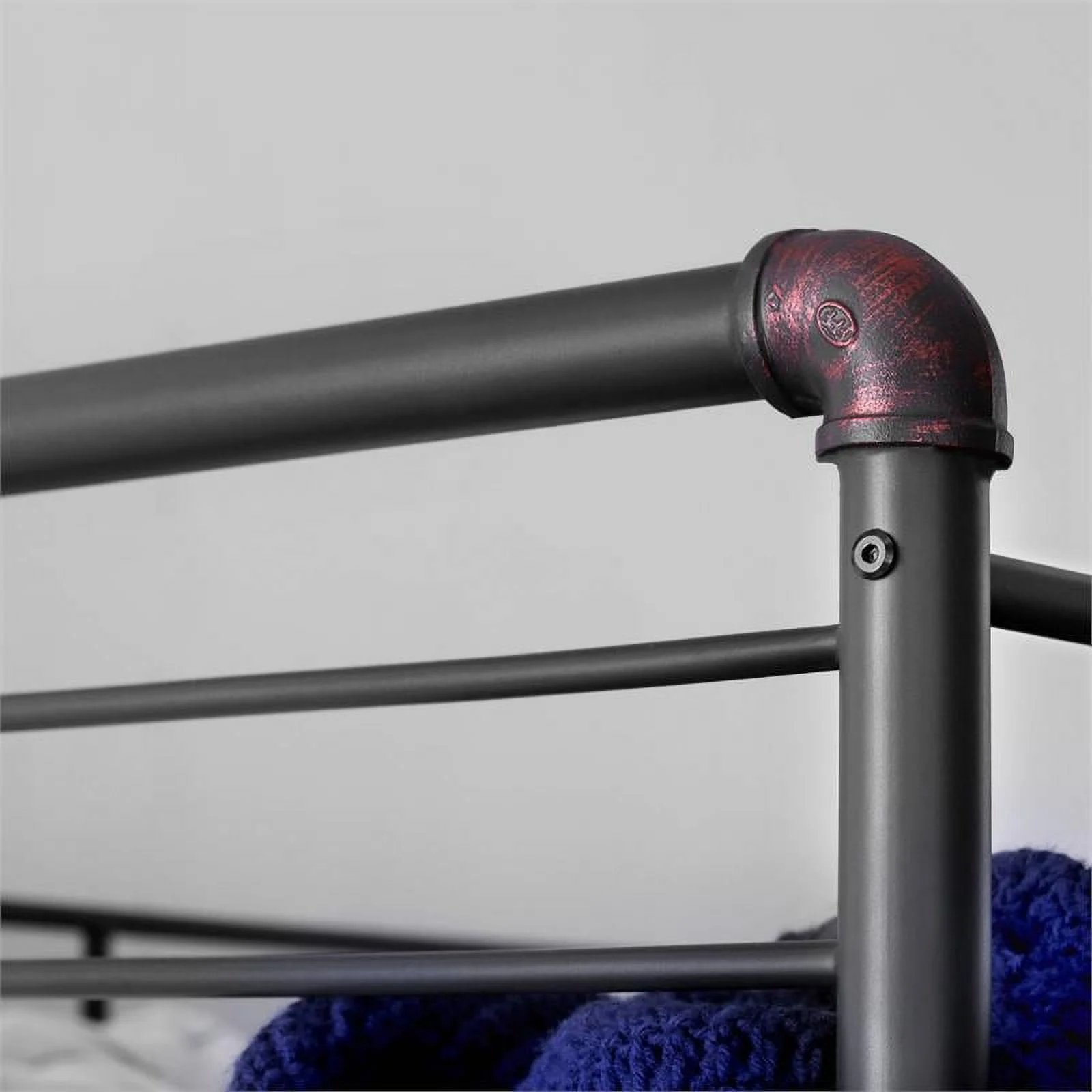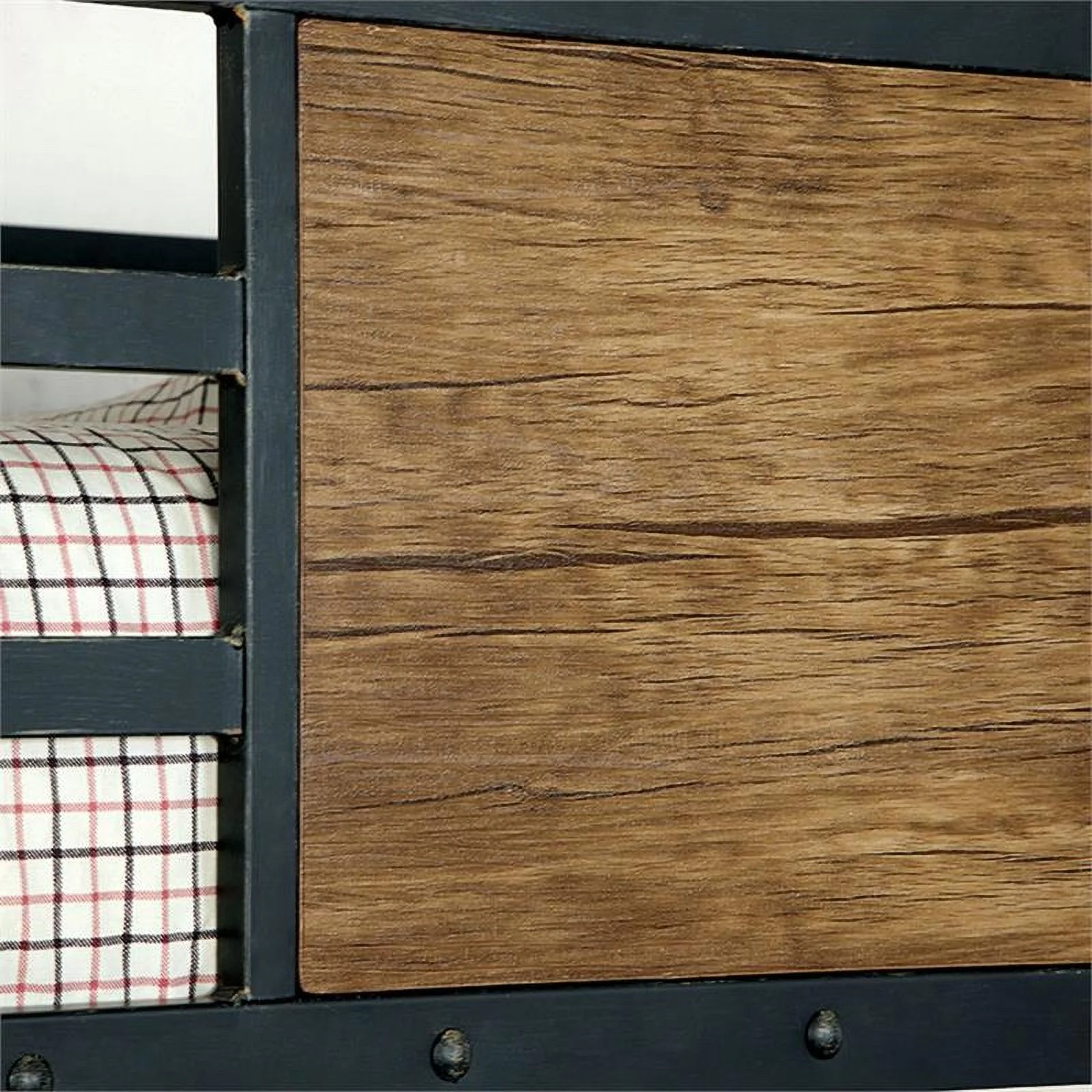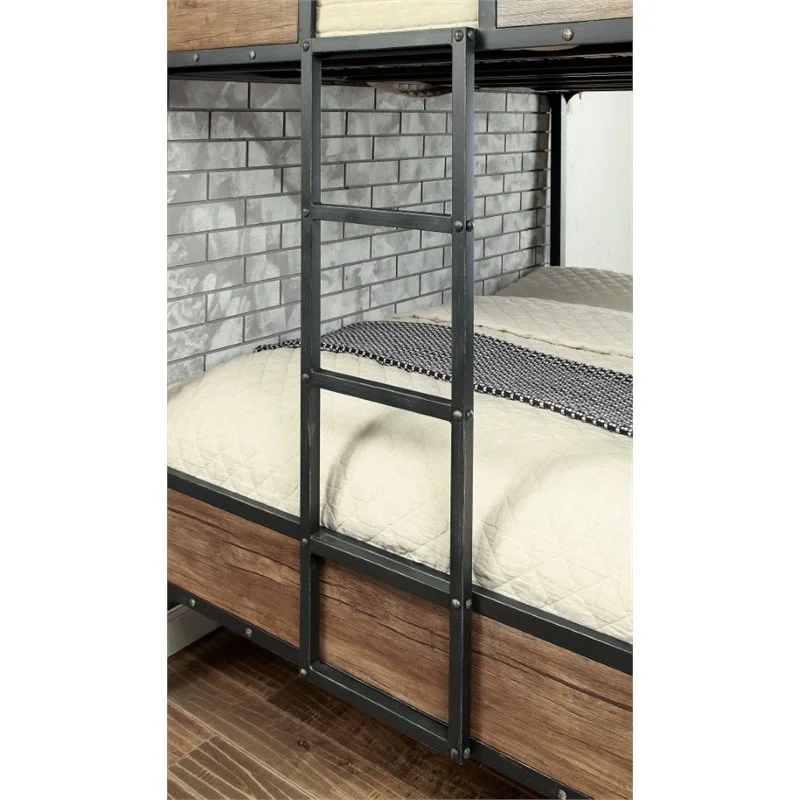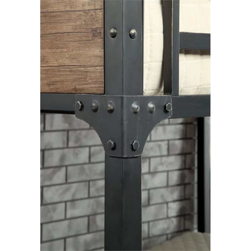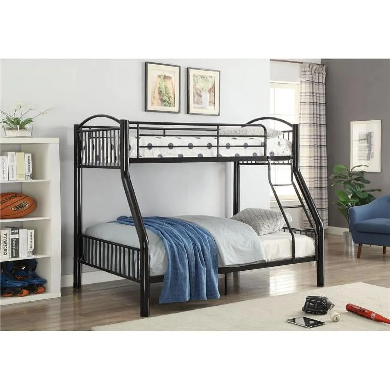 Bowery Hill Modern Steel Metal/Wood Twin over Full Bunk Bed in Black