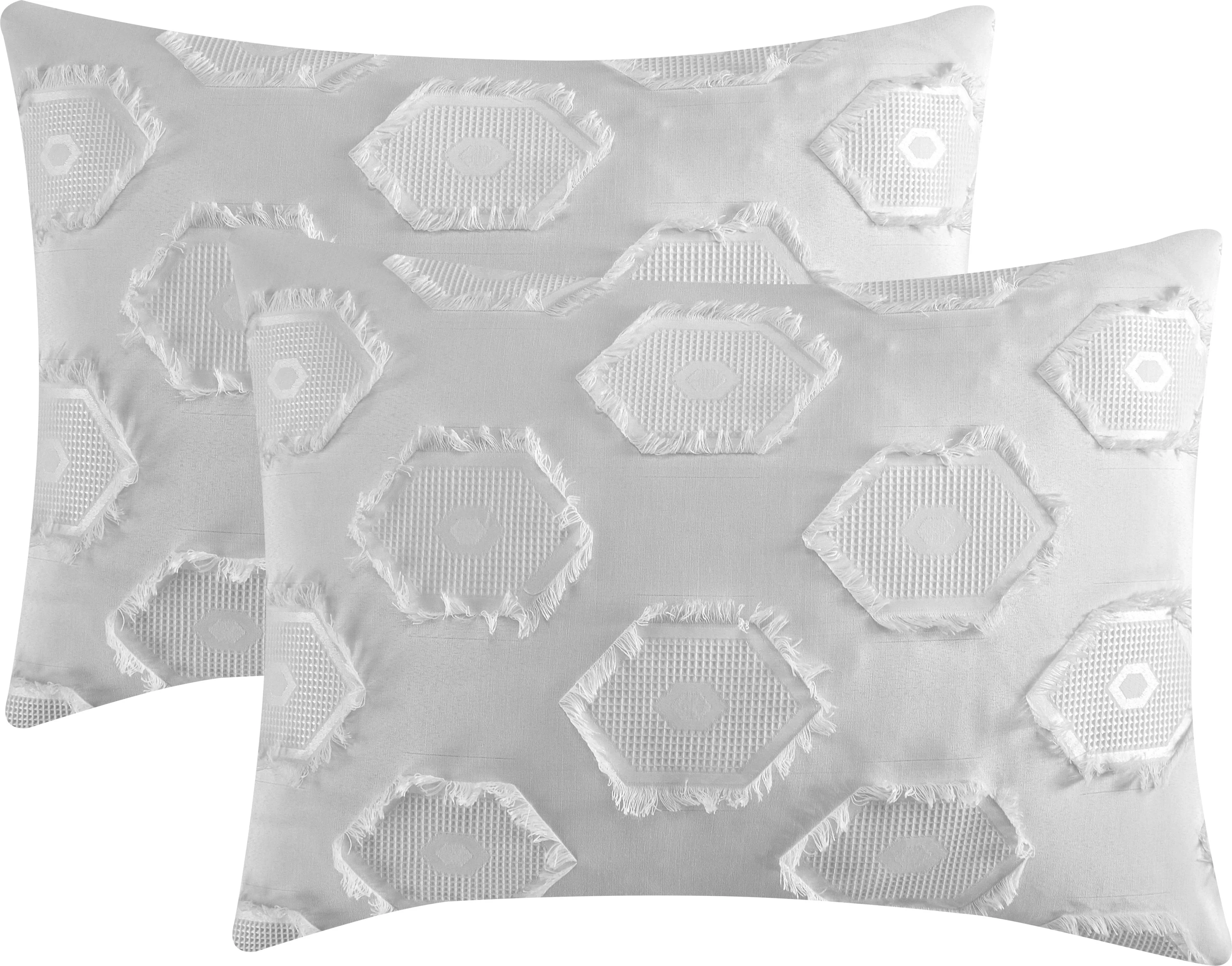 Lanco Honeycomb Shabby Chic 7 Piece Comforter Set White, Bed Size Queen, Luxury