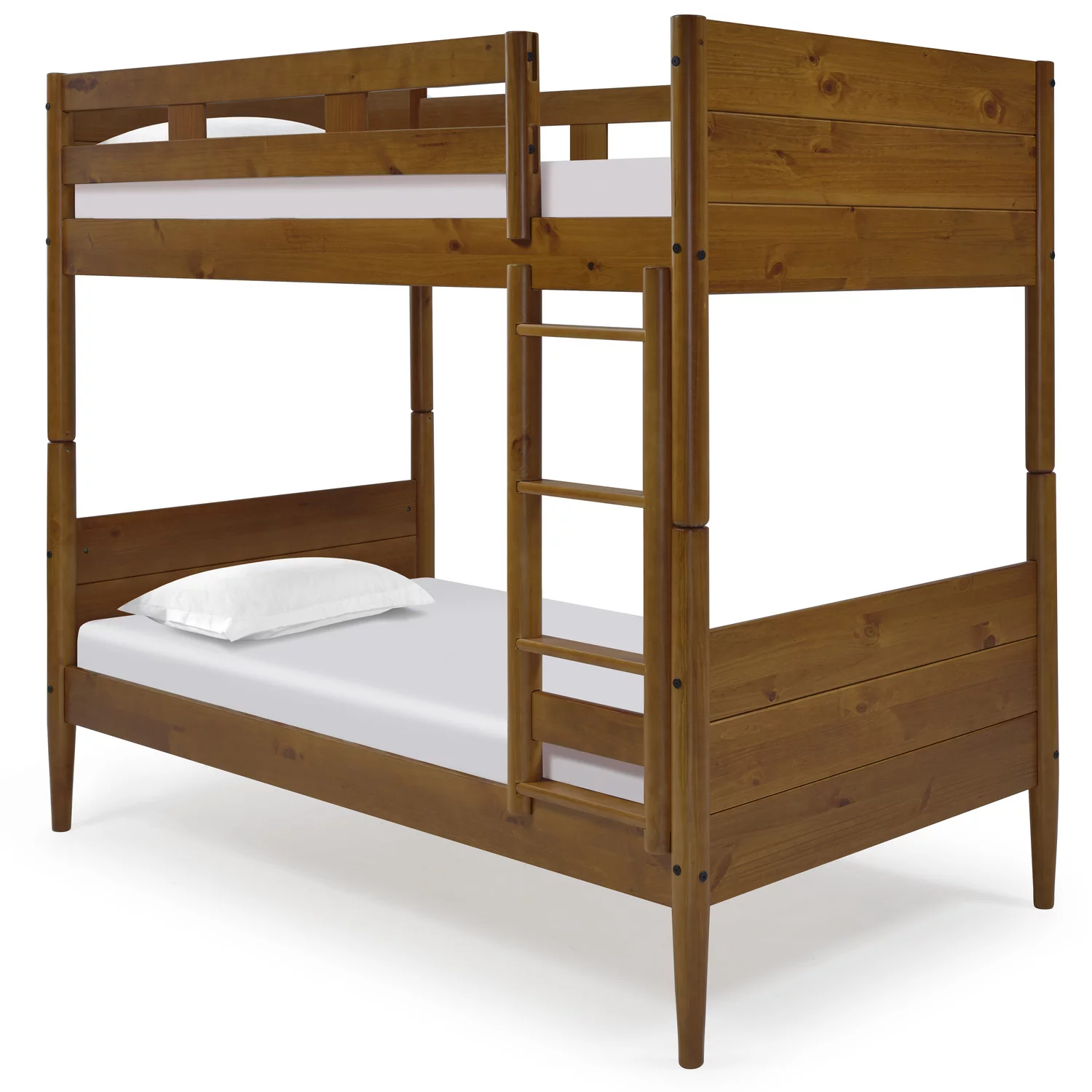 Camaflexi Mid Century Modern Bunk Bed Twin over Twin - Castanho Finish