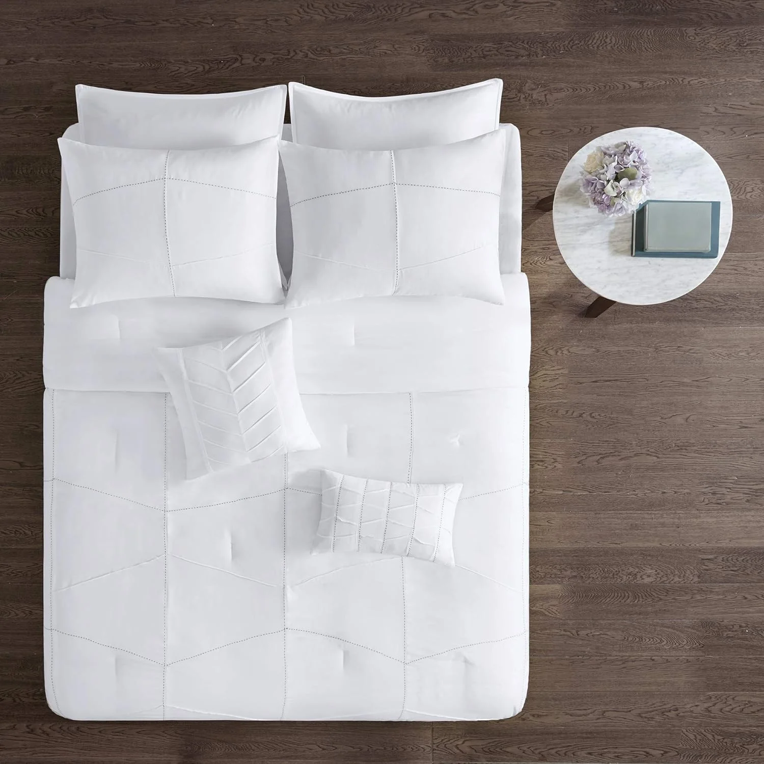 Penelope Pleated & Ruffled Bed in a Bag Comforter Set with Sheets - White - Queen - 10 Piece