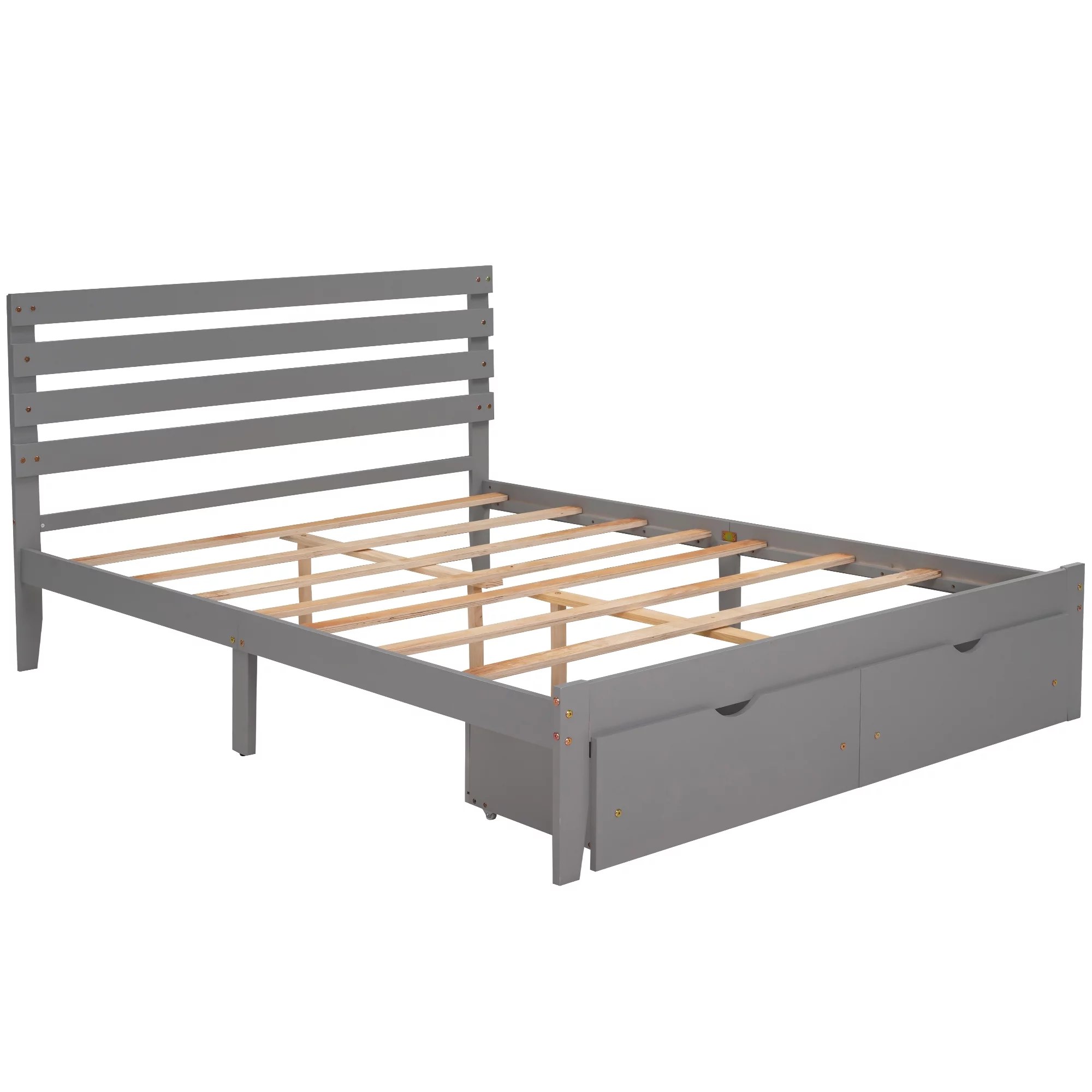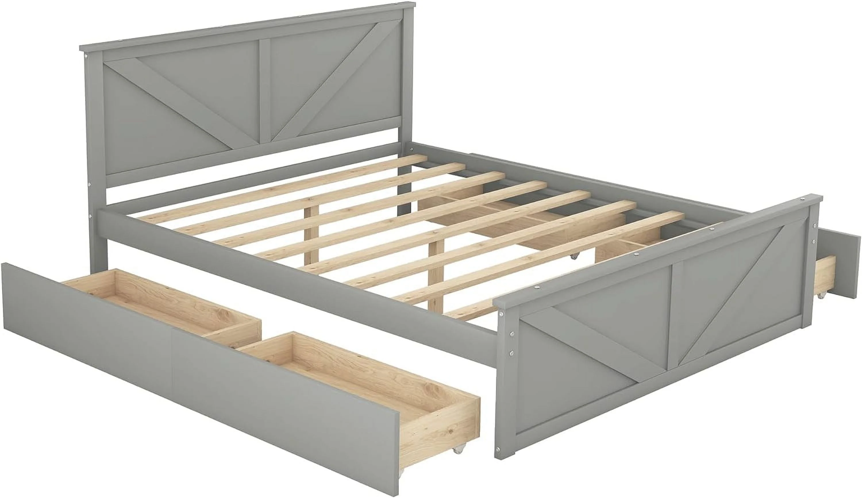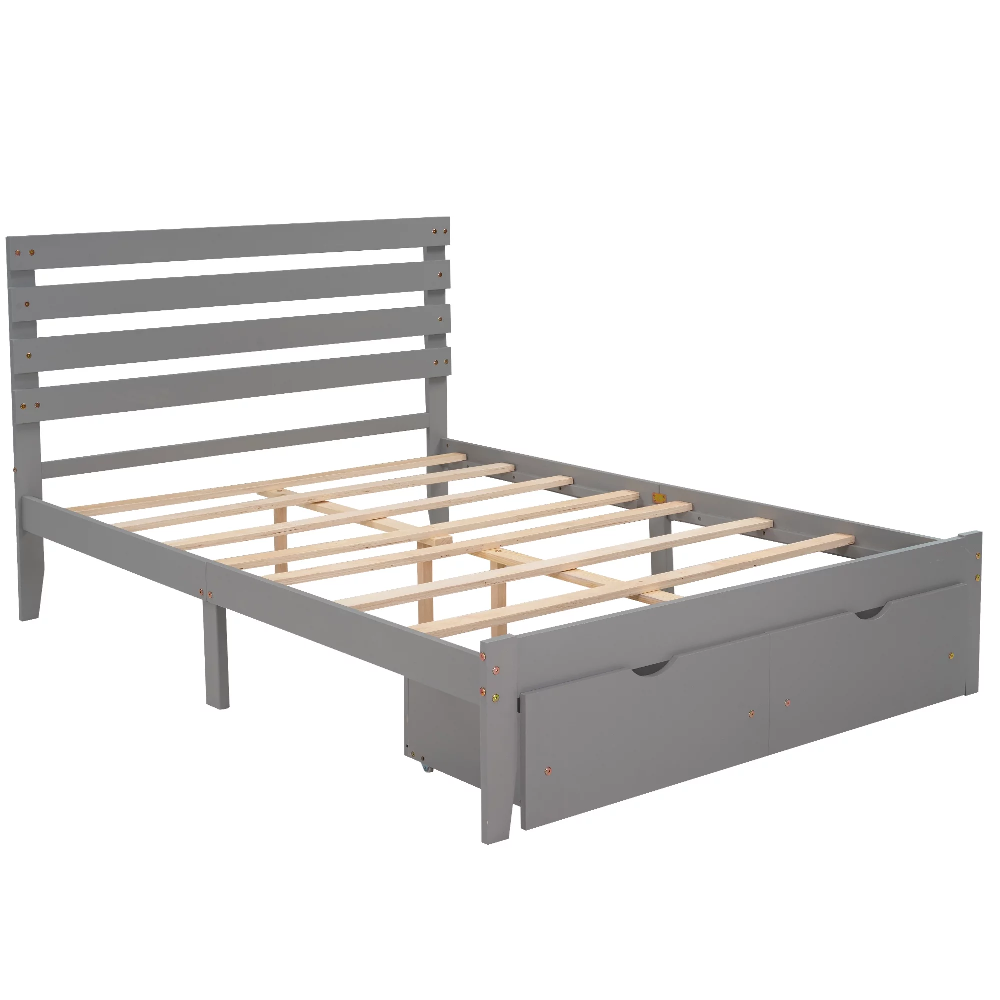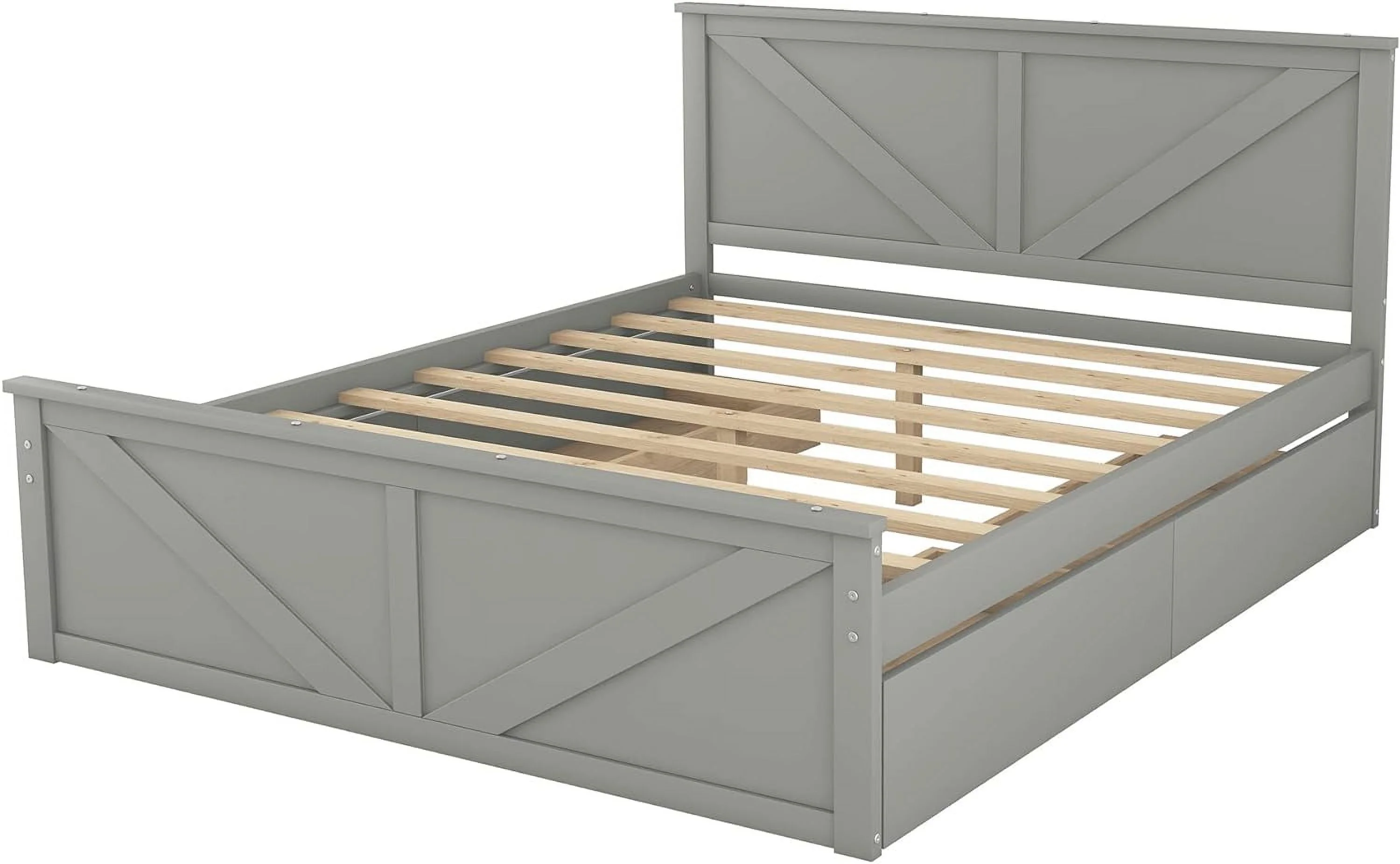 Aiho Full Size Metal Bed Frame with Drawers and Headboard for Bedroom Clearance - Gray