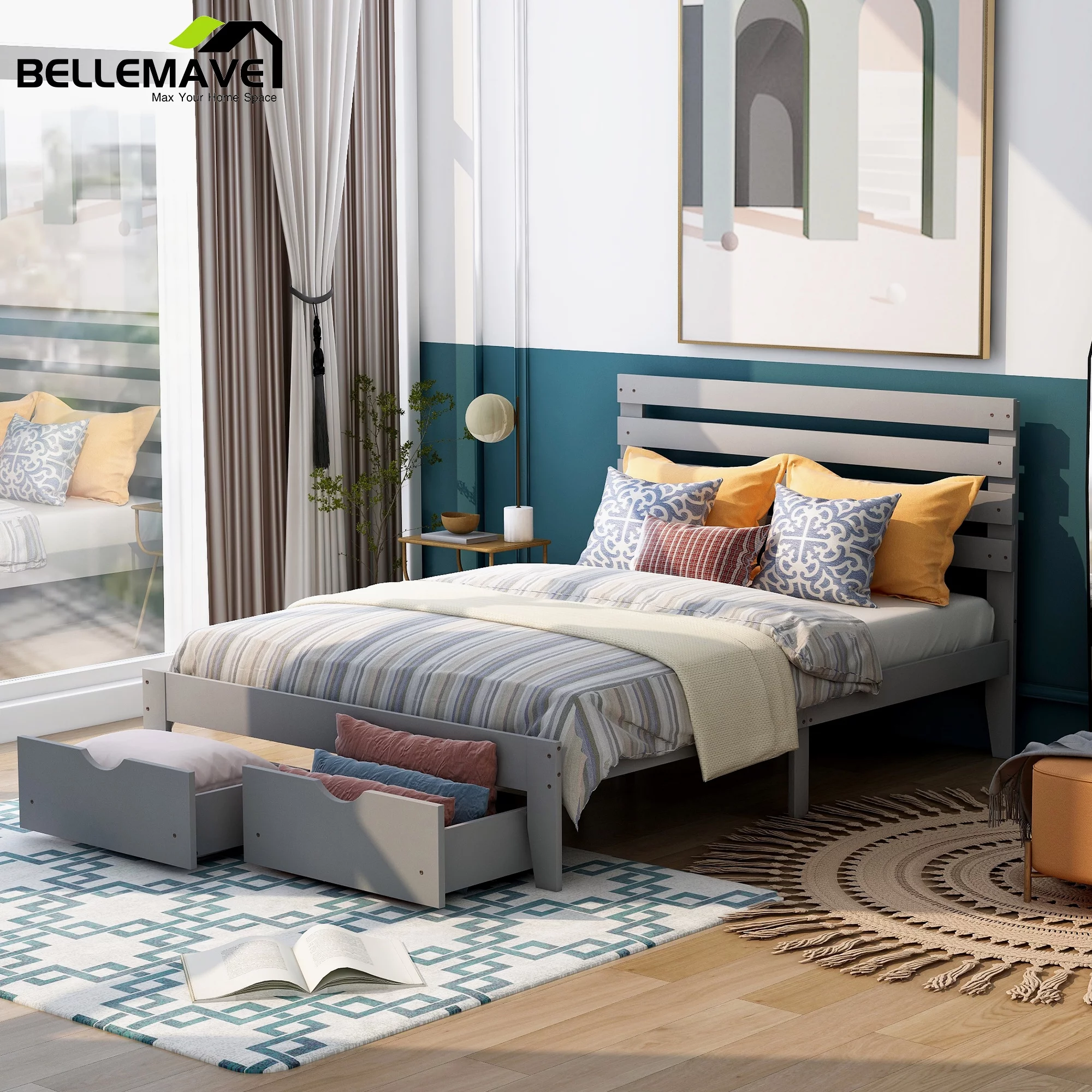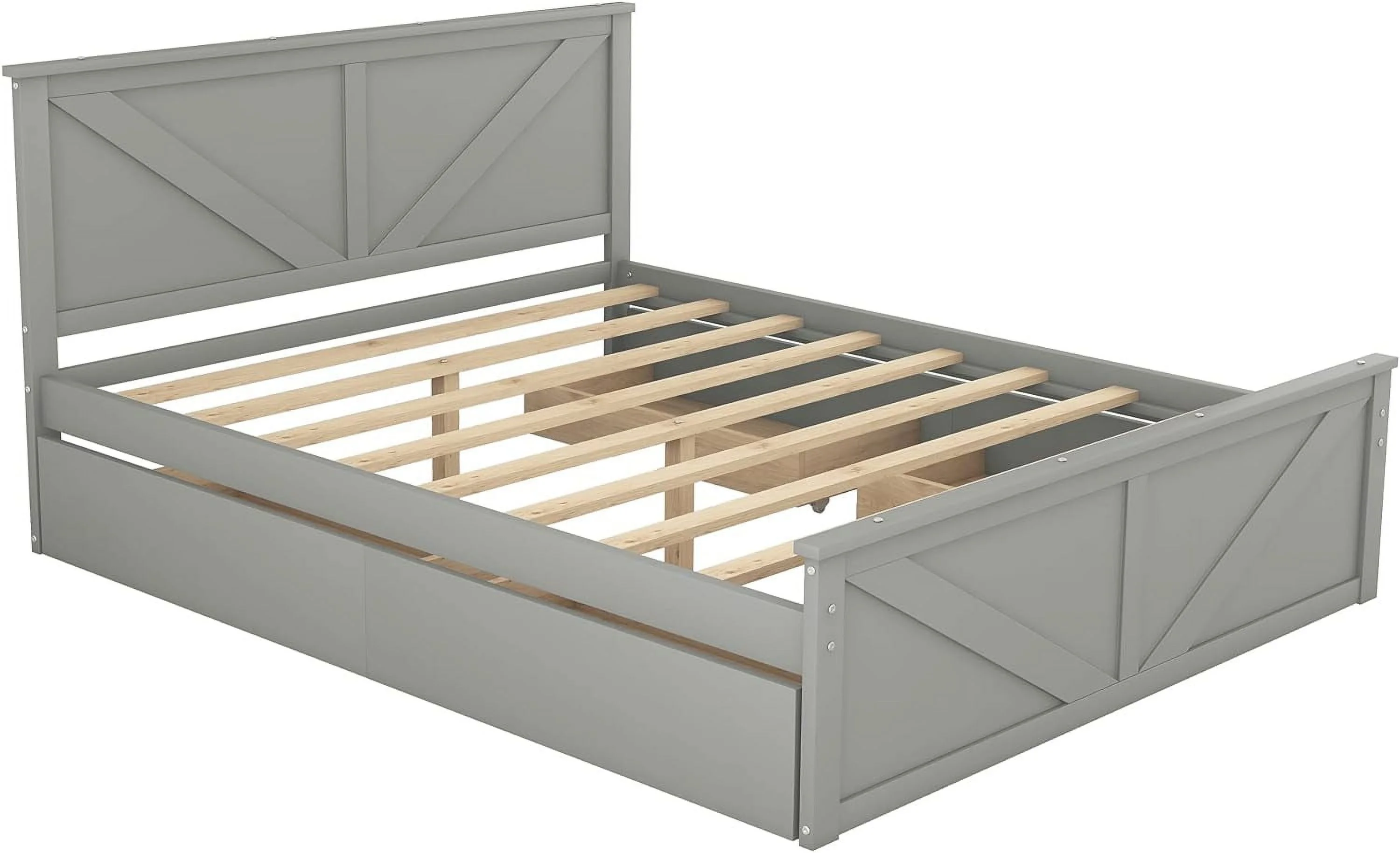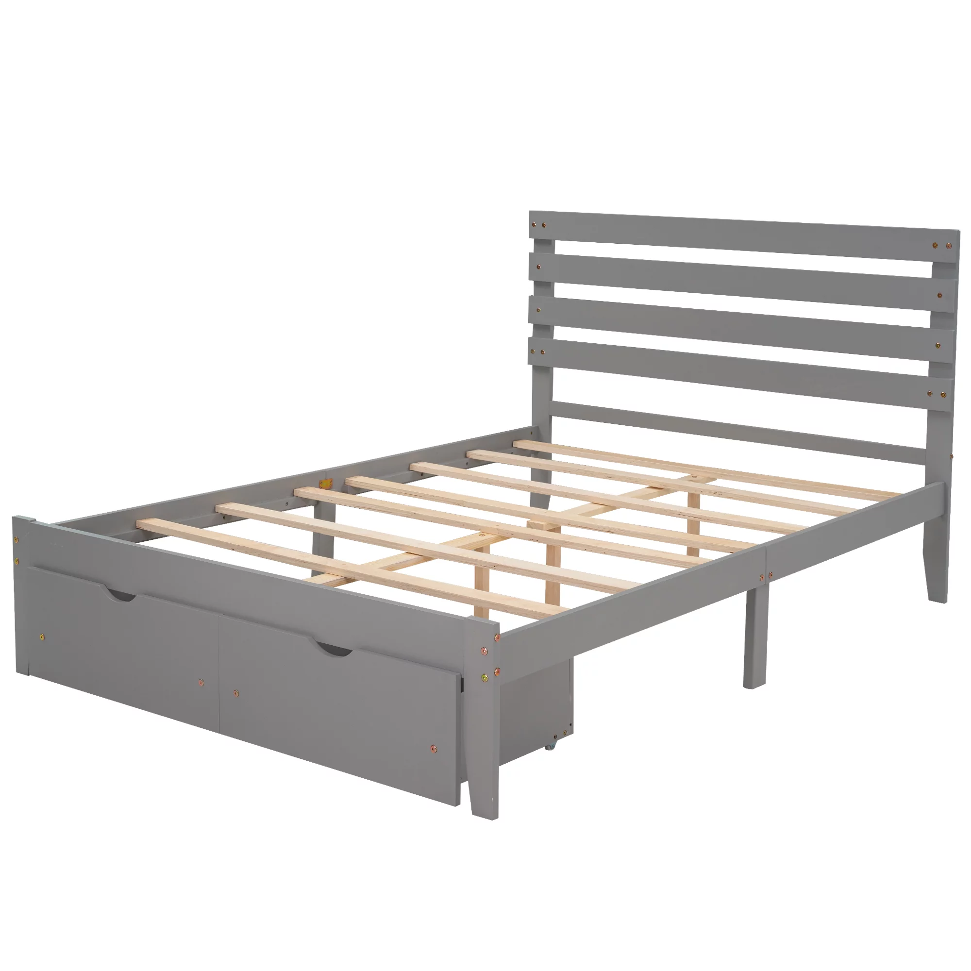 Aiho Full Size Metal Bed Frame with Drawers and Headboard for Bedroom Clearance - Gray