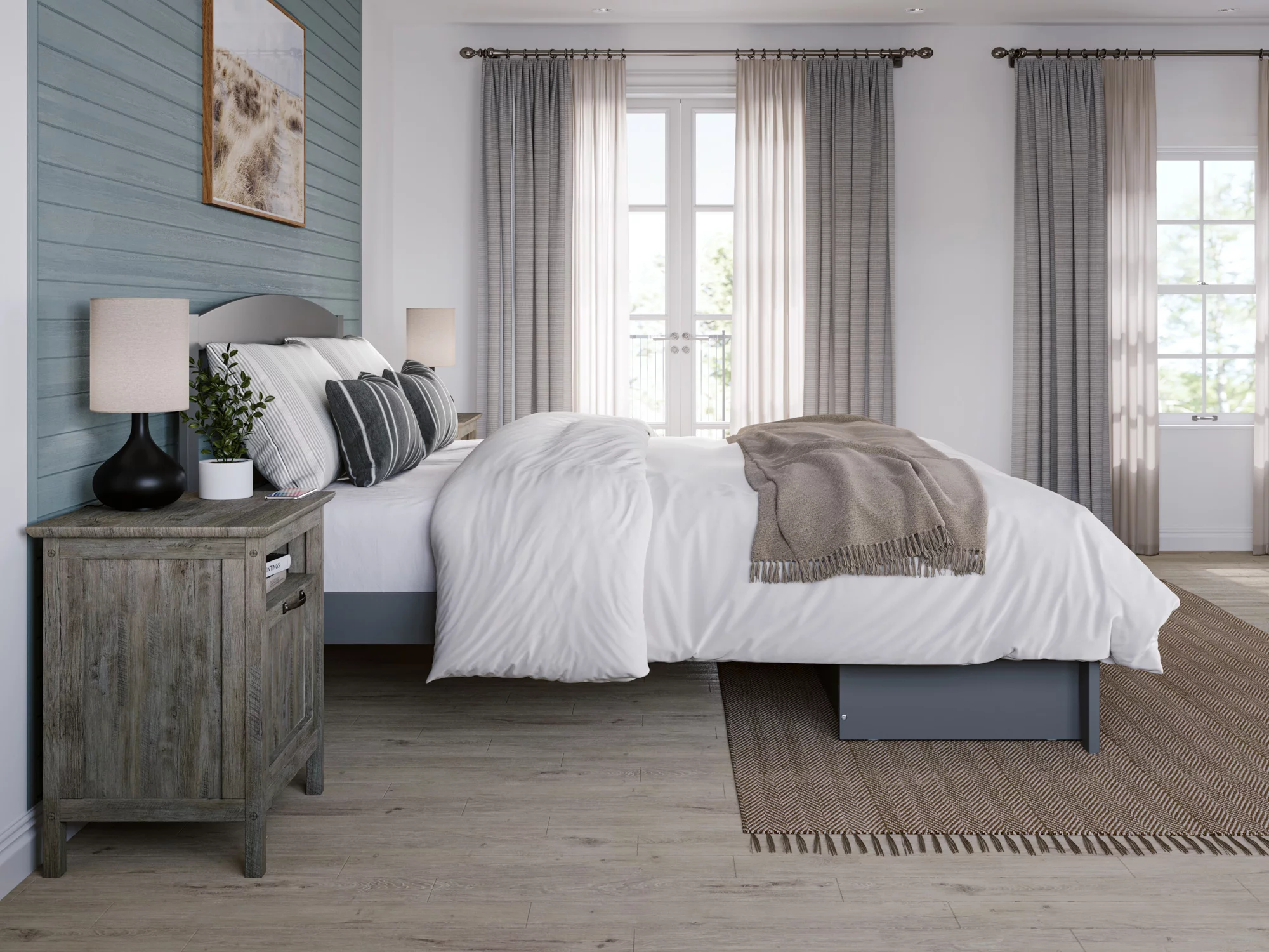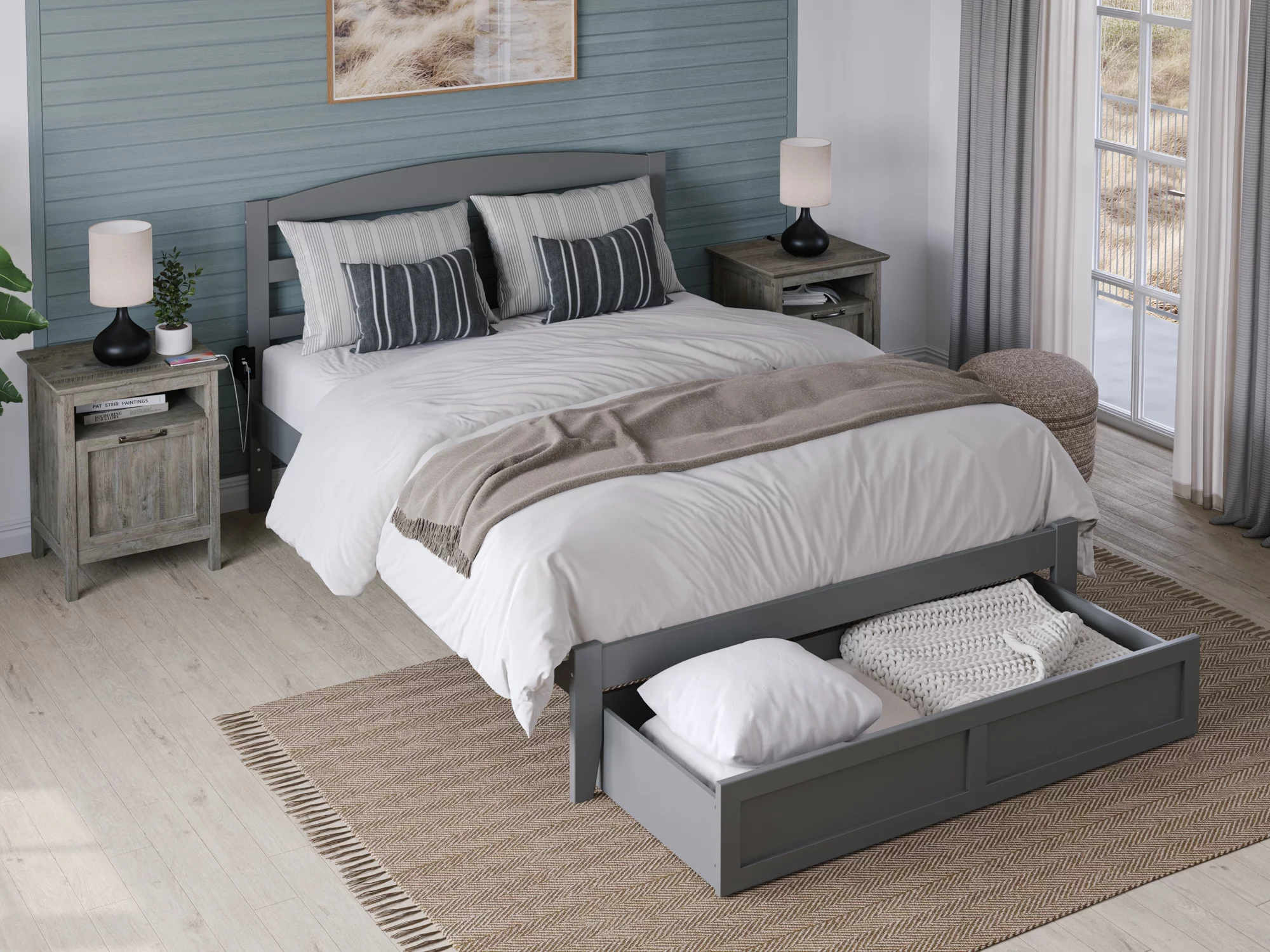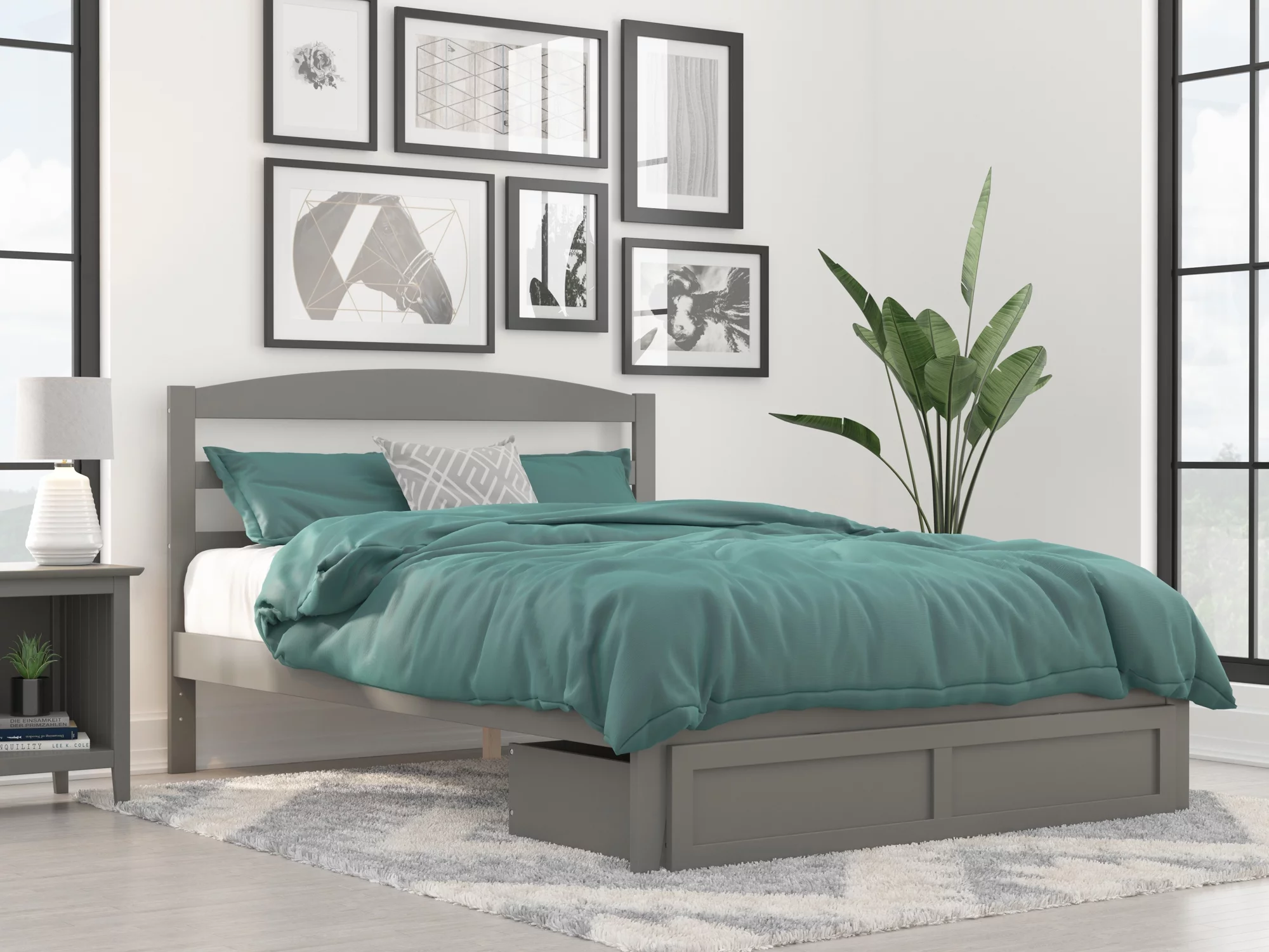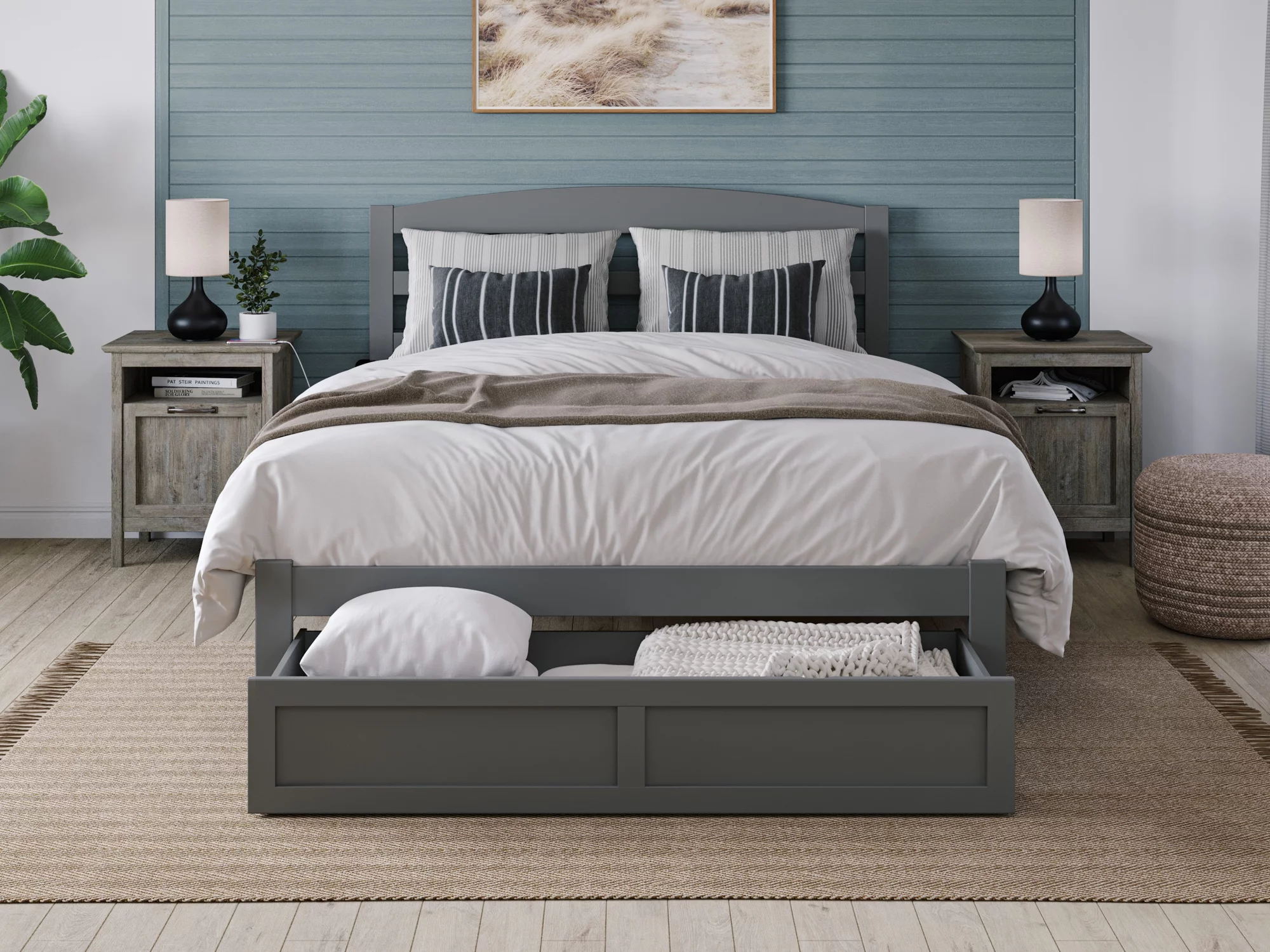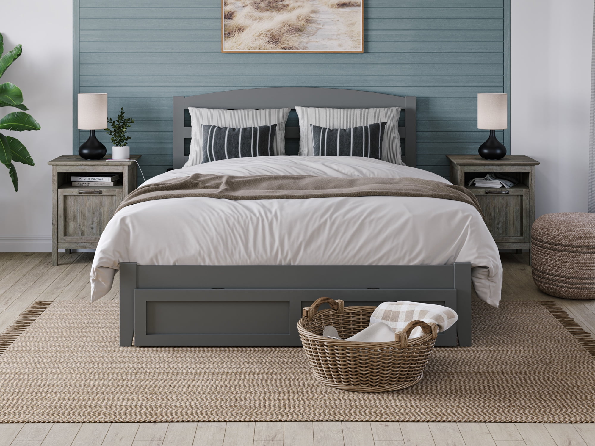 AFI Warren 14" Queen Wood Platform Bed Frame with Foot Drawer Storage, Grey