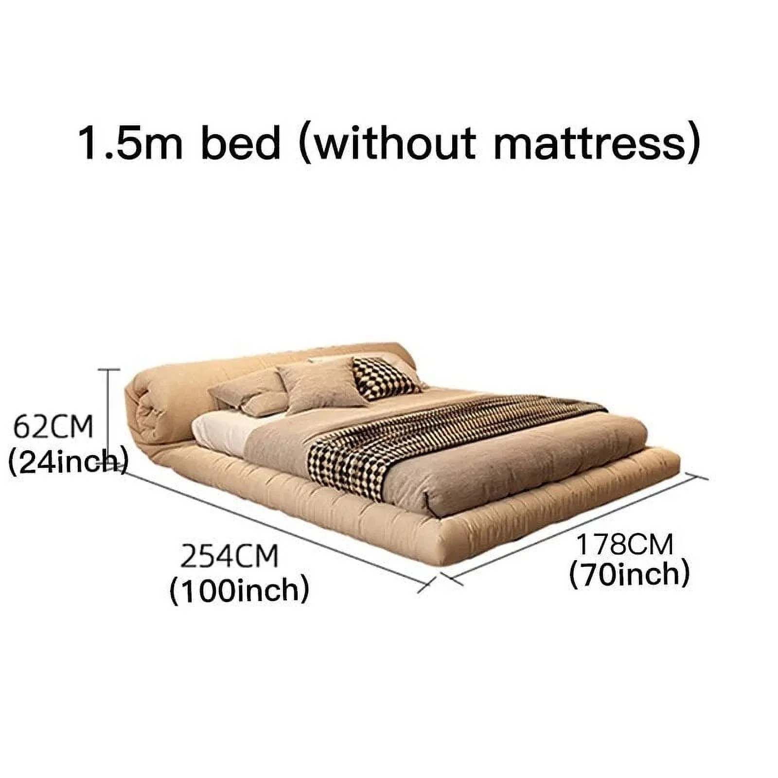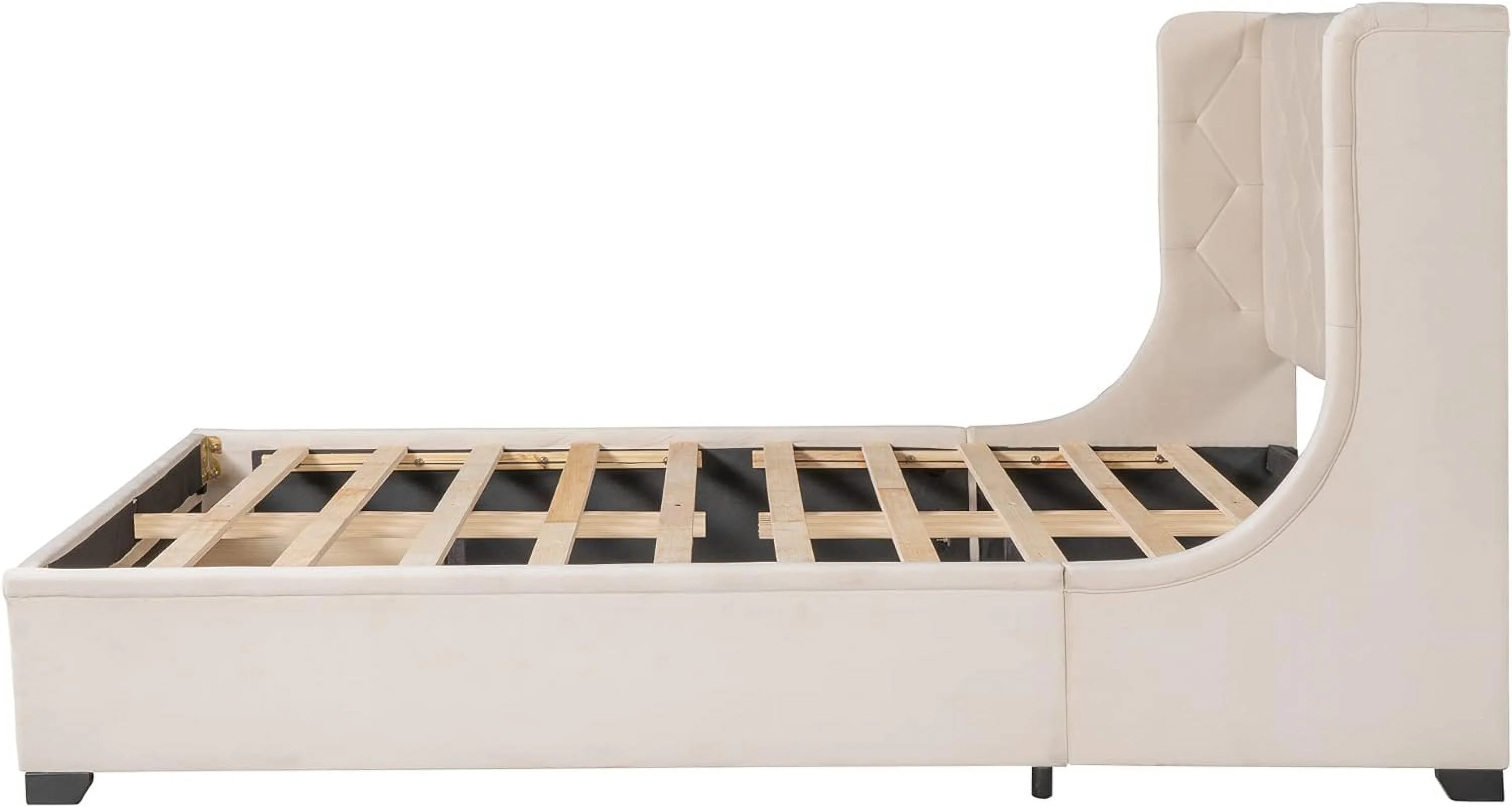 Queen Size Velvet Upholstered Storage Bed, Wood Platform Bed Frame With Wingback Headboard And A Big Drawer - Beige
