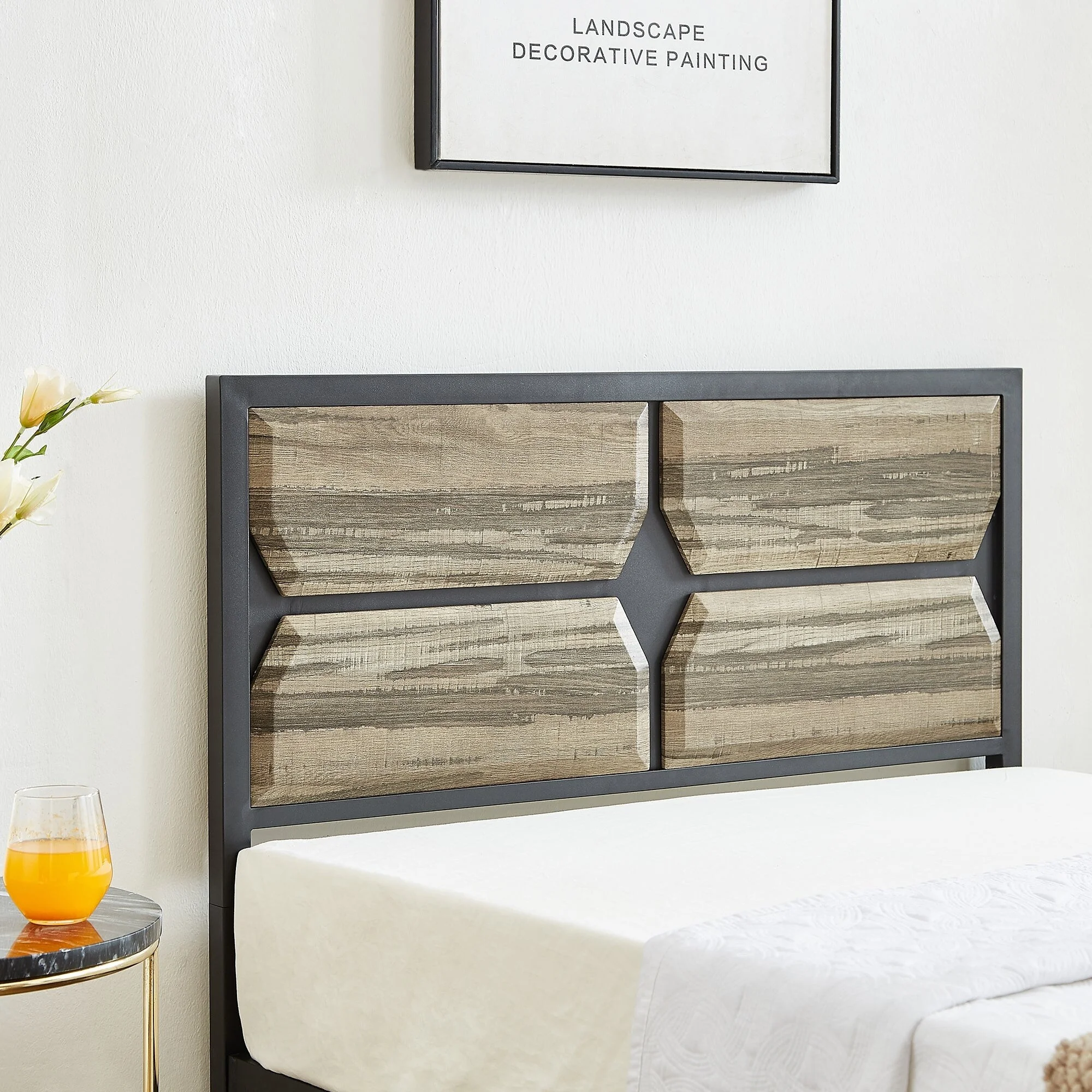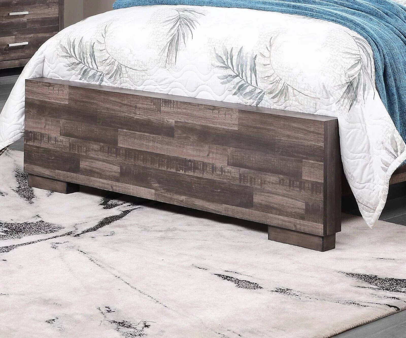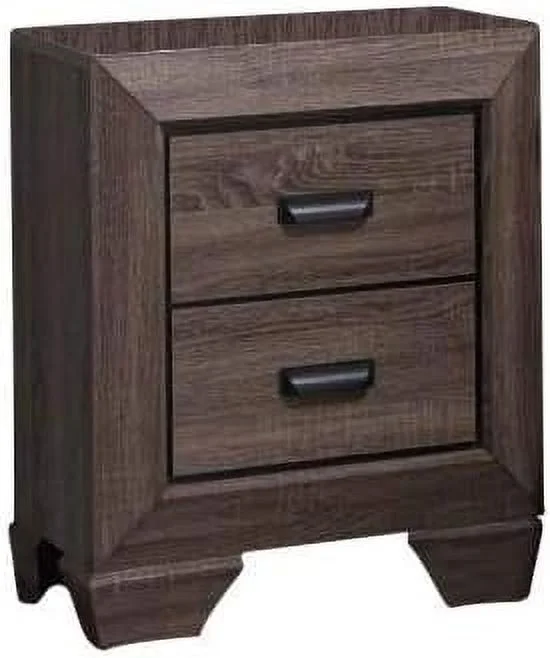 Contemporary 3pc Set Bedroom Furniture Queen Size Panel Bed 2x Nightstands Plank Pattern