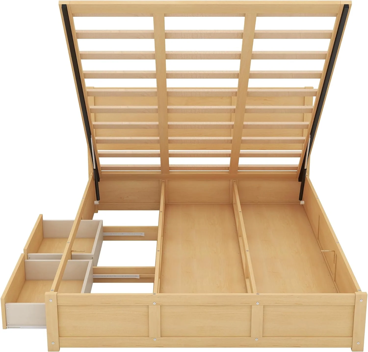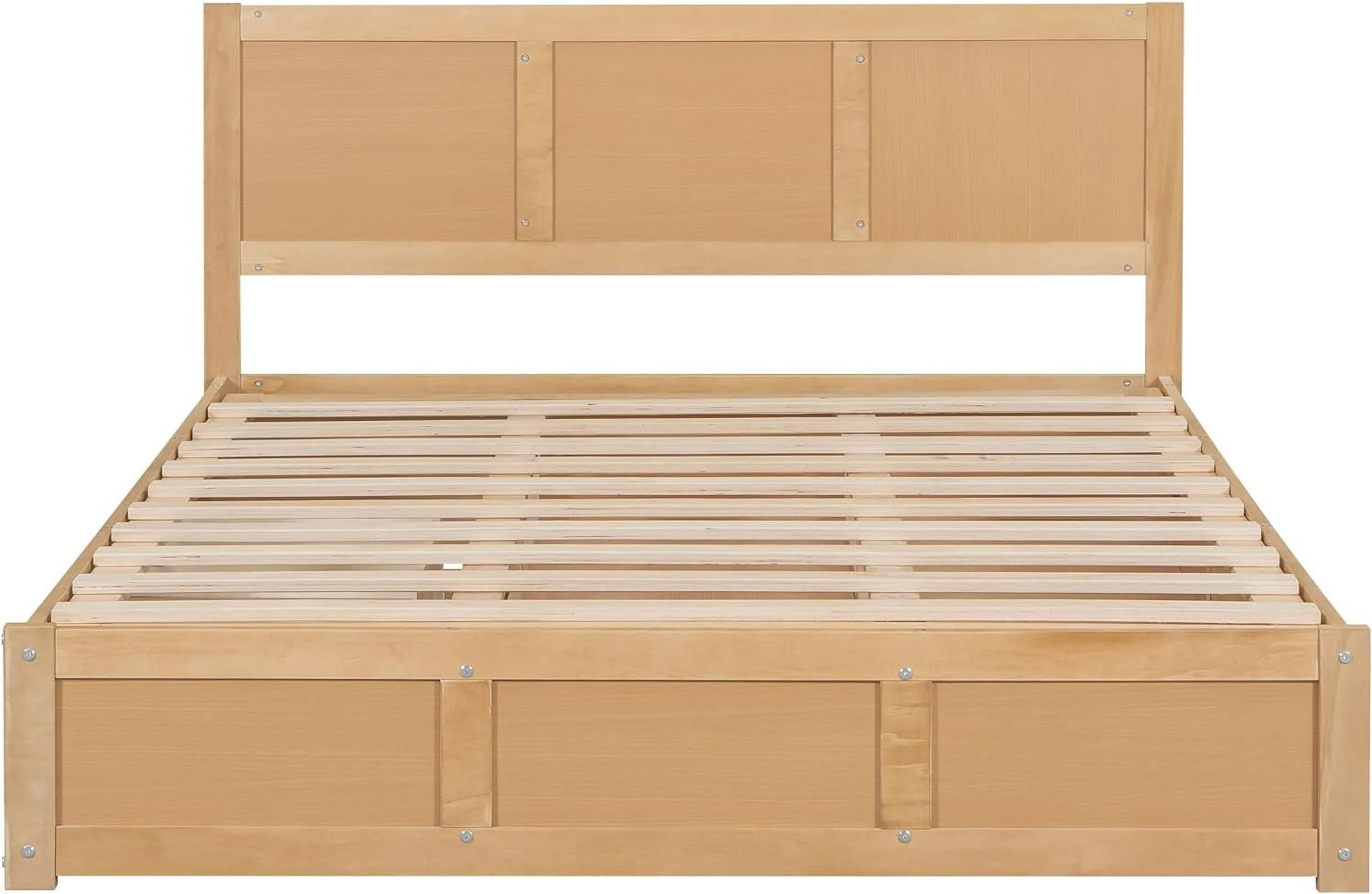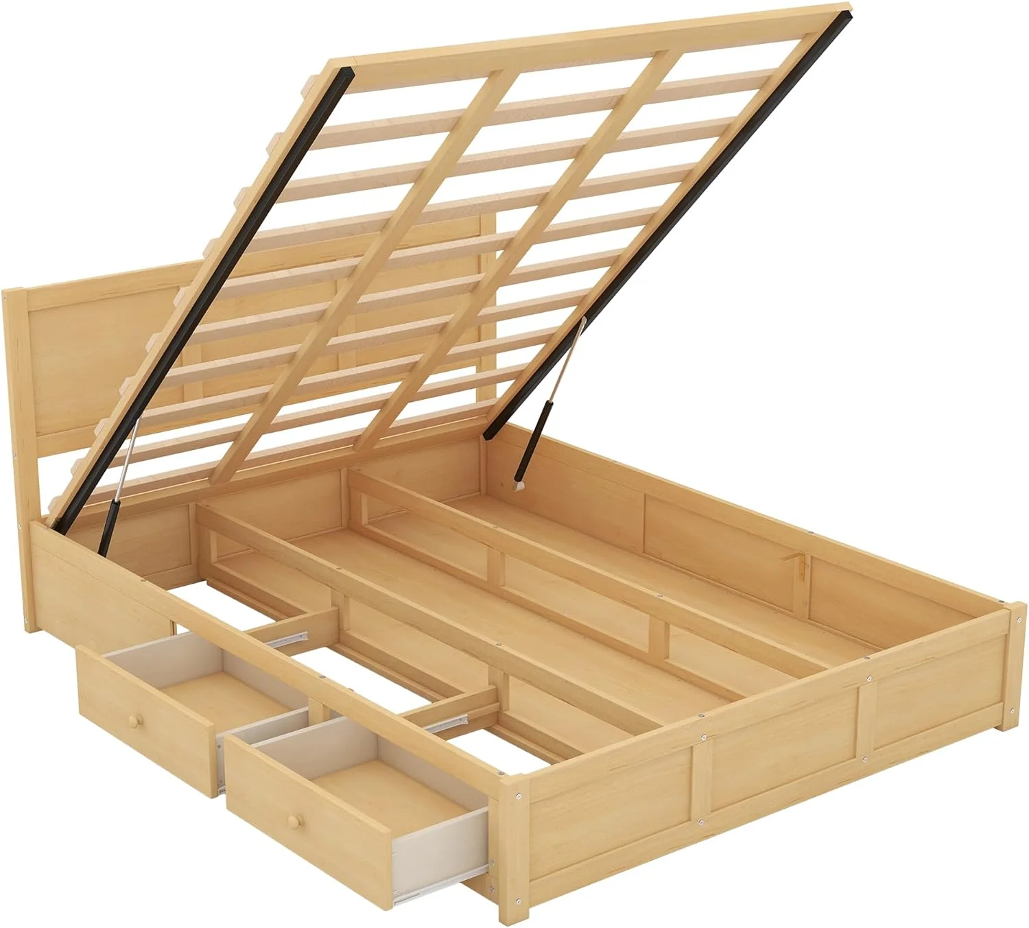 Queen Size Platform Bed, Wood Queen Platform Bed Frame With Underneath Storage And 2 Drawers, No Box Spring Needed, Natural