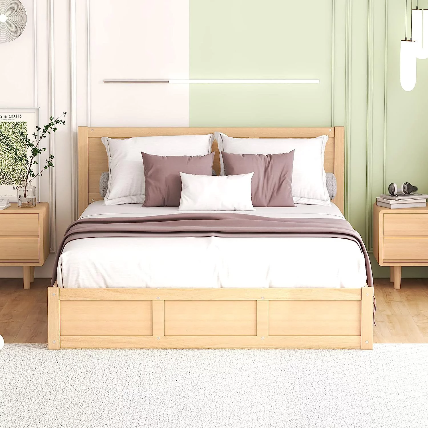 Javlergo 3-Piece Bedroom Sets Wooden Platform Bed Frame with 2 Nightstands, Bedroom Furniture, Slate Queen - 3 Piece