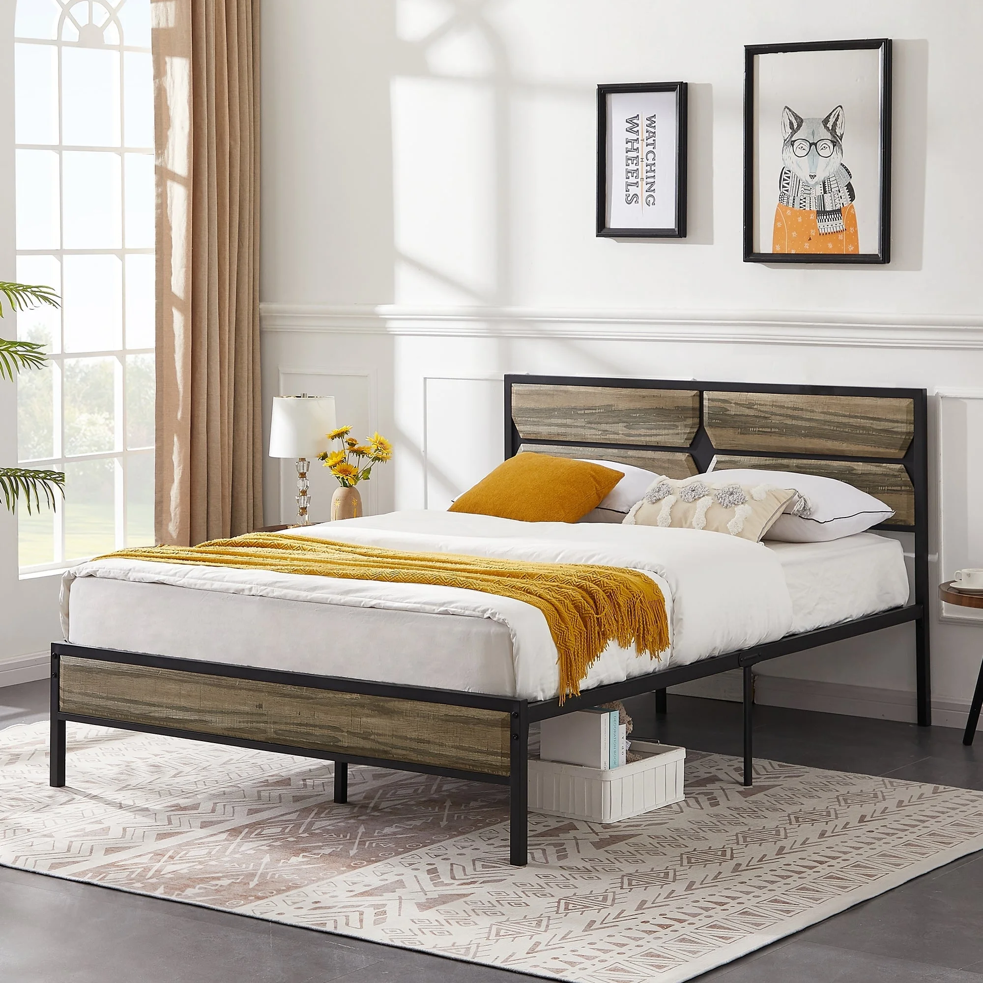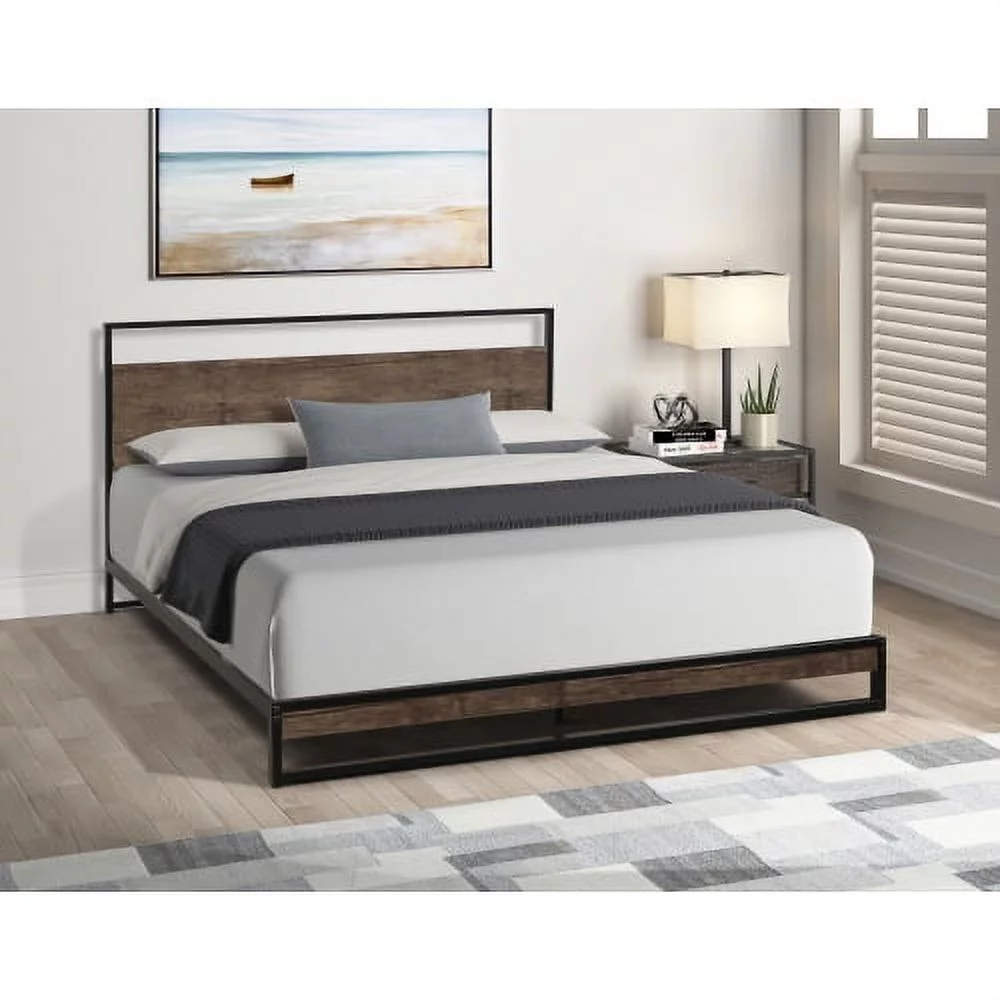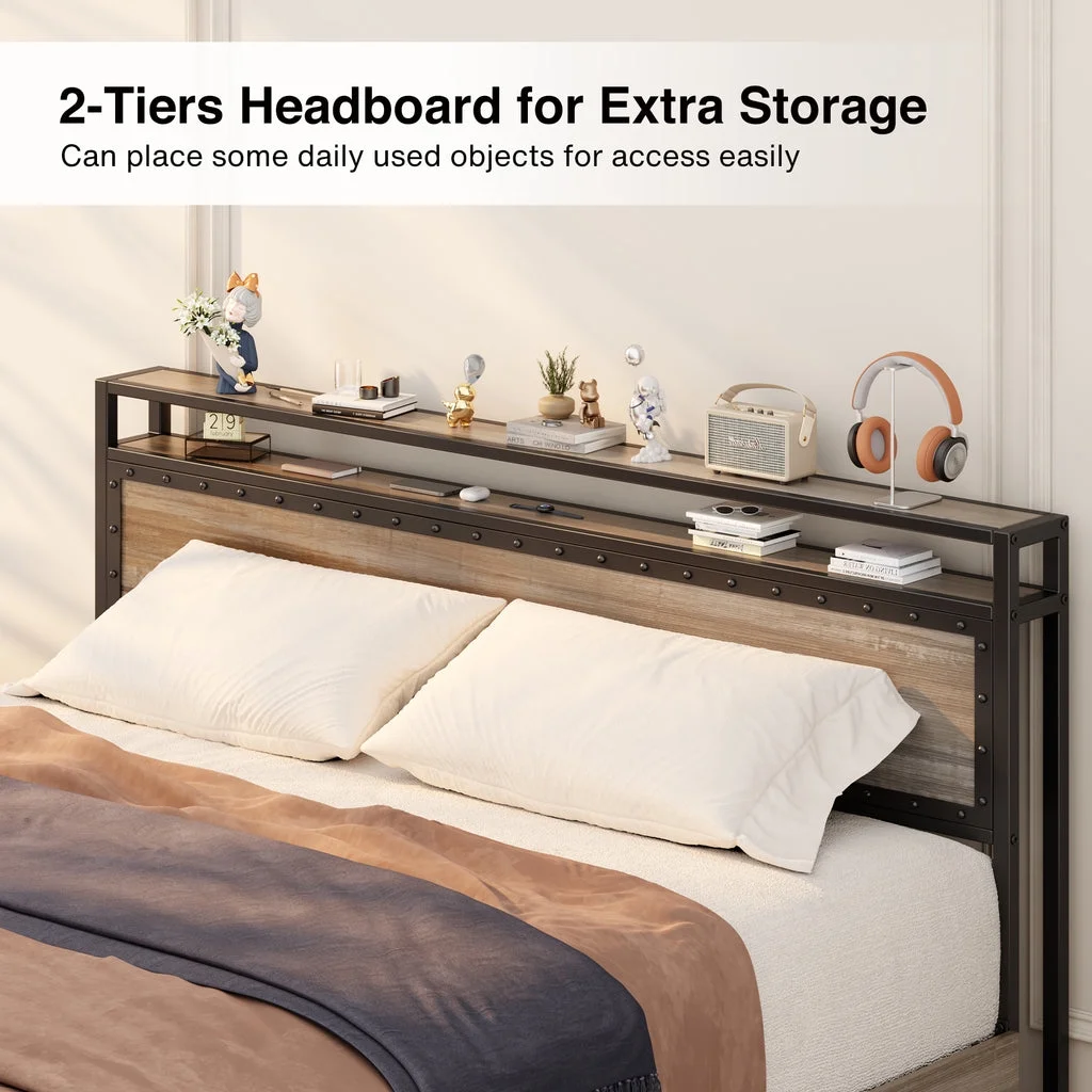 Queen Size Platform Bed Frame with Wood Headboard, 12" Under Bed Storage, No Box Spring Needed, Noise Free