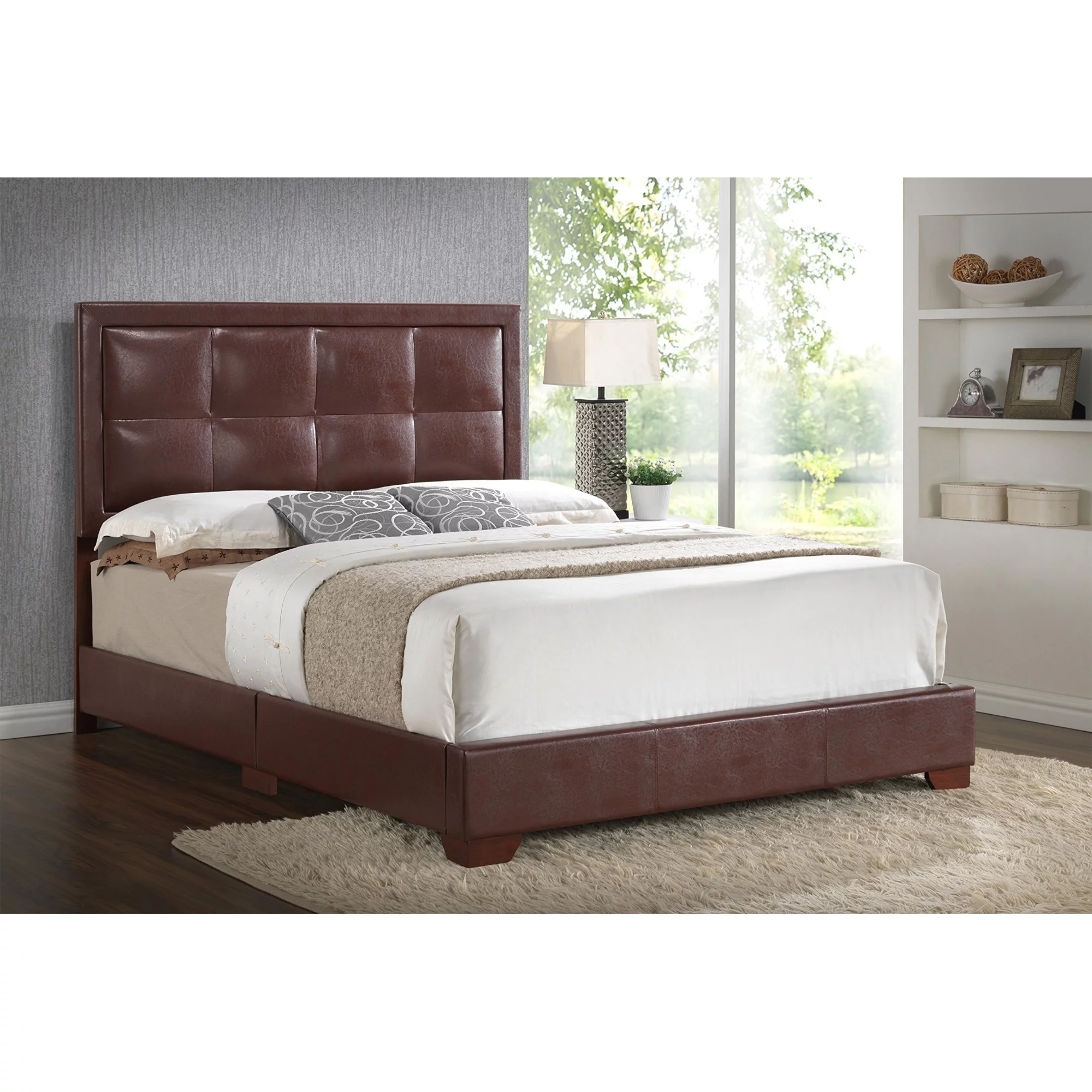 Glory Furniture Panello Bed with Faux Leather Upholstery Light Brown King