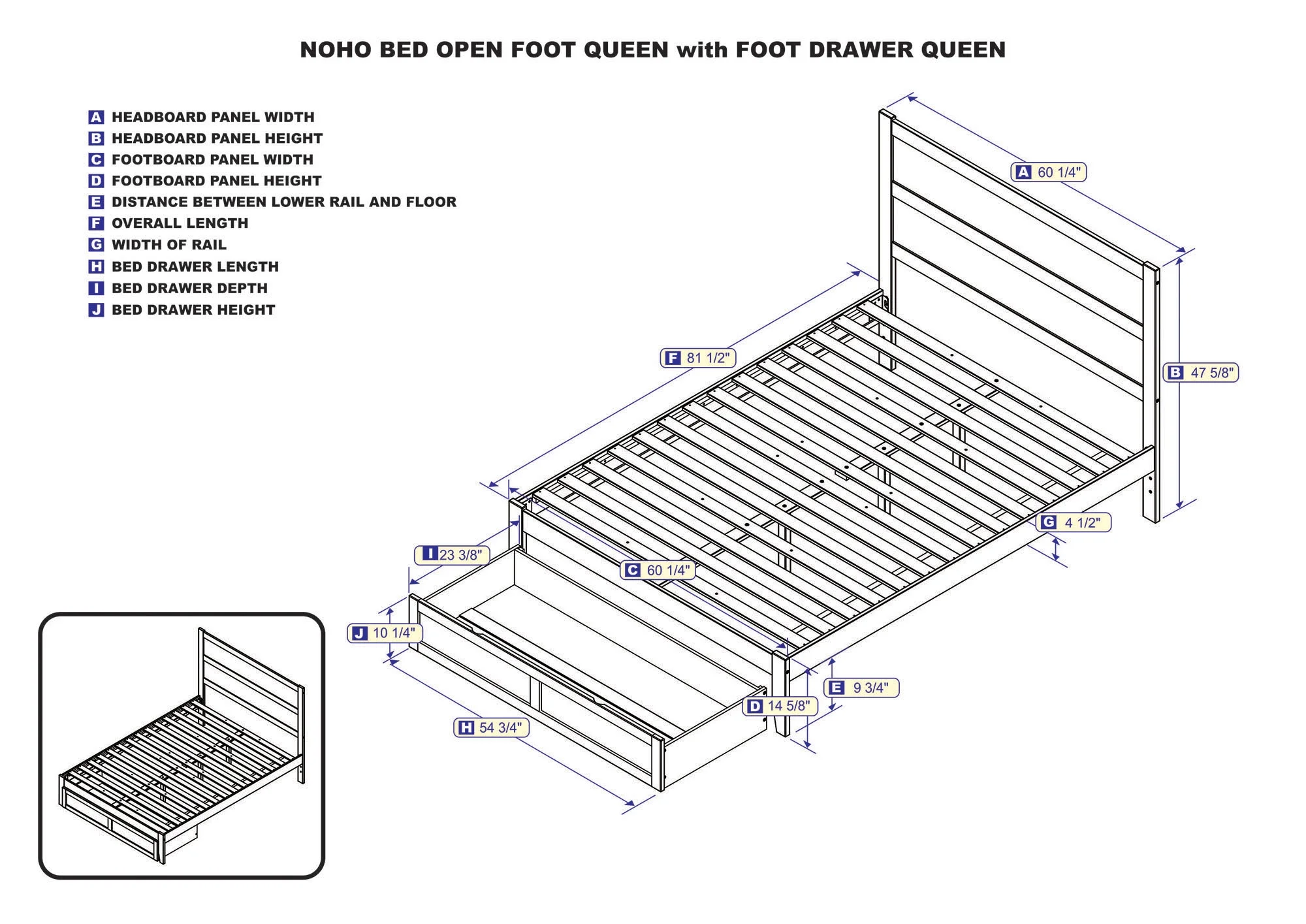 AFI NoHo 14" Queen Wood Platform Bed Frame with Foot Drawer Storage, Grey
