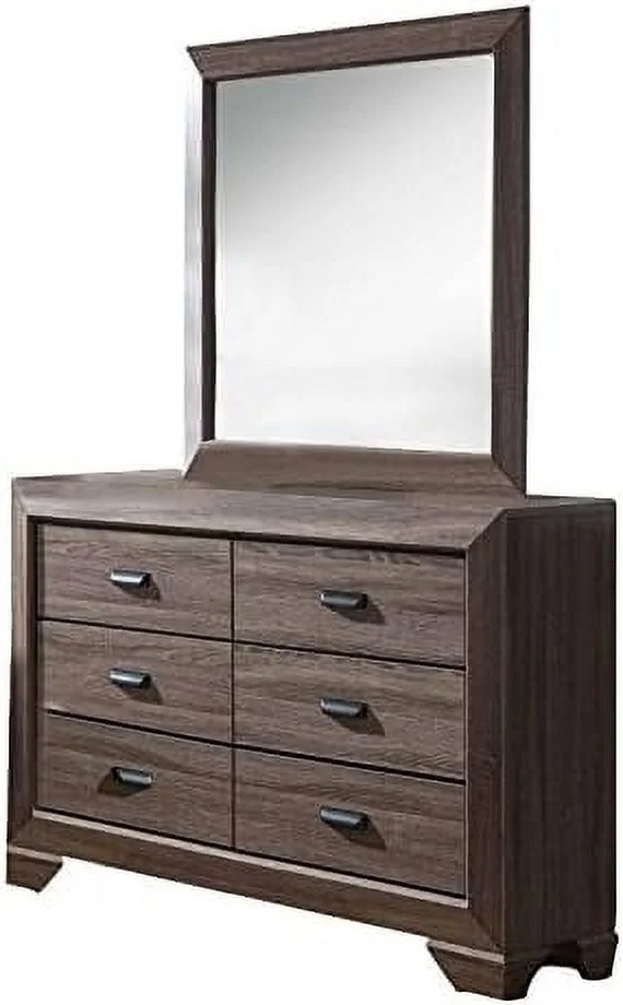 Traditional Bedroom Furniture Set Panel Bed Dresser Mirror Nightstand Set 5Pc Queen Size Gray Wooden Finish