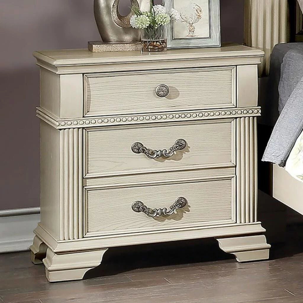 Antique White Solid Wood Queen Bedroom Set 5pcs FOA FOA7144WH Pamphilos