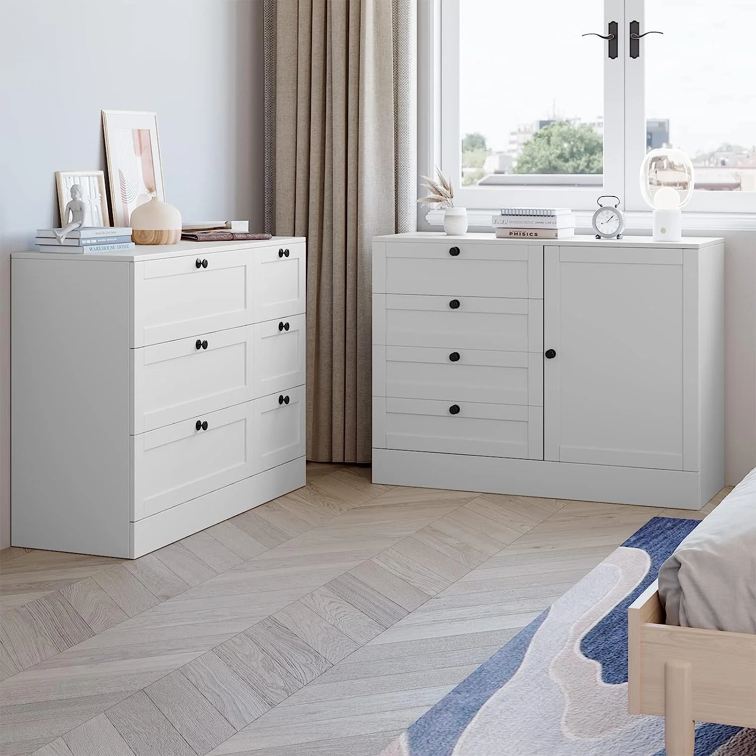 Contemporary White Solid Wood Queen Bedroom Set 6pcs FOA FOA7038WH Magdeburg