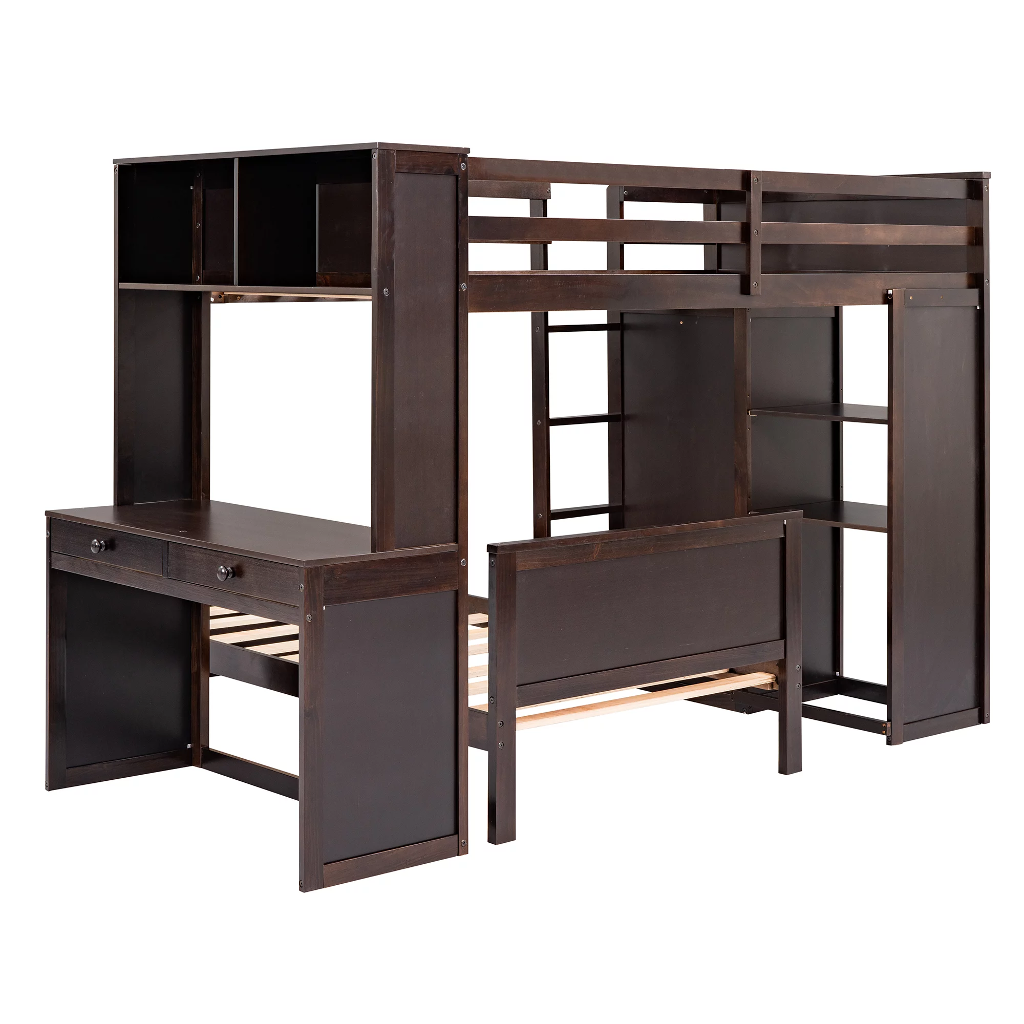 Dark Walnut & Dark Oak Solid Wood Queen Bedroom Set 5pcs FOA CM7363 Fulton